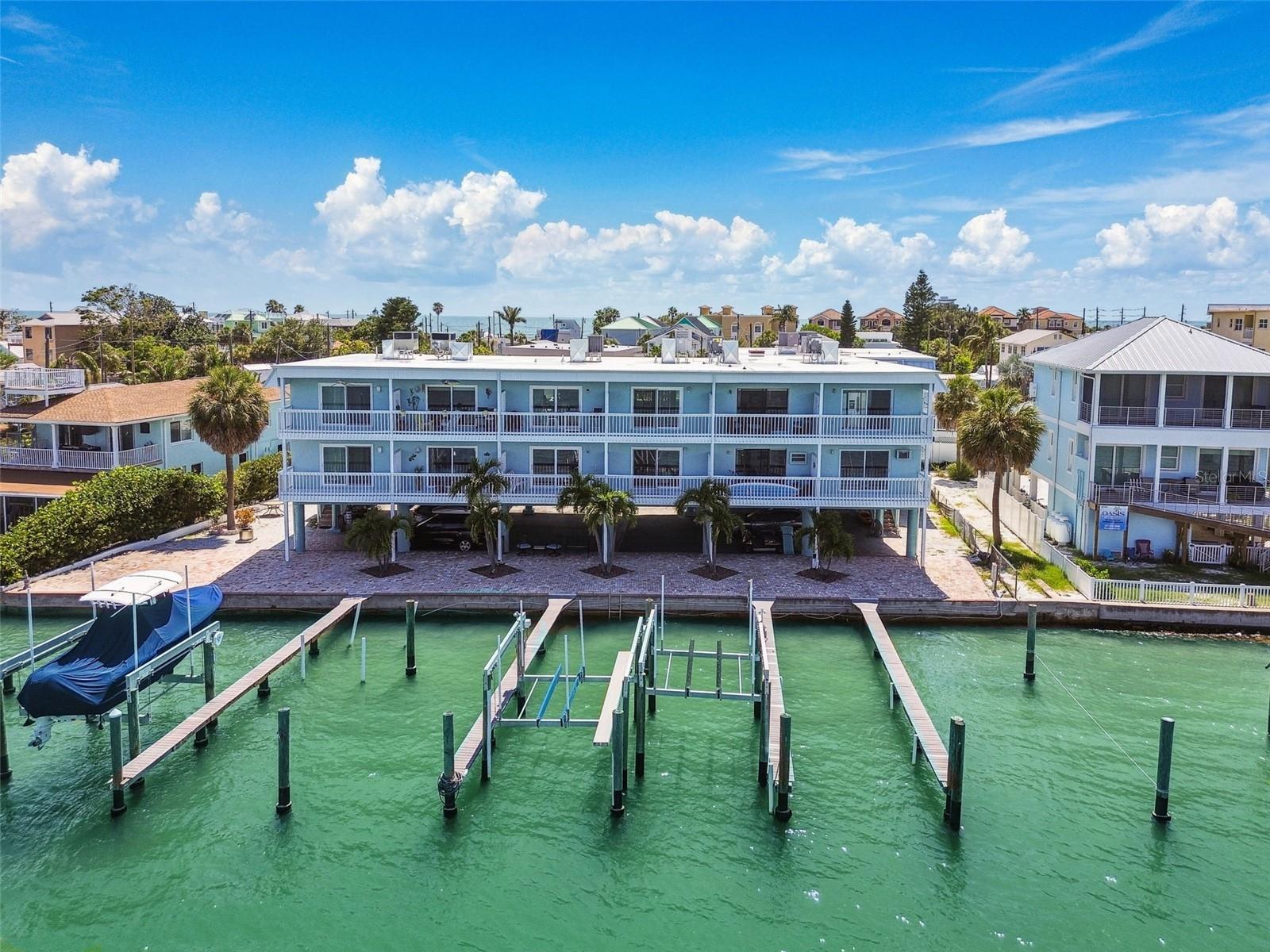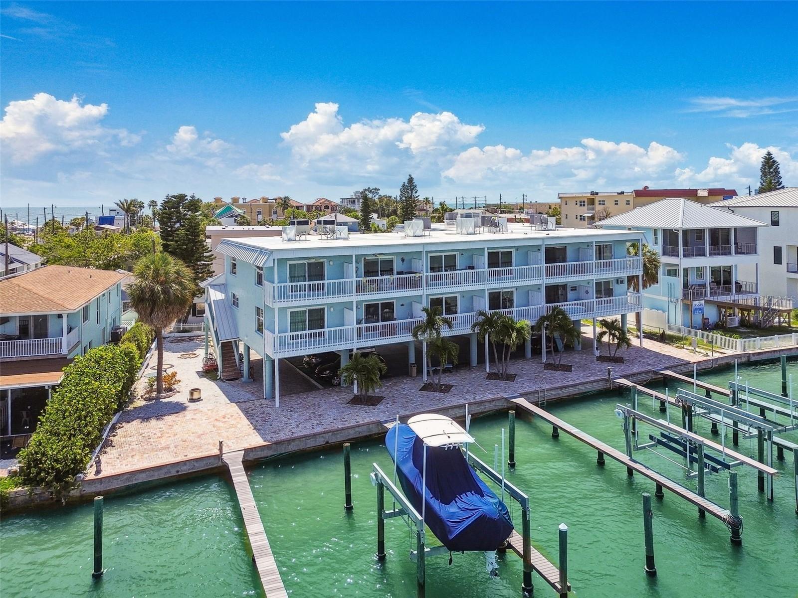 SELLER MOTIVATED Step into your dream WATERFRONT oasis at this stunning Keywest Style townhome WITH a boatslip in Treasure Island on Sunset Beach! The condo itself did not have any damage from the recent storms. Nestled in a charming community with only nine units, this unique property is your ticket to the ultimate "Island lifestyle." Picture this: cruising the Intracoastal waterway on your boat under the warm Sunday sun. Explore Fort De Soto Park or Honeymoon Island via Blind Pass with no fixed bridges to hold you back out to the Gulf of Mexico. And when you're not out on the water, you can relax on your private dock, casting a line for some leisurely fishing or strolling to the nearby pristine white sandy beaches to catch breathtaking sunsets every evening. This two-level condo is a gem, with bedrooms and a full bath downstairs for privacy, while the living areas and a convenient half bath are located upstairs. Both levels boast balconies overlooking the serene Blind Pass Intracoastal waterway, offering the perfect spot to unwind, watch playful dolphins, and admire passing boats after a long day. Updates galore! Triple-paned windows and sliding glass doors, a new A/C unit in 2024, BRAND NEW ROOF ensure modern comfort and peace of mind. Plus, rest easy knowing the unit itself emerged unscathed from recent storms. Parking is a breeze with assigned spaces under the building and additional guest parking. And the best part? This pet-friendly community welcomes your furry friends with open arms. Don't let this rare opportunity slip away! Call today to schedule your private showing and make this waterfront haven yours. Get ready to live the island life you've dreamed about. This would be the perfect home for you or purchase it as a second home/ investment property. Don’t miss out on this rare opportunity, check out our 3D tour at https://realestate.febreframeworks.com/sites/gebboox/unbranded. Call today to schedule your private showing.