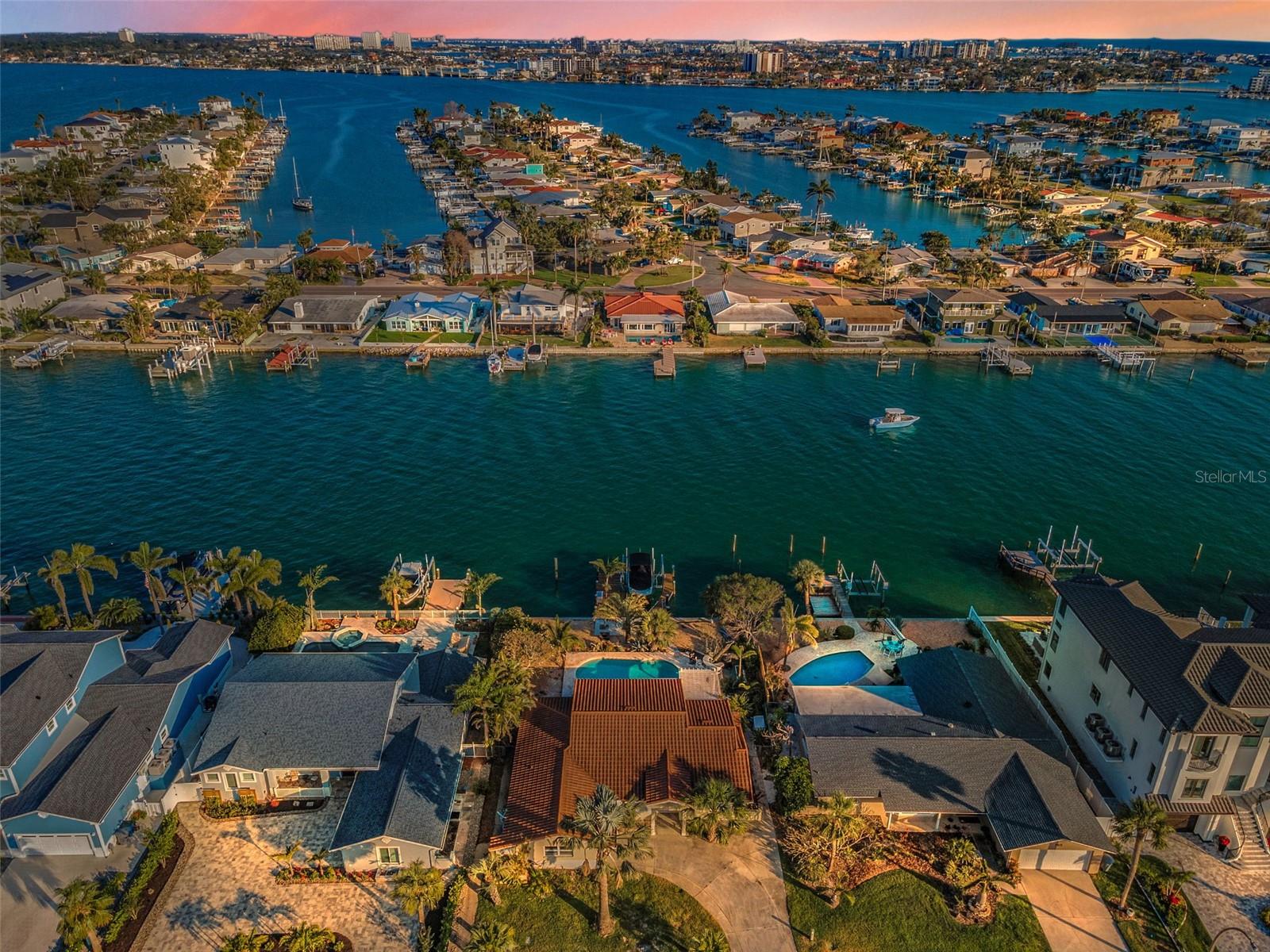 Located on one of the premier streets in Treasure Island’s highly desirable Isle of Capri neighborhood, this waterfront home offers an exceptional lifestyle defined by serene luxury and convenience. Nestled at the quiet back of the neighborhood, you'll appreciate the street's enhanced appeal due to underground utilities eliminating visible power poles. The thoughtfully designed split floor plan features an open kitchen and living space with high ceilings and abundant natural light. The primary suite includes a versatile office or den area, complemented by a spacious bath with a walk-in shower. Two additional bedrooms conveniently share a second bathroom equipped with a tub/shower combination. Expansive impact glass sliding doors span the back of the home, seamlessly blending indoor living with stunning wide-water views. Travertine tile flooring enriches the main living areas, while porcelain tile enhances the bedrooms. For peace of mind - most windows are hurricane impact rated (those that are not include hurricane shutters) and the home features a 2013 metal roof designed to look like tile. Out back, the landscaped grounds showcase ample covered living space and travertine pavers surrounding the newly refinished Diamond Brite pool (December 2024), complete with a new pool pump. Boaters will appreciate the well-maintained wrap around dock for effortless maintenance with a 16,000 lb boat lift and wrapped pilings. Enjoy quick, deep-water access to the Intracoastal Waterway and Gulf through John's Pass, perfect for larger vessels. This home experienced water intrusion from Hurricane Helene, which was professionally mediated and is now ready for its next owner to make their own. The Isle of Capri community offers a vibrant lifestyle with amenities like tennis and pickleball courts, shuffleboard, a playground, dog park, gazebo, and baseball field. Just a short stroll away, you’ll find the Treasure Island Boardwalk and beach, where sugar-sand shores, scenic paths, and local dining await.