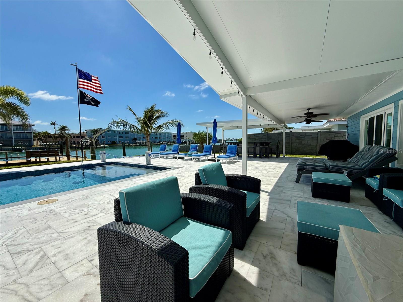 Waterfront, luxury, resort style living, solid 3 bedroom 2 bath, single family block home, keep your boat at the Dock on your 12,000 lb Boat lift, deep water canal with 80 feet of frontage . Daily Sunset views, located only a short bike ride to the Powdered sands of the Gulf of Mexico. Embrace the full width Hurricane sliders looking out to your oversized covered patio leading to your heated pool and spa, complete with decorative colored lighting. Enjoy the restaurants and entertainment at John's Pass. Nothing left to do, just move right on in, enjoy Multiple AC zones, all new duct work and split systems . Featuring solid stone counters and stainless steel appliances, the chef's design kitchen and breakfast bar, are top of the line. Plenty of counter space will make cooking a joy. The home offers a formal living room, formal dining room and a large Family room, with custom ship latch ceilings. You will love the master en suite, with walk in closet The bedrooms feature easy slide barn doors. and generous closet .Interior laundry room, new 200 amp electric service, double pane, hurricane window and doors. Large garage and roof is under 7 years.