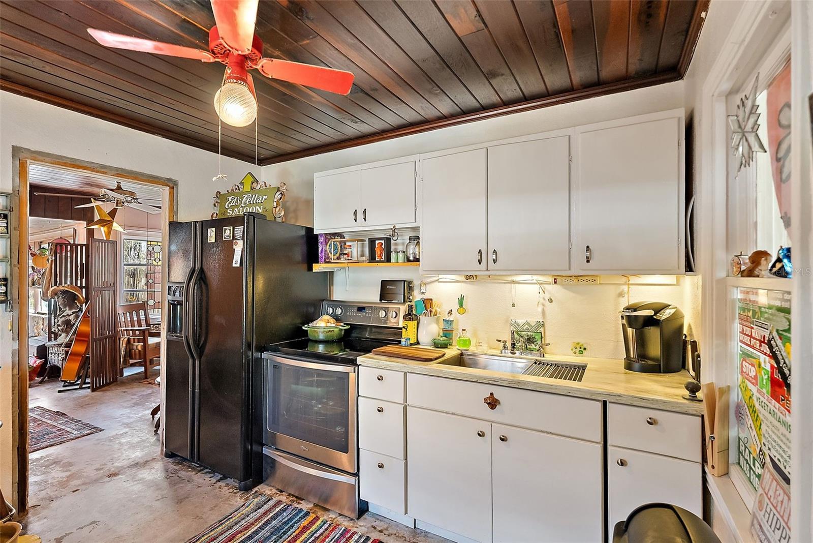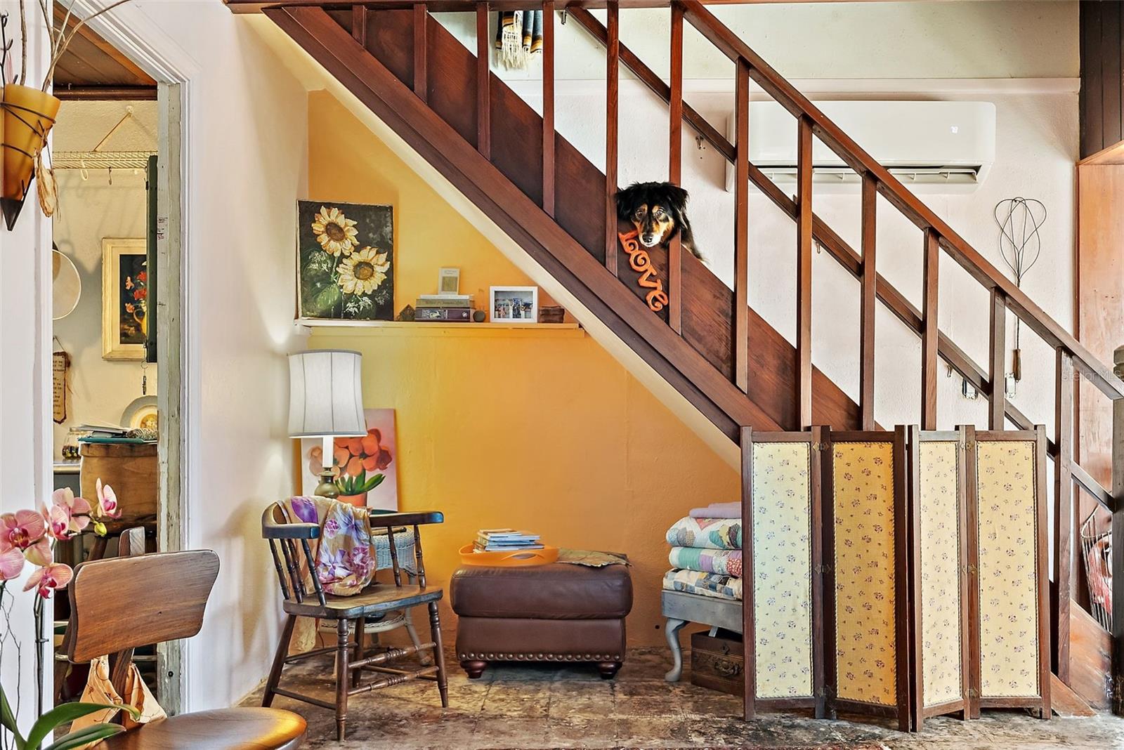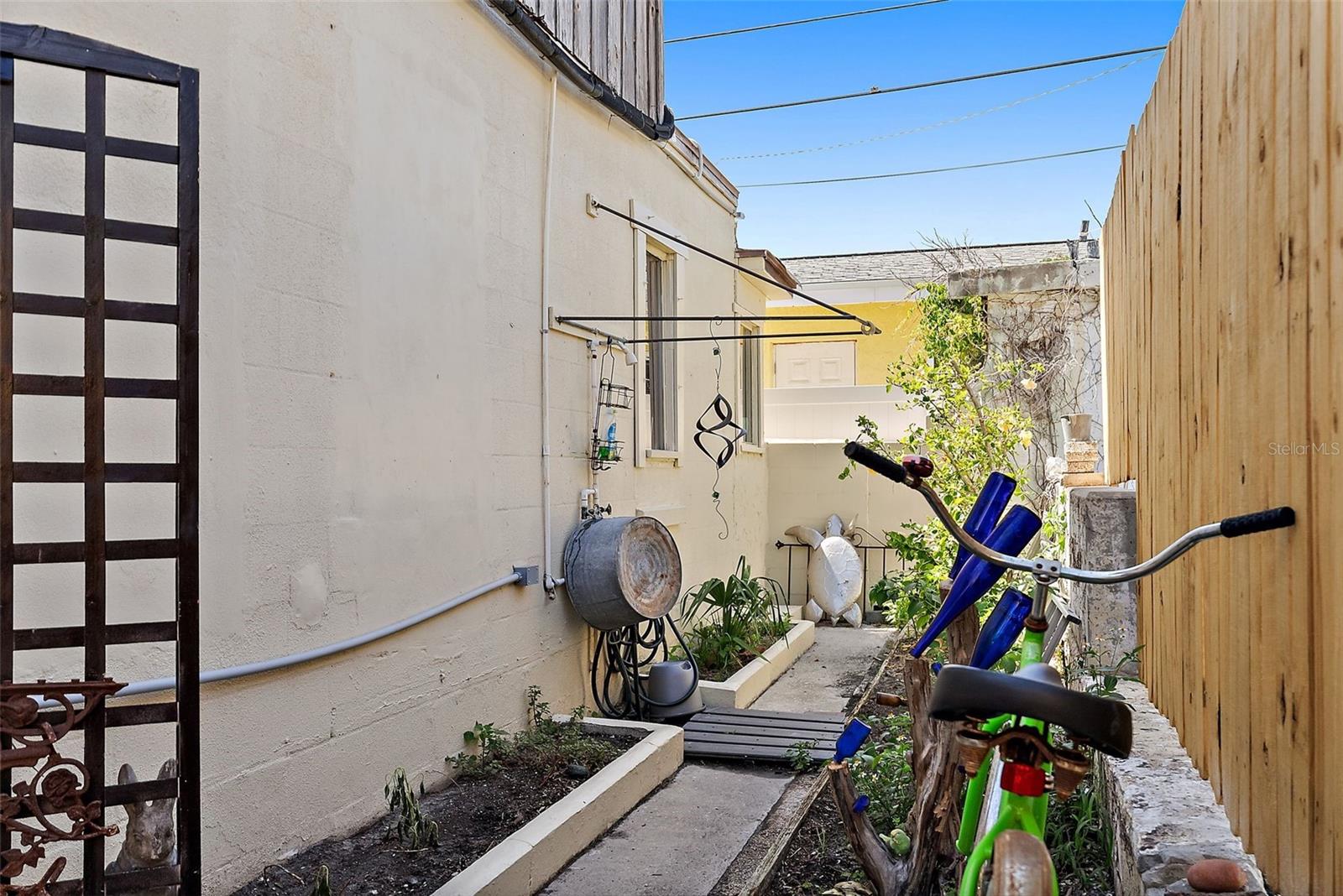 This charming 2 Bedroom 2 Bath home on historic Sunset Beach in Treasure Island sits just two houses from the beach and offers picturesque Gulf views right from the front yard. Perfectly positioned on the coveted south end of Sunset Beach, this property captures the essence of Florida coastal living with a nostalgic original Sunset Beach inspired ambiance. Hand-laid brickwork creates a welcoming courtyard, surrounded by lush, uncontrived native landscaping that gives the feeling of a private oasis. Inside, natural light fills this cottage, highlighting unique features such as concrete floors, wood ceilings, and an old Florida feel. The primary level features a natural light filled dining area, a kitchen, living room, bathroom with shower, and a comfortable Florida room/Guest bedroom; each space evoking the charm and character of times gone by. Also a long pantry off the kitchen and a separate laundry room with washer and dryer complete the bottom level. Upstairs, the Master bedroom has its own bathroom and provides a private, comfortable retreat, completing the home's warm welcoming and peaceful presence. Watch spectacular nightly sunsets from your yard or stroll a few steps to the water's edge ever mindful of logger-head sea turtles nest, to watch dolphins frolicking at dusk. If you share your life with a special K-9, a 3 minute walk in the opposite direction will have you at Sunsets Dog Beach. While this home did experience water intrusion during Hurricane Helene, it weathered the storm remarkably well due to early beach building expertise and to the bottom level being solid block construction with poured concrete walls - including interior walls. Procuring the distinction of "Not Substantially Damaged" by the City of Treasure Island. Buyers are welcome and encouraged to contact the City of TI regarding the FEMA 50% rule pertaining to remodels or new construction. Recent updates include new electrical wiring with 200 AMP service, a new hot water heater, and a new KLIMAIRE reverse cycle mini split unit. Whether preserving this home's historic charm or building new, this spacious 40X100 lot is one of the few and most desirable locations on Sunset Beach.