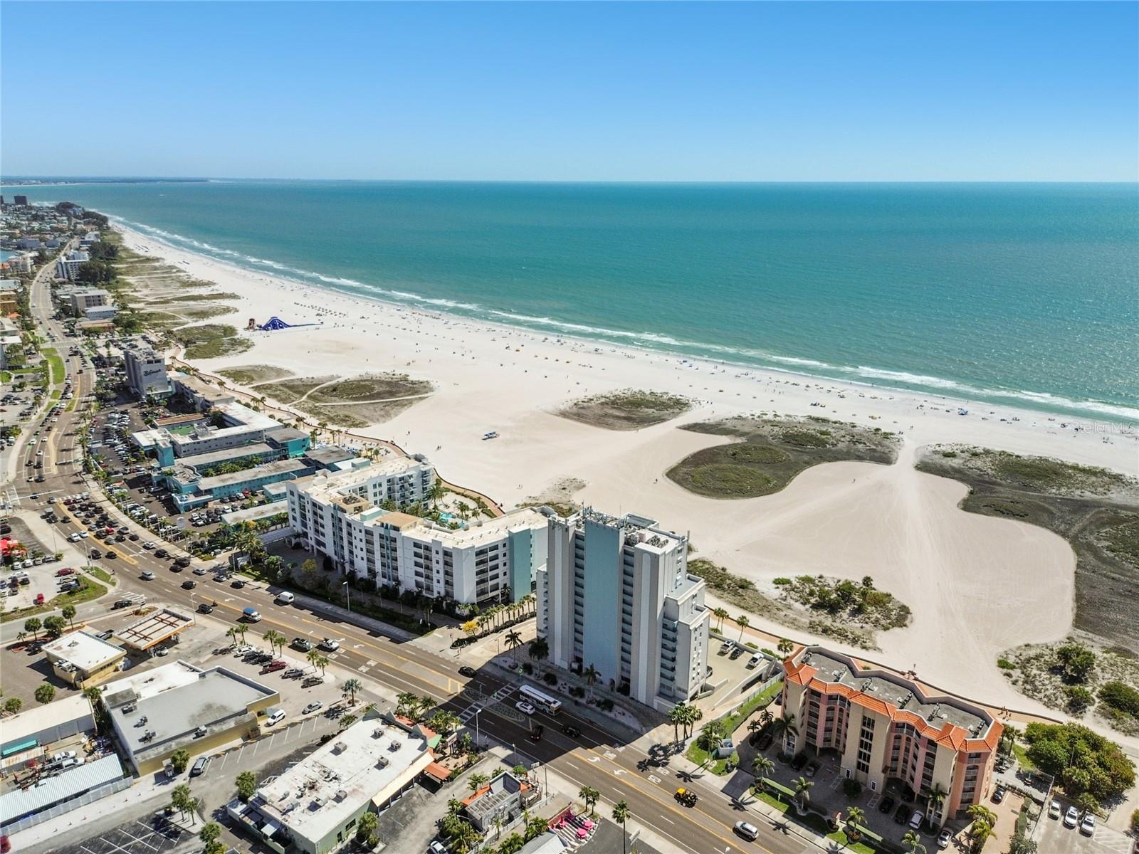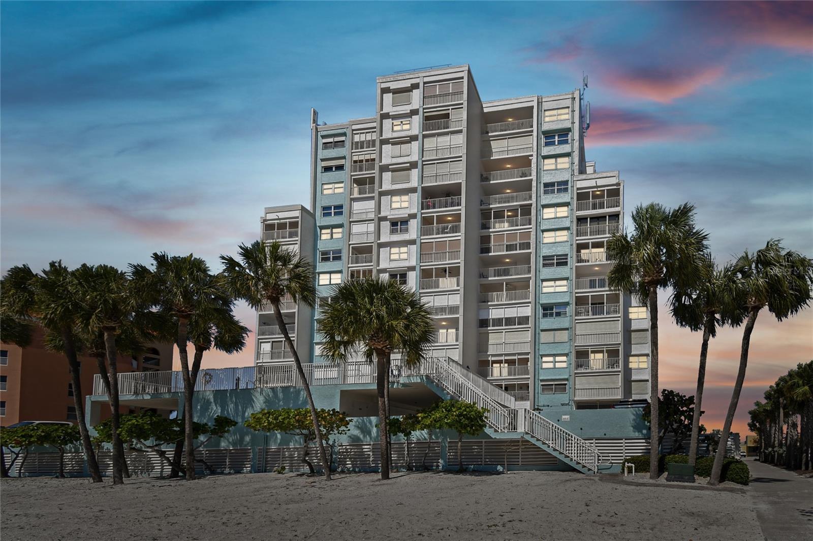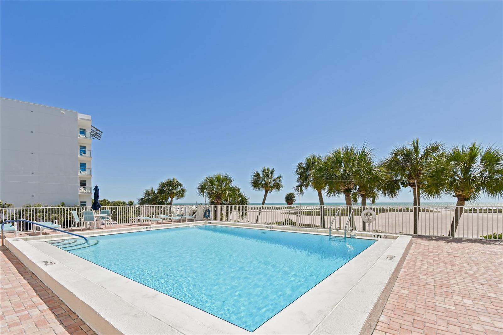 DISCOVER ONE OF THE BEST VALUES on Treasure Island beach, LOWEST HOA per sq ft around. MILESTONE and RESERVE STUDY DONE AND PASSED. NO ASSESSMENTS AFTER HELENE and MILTON. ELEVATED POOL means no worries during storms. Condo association also enjoys over $110,000 in yearly INCOME from rooftop space rental contributing to this solid well run association. The unit itself has hurricane shutters, and it’s sold turn key or empty your choice. Nestled in the heart of Treasure Island, this 7th-floor, fully furnished two-bedroom, two-bathroom condo offers direct Gulf of America views and three miles of sparkling coastline. The functional, spacious kitchen has everything you need to prepare your favorite dishes, while the dining/living room boasts narrow-plank oak wood floors and opens to a wide balcony overlooking the breathtaking blue sea. Enjoy peace of mind with electric hurricane shutters in the living room and the primary bedroom. Additional conveniences include an under-building assigned parking space (#26) and storage locker (#33) located on P2, both easily accessible. Each floor offers a trash chute and laundry room. Relax by the private solar-heated pool or take a short walk to the soft, sandy beach. The recently upgraded building features new exterior paint, pavers, two new elevators, and fully replaced PVC plumbing. The beach’s uncommonly wide shoreline offers plenty of space to unwind, and from May to October, you can witness sea turtles nesting—a true natural spectacle. Treasure Sands also provides convenient access to a wealth of local amenities. Across the street, you’ll find restaurants, cafés, ice cream shops, pharmacy, grocery store, souvenir shops, and a gas station. A short 35-minute drive takes you to Tampa International Airport, and 20 minutes to downtown St. Petersburg, the Salvador Dalí Museum, Fort De Soto Park, and more. Whether you’re looking for a primary residence, a vacation retreat, or a turnkey beach home, this condo offers the perfect opportunity to embrace the beach front Florida lifestyle at its fullest. Call for an appointment to show or get your VR headsets out and walk through it with MATTERPORT right now!
