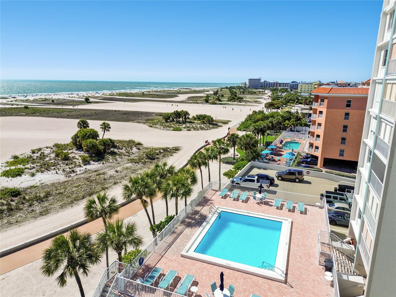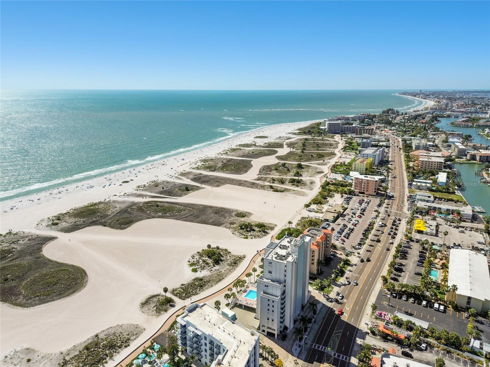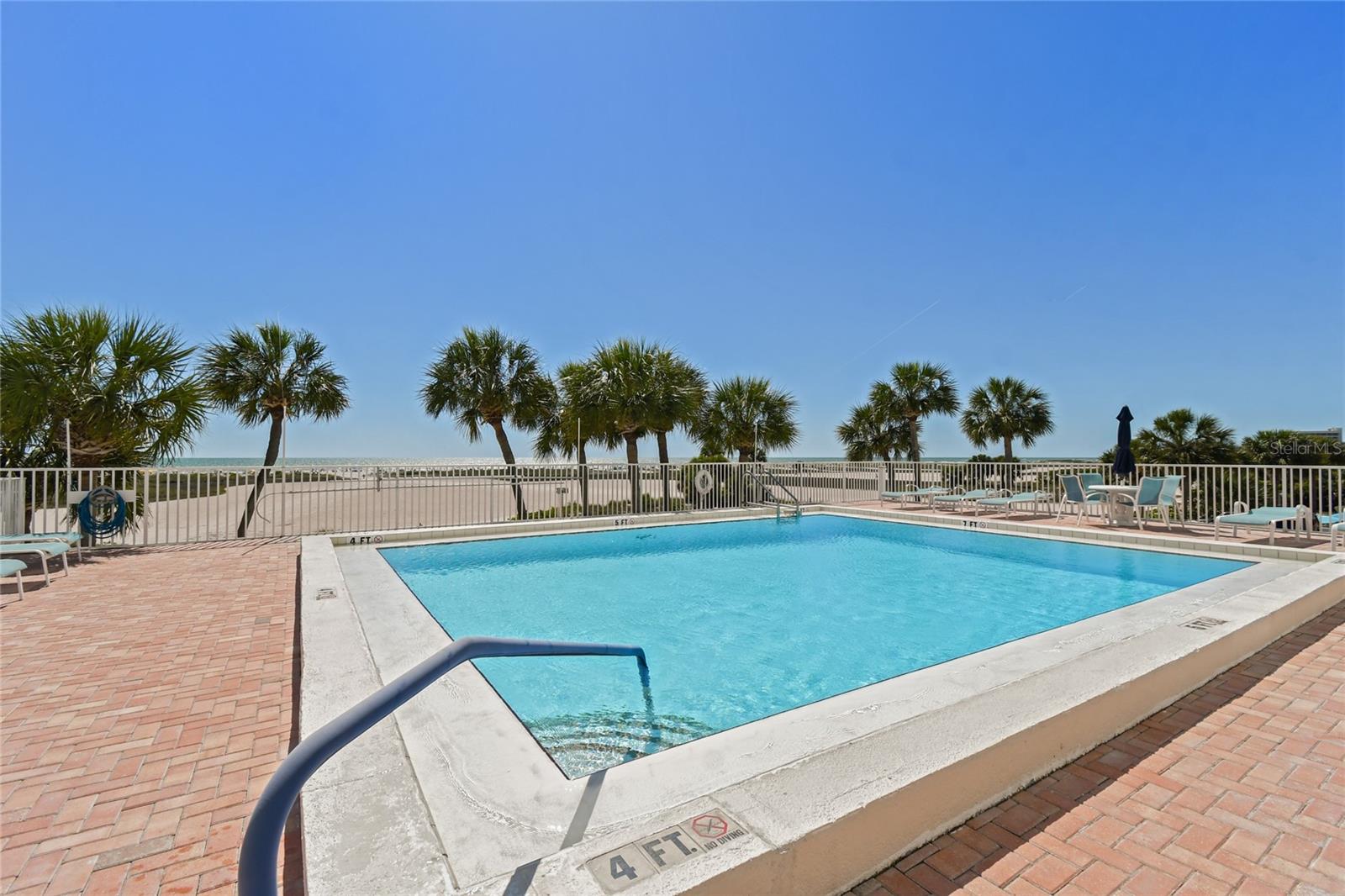DISCOVER ONE OF THE BEST VALUES on Treasure Island beach, LOWEST HOA per sq ft around. MILESTONE and RESERVE STUDY DONE AND PASSED. NO ASSESSMENTS AFTER HELENE and MILTON. ELEVATED POOL means no worries during storms. Condo association also enjoys over $110,000 in yearly INCOME from rooftop space rental contributing to this solid well run association. The unit itself has hurricane shutters, and it’s sold turn key or empty your choice. Nestled in the heart of Treasure Island, this 7th-floor, fully furnished two-bedroom, two-bathroom condo offers direct Gulf of America views and three miles of sparkling coastline. The functional, spacious kitchen has everything you need to prepare your favorite dishes, while the dining/living room boasts narrow-plank oak wood floors and opens to a wide balcony overlooking the breathtaking blue sea. Enjoy peace of mind with electric hurricane shutters in the living room and the primary bedroom. Additional conveniences include an under-building assigned parking space (#26) and storage locker (#33) located on P2, both easily accessible. Each floor offers a trash chute and laundry room. Relax by the private solar-heated pool or take a short walk to the soft, sandy beach. The recently upgraded building features new exterior paint, pavers, two new elevators, and fully replaced PVC plumbing. The beach’s uncommonly wide shoreline offers plenty of space to unwind, and from May to October, you can witness sea turtles nesting—a true natural spectacle. Treasure Sands also provides convenient access to a wealth of local amenities. Across the street, you’ll find restaurants, cafés, ice cream shops, pharmacy, grocery store, souvenir shops, and a gas station. A short 35-minute drive takes you to Tampa International Airport, and 20 minutes to downtown St. Petersburg, the Salvador Dalí Museum, Fort De Soto Park, and more. Whether you’re looking for a primary residence, a vacation retreat, or a turnkey beach home, this condo offers the perfect opportunity to embrace the beach front Florida lifestyle at its fullest. Call for an appointment to show or get your VR headsets out and walk through it with MATTERPORT right now!
