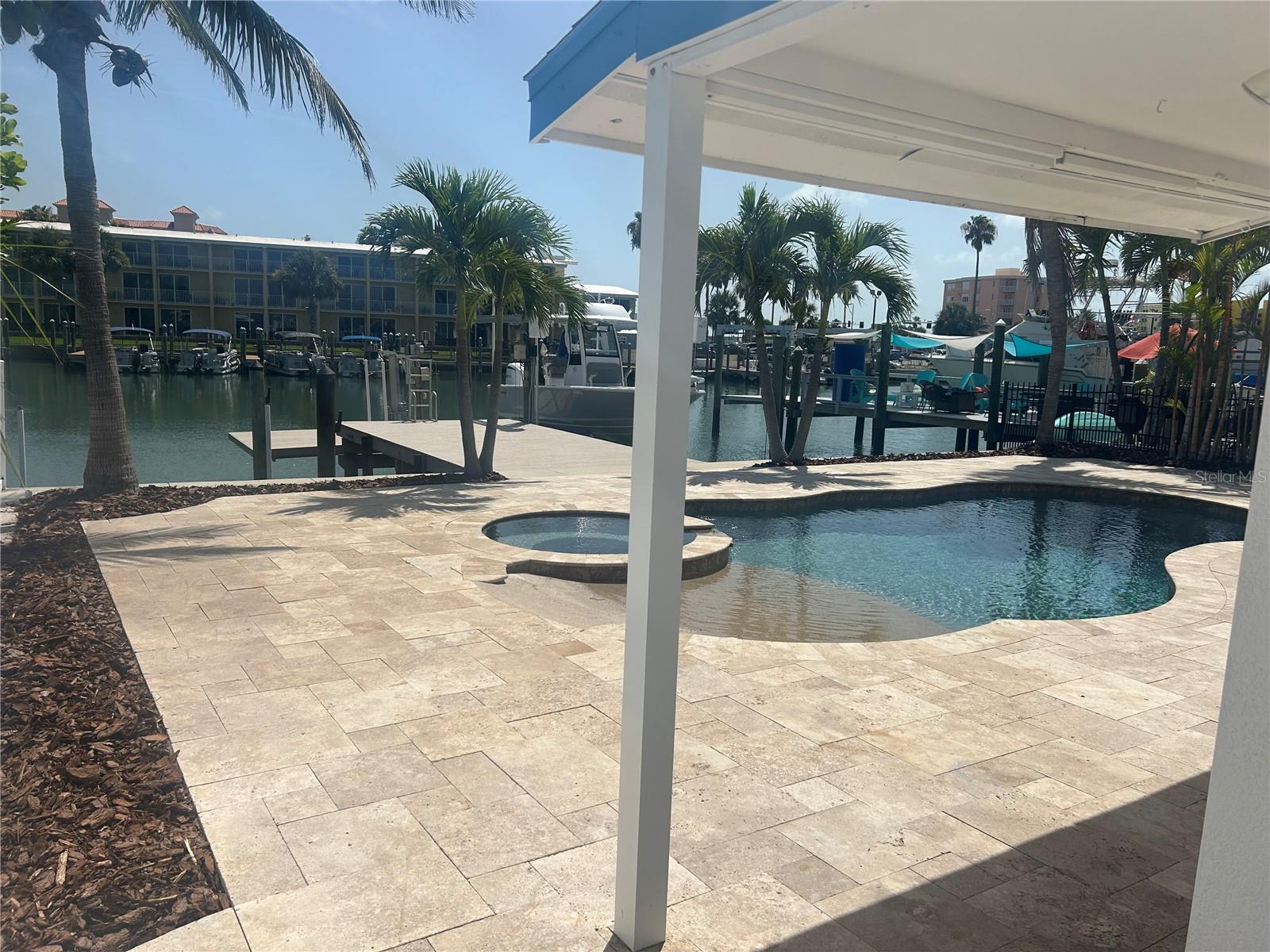 Discover the charm of coastal living in this waterfront property located in one of the most desirable Gulf towns. Nestled right on the water, this home offers stunning views, 15 minutes by boat to John's Pass and the Gulf of Mexico. Only a ONE block walk to the award winning Treasure Island beach. This ideal location with access to the Bay, perfect for water sports, fishing or taking in the view. This home has been beautifully redone top to bottom. New 2025- Entire interior (cabinets, flooring, countertops, drywall, doors) Roof, AC, water heater, appliances, driveway, pool pump, paint (interior and exterior). Boaters/ water lovers dream 10,000 lbs boat lift and a platform lift to lower yourself into the water. This home will not last long, schedule a showing today.