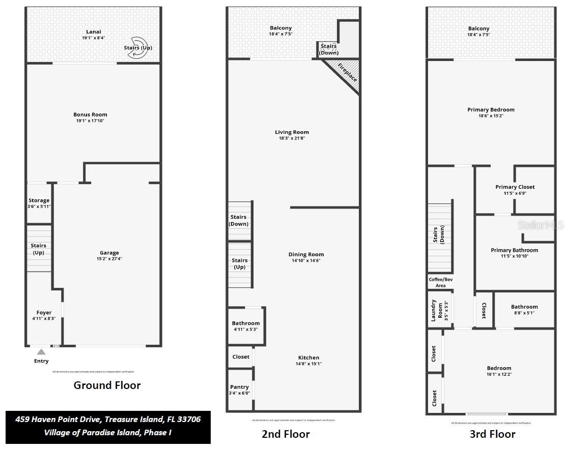 One or more photo(s) has been virtually staged. *** MOVE-IN READY WATERFRONT TOWNHOME CHECKS ALL THE BOXES *** Own a slice of DEEP WATERFRONT paradise at an AMAZING PRICE! Unwind in this stunning Coastal Mediterranean OPEN CONCEPT townhome-style condo with FULL WATER VIEWS from every floor. Starting in the Entry, the hardwood stairs will lead you up to the Living Room – and WOW…THAT VIEW! For the first time ever, this community took on approx 30” of flood water on the GROUND FLOOR ONLY during Hurricane Helene. Post-storm mitigation was completed WITH ALL PERMITS including NEW exterior A/C units, water heater, vinyl plank flooring & drywall, new interior doors, baseboards & trim. This home was made to entertain with two balconies – all with a front row seat for watching INCREDIBLE SUNSETS, dolphin, manatee and birds! Gorgeous hand scraped hardwood floors flow throughout the spacious Living Room featuring a remote-controlled privacy blind, wood-burning fireplace, opens up to the 2nd floor balcony, and the Dining Room, perfectly sized for a large dining table. The gourmet Tuscan-style kitchen was completely renovated, including raising the ceiling, soft-close wood cabinets, quartz countertops, tile backsplash, upper peninsula cabinets with custom-etched glass doors and stemware racks, large island with multiple wine racks and built-in wine refrigerator, high-end GE appliances (double oven, quiet dishwasher with stainless interior, microwave and French Door refrigerator), under cabinet lighting, and a well-organized pantry. 3rd floor features an Owner's Suite with wood plank vaulted ceilings, private balcony with impact-rated sliders and full view of the Intracoastal Waterway – just imagine waking up every day to these jaw-dropping views – all without leaving your bed! Walk-in closet with built-in storage leads to the Owner's ensuite bathroom with window for natural daylight, also remodeled with wood cabinets, quartz countertops, double vanity sinks, walk-in shower, and deep jetted tub! The second ensuite bedroom includes wood plank vaulted ceilings, full bathroom and two closets with built-in storage. Between the bedrooms on the 3rd floor are full-size washer & dryer with wall cabinet and hanging rod, a coffee/beverage area with sink and mini-frig. Weather-resistant engineered wood decking on the balconies, and 2nd floor balcony has spiral staircase down to the ground level. Ground floor includes a deep oversized 1-car garage, Bonus Room with storage and a covered lanai with brick pavers. Village of Paradise Island is a social boating community for ALL AGES! GOLF CART & PET FRIENDLY! Two large pools with cabanas, fishing dock, kayak/paddle board launch, and 26 DEEP WATER BOAT SLIPS in a protected cove with deep water access (even during low tide) for yachts & sailboats up to 45’ with short waitlist available on first come, first serve basis and leases to residents for only $4/ft, including electric & water. Next door is Treasure Bay Golf and Tennis Recreation Center (currently being renovated). MILESTONE INSPECTION PASSED! 459 Haven Point was one of the four units fully inspected. NOTE >>> per the City of Treasure Island: "Living space and restrooms are NOT PERMITTED in enclosed areas below the Design Flood Elevation. If repairs include bedrooms and/or bathrooms [on ground floor, then those owners] have completed the repairs/improvements WITHOUT the benefit of PERMIT. Properties that have been repaired without a permit are not included in the list of compliant structures."