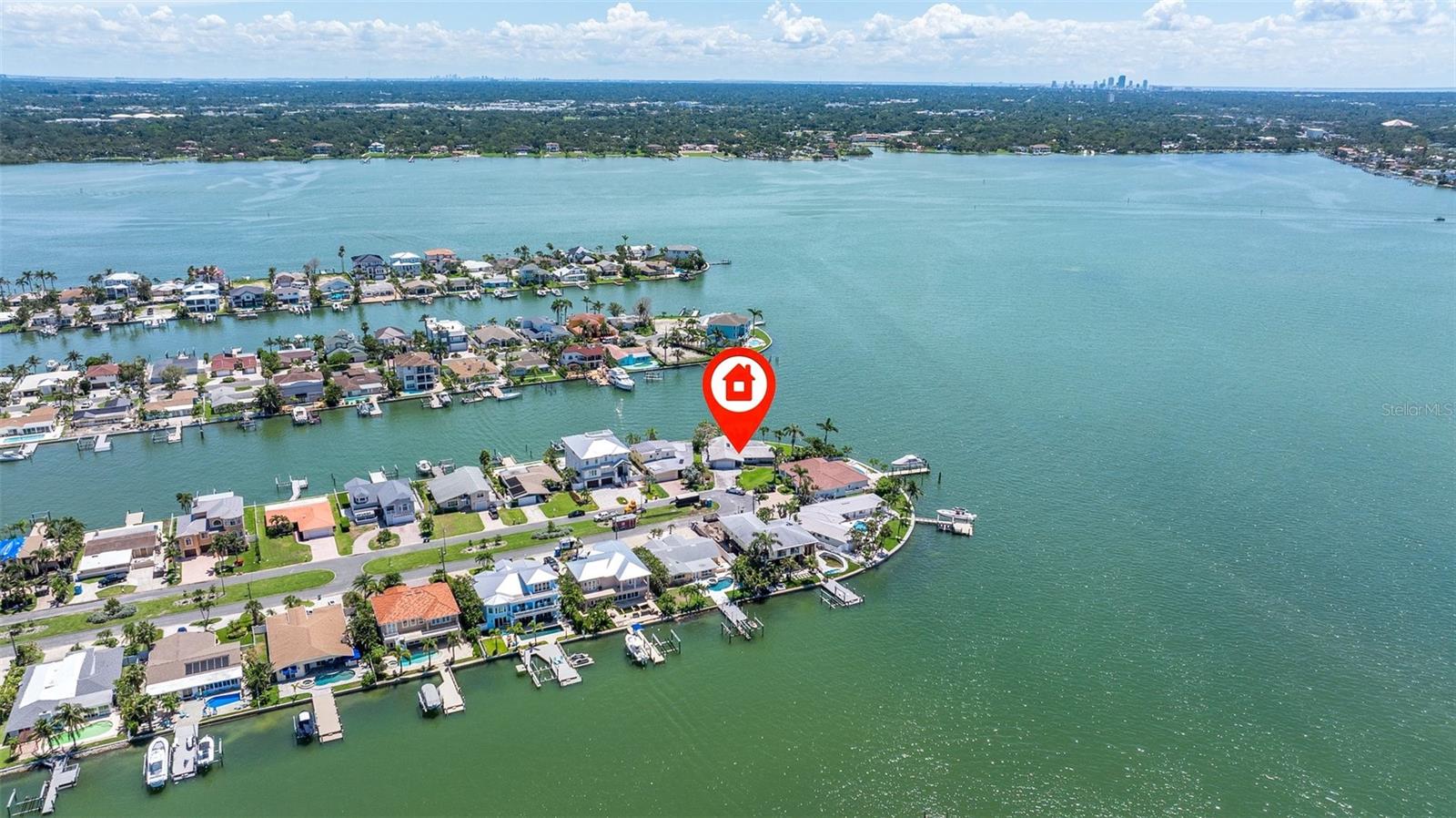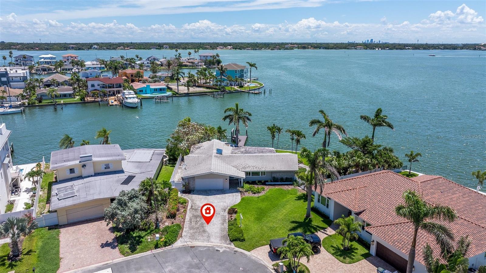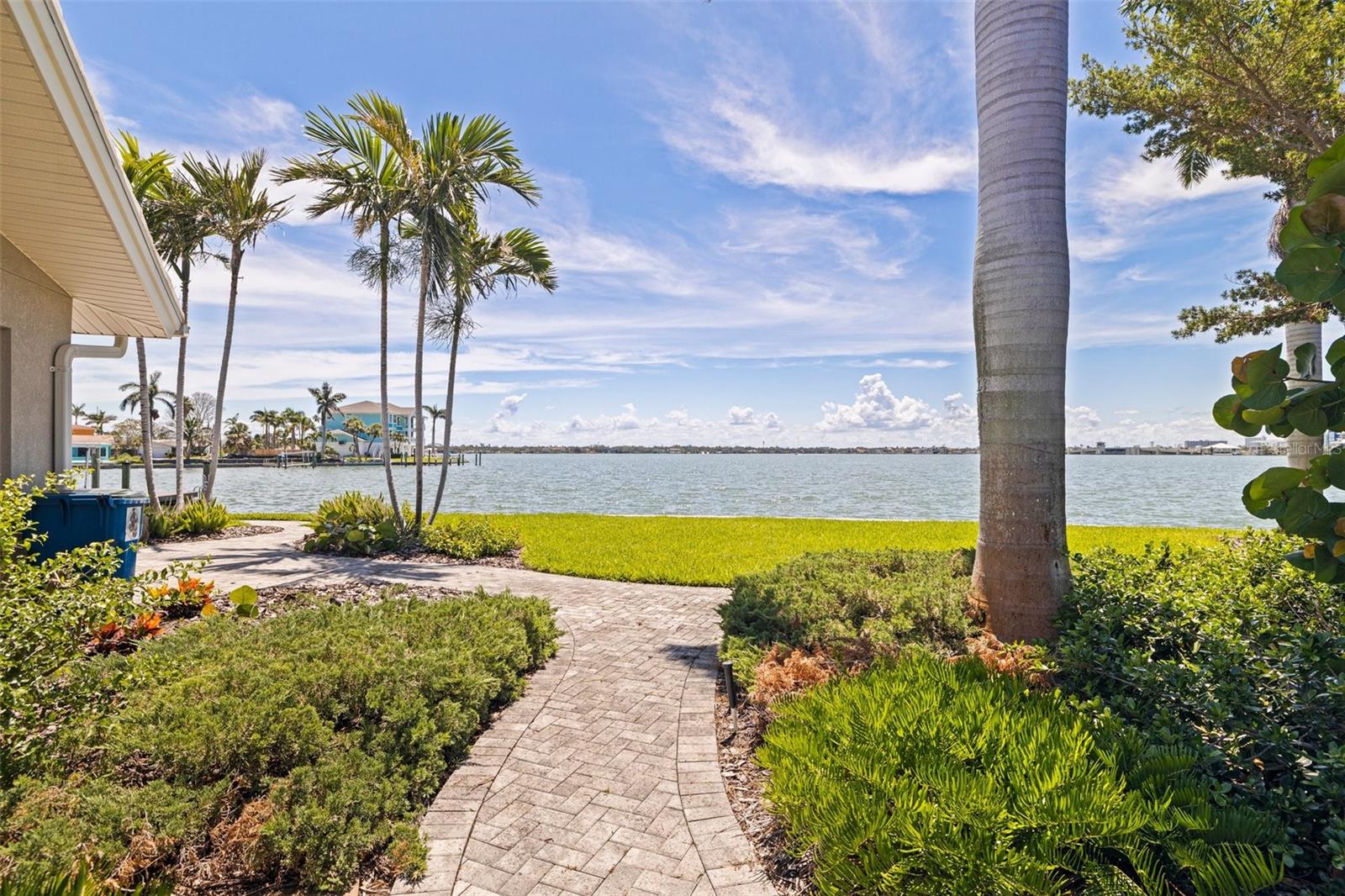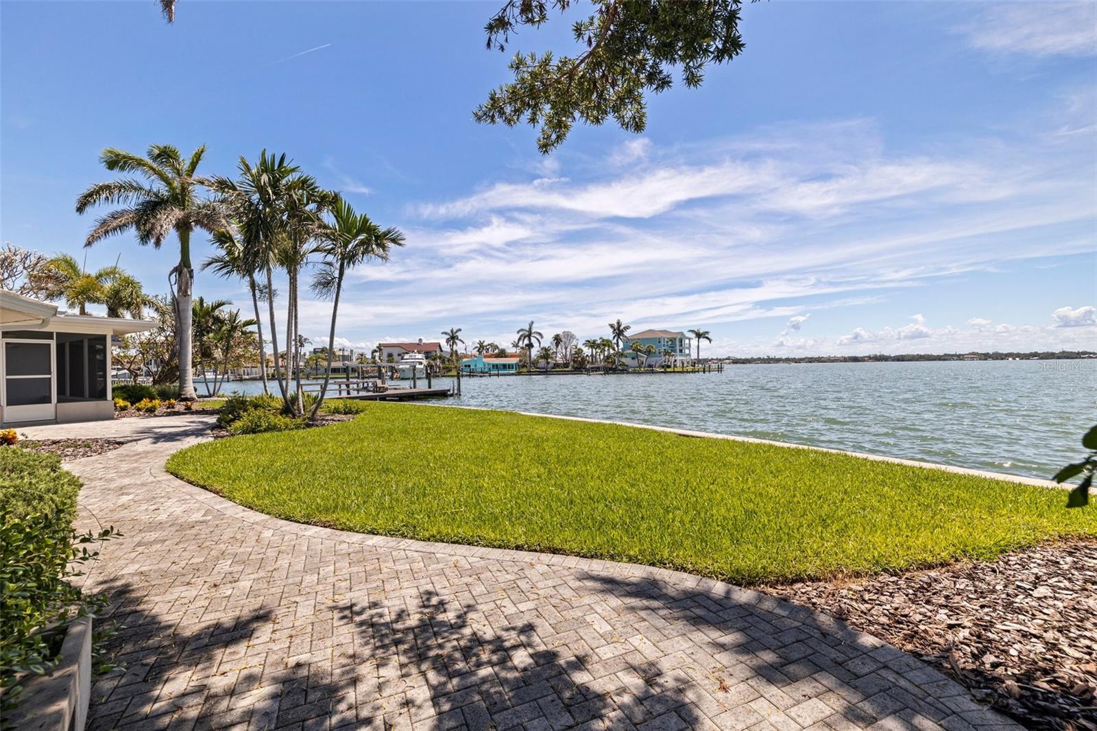 Beautifully landscaped with a long brick paver driveway, this stunning point property presents spectacular open water views across it's sweeping 166 feet of seawall! Beyond its attractive covered entry, step inside this lovely residence and feel the rich welcoming spaces of a fine split bedroom floor plan and its design emphasis on waterfront living. The elegant living area transitions to an open dining space – both with views of the waterfront. The fine, updated contemporary kitchen offers gorgeous water views, exceptional counter surfaces, shaker style cabinetry, striking tile backsplash, stainless steel appliances, unique open built-in wrap-around cabinetry to the living area, and a passthrough to the waterfront lanai. The separate family room opens to the waterfront lanai and has a built-in entertainment center. The Living room/dining, family room and kitchen all have sliding doors/windows that pocket into the walls, enabling a fantastic indoor-outdoor living environment when desired. Overlooking the waterfront, the owner’s suite contains a sizable walk-in closet and full private bath. The second bedroom is sizable, has private views of the waterway and a spacious walk-in closet. The third bedroom makes for a fine office and has two large walk-in closets. Step out to the 360sqft screen enclosed lanai and take in serene, unforgettable open water views that stretch for a mile across Boca Ciega Bay and the Intracoastal Waterway. Enjoy dazzling days, sparkling nights and the extraordinary marine life found in these remarkable waters. Outside the lanai, you’ll discover wide, expansive and richly manicured grounds with towering Royal Palms, lush subtropical vegetation, meandering brick paver pathways and a fabulous private Zen/meditation garden overlooking the water. Updated dock has a seating bench, fish cleaning station, step down platform for kayaks/paddleboards and a 10,000 lb boat lift for fast, easy access to the Gulf of Mexico. You’ll appreciate the hurricane impact windows/sliders and the peace of mind that they provide. Located in one of Tampa Bay’s best boating communities - close to shopping, dining, entertainment and the world class beaches to Treasure Island. This is a rare “point property” opportunity with huge panoramic views that only 166ft of seawall can deliver.