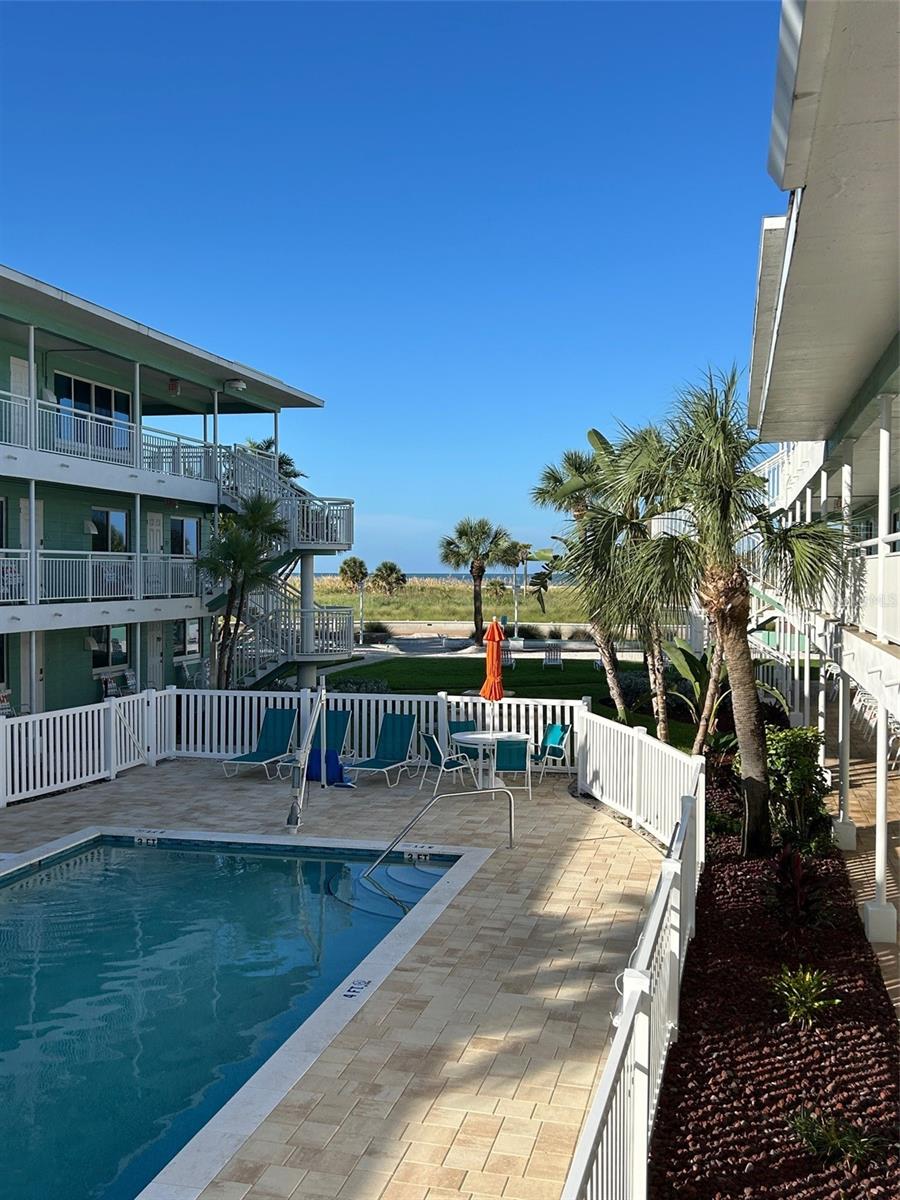 Beautifully remodeled beachside studio in a desirable condo hotel co-op on Treasure Island. New electrical and plumbing. This unfurnished unit is located directly in front of the pool, just a short walk to the beach, and offers convenient breezeway access to the parking lot. Positioned on the Treasure Island Boardwalk, it provides easy access to beachside bars, restaurants, and entertainment, and is only a short walk to John's Pass Village & Boardwalk. Perfect for walking and biking, this versatile property has been used as both a seasonal rental and a work-from-paradise winter escape, making it an excellent opportunity for investors or those seeking a personal beaach retreat.