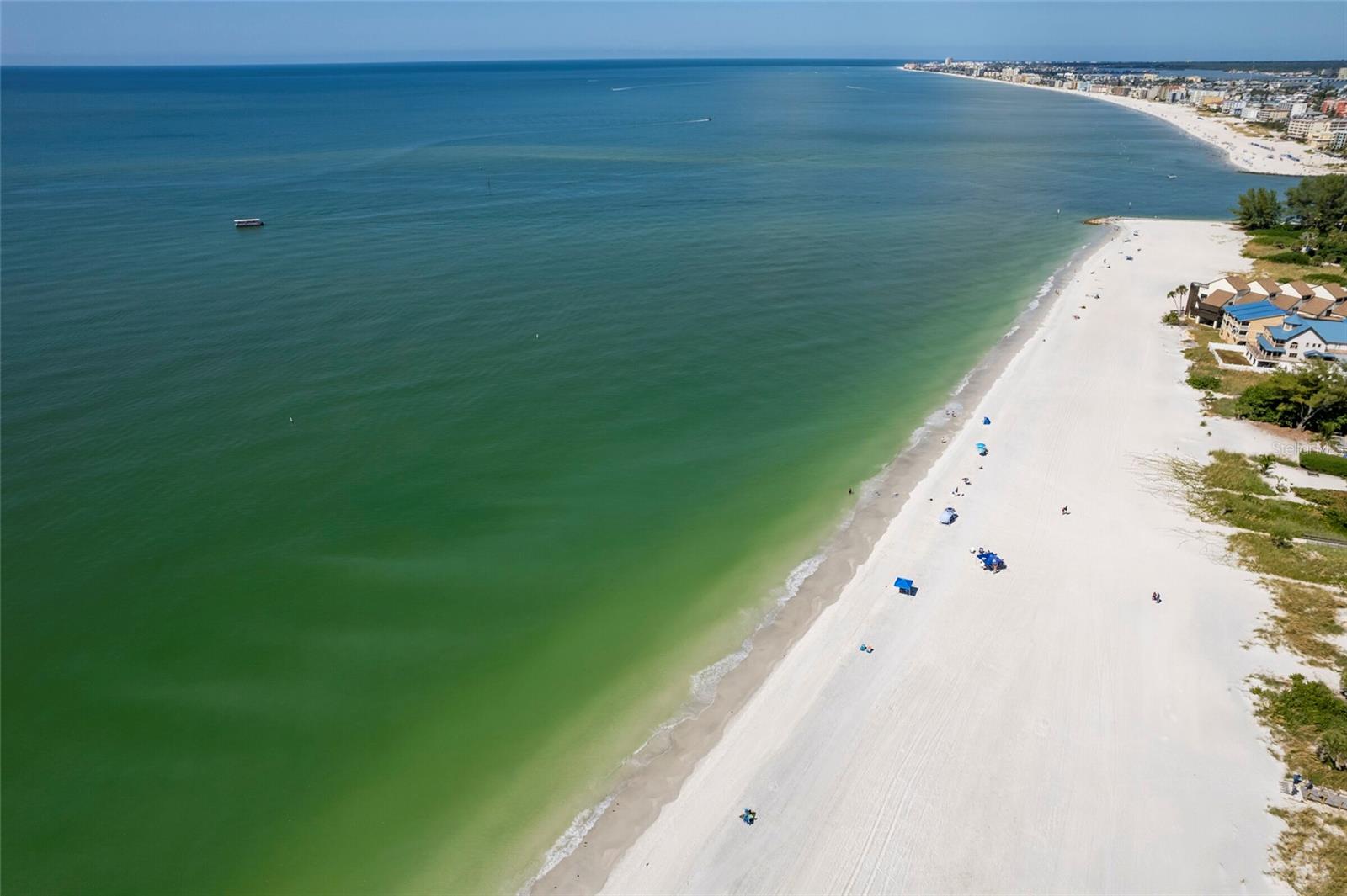 Price reduction! Welcome to CEDARSANDS, a rare BEACHSIDE GEM on TREASURE ISLAND. This 2-bedroom 3 full bath + 2 BONUS ROOMS is a rare find. An intimate eight-unit community is tucked away among luxurious waterfront estates and located directly on the GULF, providing access to white sandy beaches and mesmerizing SUNSET VIEWS. The ground floor features a one-car garage and a spacious BONUS ROOM (14 x 16), perfect as a third bedroom, home office, gym, or extra storage. Sliding glass doors open to a covered, brick-paved patio with an outdoor shower, surrounded by a private vinyl fence and a gate door that leads directly to the beach. Ascending to the second floor, you'll find a bright and open living room with a wood-burning fireplace, a dining area that comfortably seats 9, and a full bath. The entire level features ceramic tile flooring, complementing the spacious kitchen with STAINLESS STEEL APPLIANCES, GRANITE COUNTERTOPS, TONS OF CABINETS, and a NEW REFRIGERATOR. Off the living room, step onto a covered balcony, perfect for outdoor dining, complete with a spiral staircase leading down to the ground-floor patio. From the kitchen balcony, enjoy your morning coffee or evening cocktails. The third floor offers two inviting bedrooms with VINYL. FLOORING THROUGHOUT. The primary suite includes his-and-hers closets, a PRIVATE BALCONY, a bathroom with a soaking tub with jets. The guest bedroom features its own ensuite bath for ultimate privacy. A BONUS LOFT ( 16 x 15 ) crowns the top level, complete with a CUSTUM BUILT-IN STORAGE SYSTEM, ideal as an additional bedroom, office, or creative retreat. Enjoy the best of coastal living just 1/2 mile away from JOHNS PASS VILLAGE, 20 min away from the airport, and offering exceptional restaurants, shopping, boating, and entertainment - all while nestled in a quiet, upscale enclave on TREASURE ISLAND'S pristine shores.