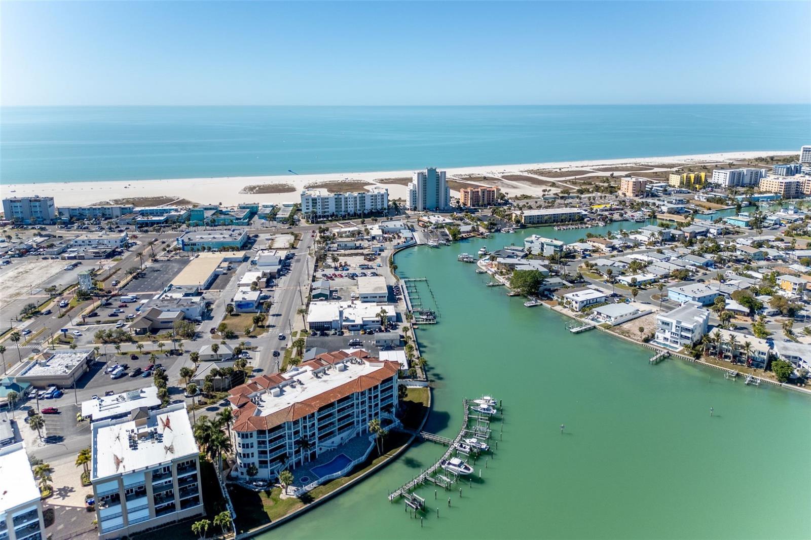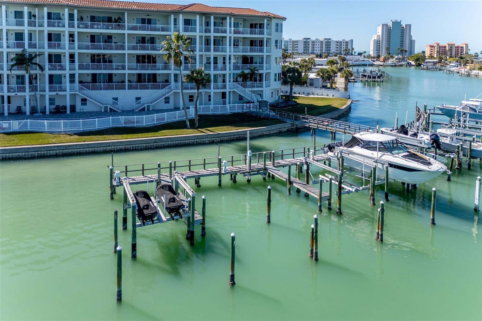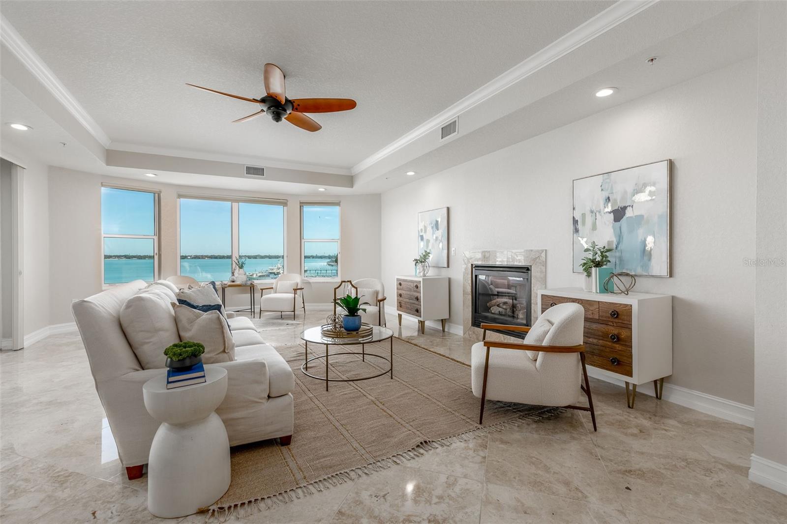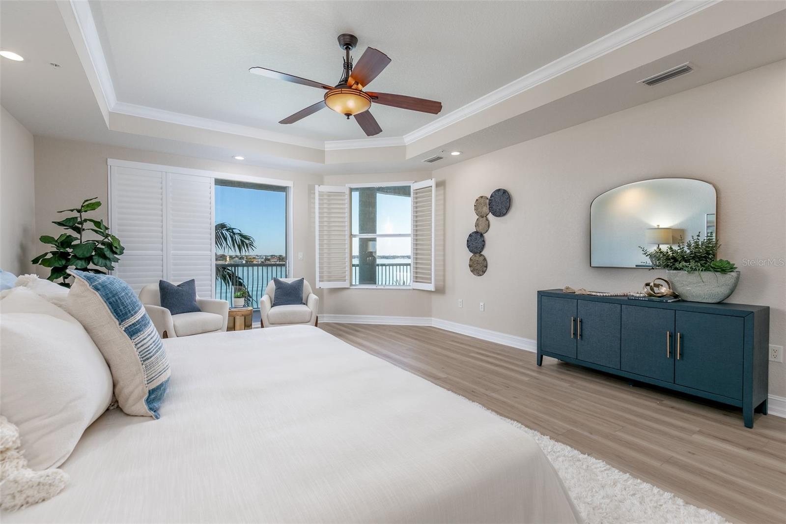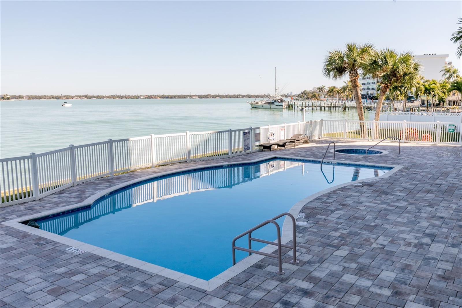 Experience the ultimate in Florida island living at La Bella Vita, an exclusive gated waterfront community of only 16 residences, ideally located on the bay and just one block from desirable Treasure Island Beach. This newer, secured building features a private lobby entrance and high-speed semi-private elevator. Complete Coastal Package-this rare expansive end condo residence offers over 3,100 square feet with 4 bedrooms, 3.5 baths, a private 2-car garage-equipped with 48 AMP EV charging station, and deep water boat slip with easy Gulf access. The artful, open, light-filled floor plan showcases 10’ ceilings, tray ceilings, crown molding, designer lighting. You will enjoy the expansive kitchen with granite countertops, wood cabinetry with pull-out shelving, glass tile backsplashes, and stainless steel appliances. The luxurious primary suite features direct balcony access, stunning water views, an oversized walk-in closet, and a spa-inspired bath with garden Jacuzzi tub, oversized tiled shower with dual heads and seating. A second bedroom also enjoys access to a private balcony. Enjoy sweeping bay views from the private oversized balconies, and every room, enhanced by the highly desirable end-unit location. Resort-style amenities include a heated waterfront pool and spa, paver sun deck, dock, and a deeded boat slip — perfect for boating enthusiasts to explore our vibrant coastal community. Ideally situated between St. Pete Beach and Madeira Beach, and just minutes by boat to the Gulf. Convenient to Clearwater Beach, Downtown St. Petersburg, and Tampa International Airport. Enjoy breathtaking sunrises, nightly skies, dolphins in the bay, and easy strolls to shops, restaurants, and entertainment in charming Treasure Island. This is a rare opportunity to own luxury waterfront living in one of Florida’s most desirable island settings.