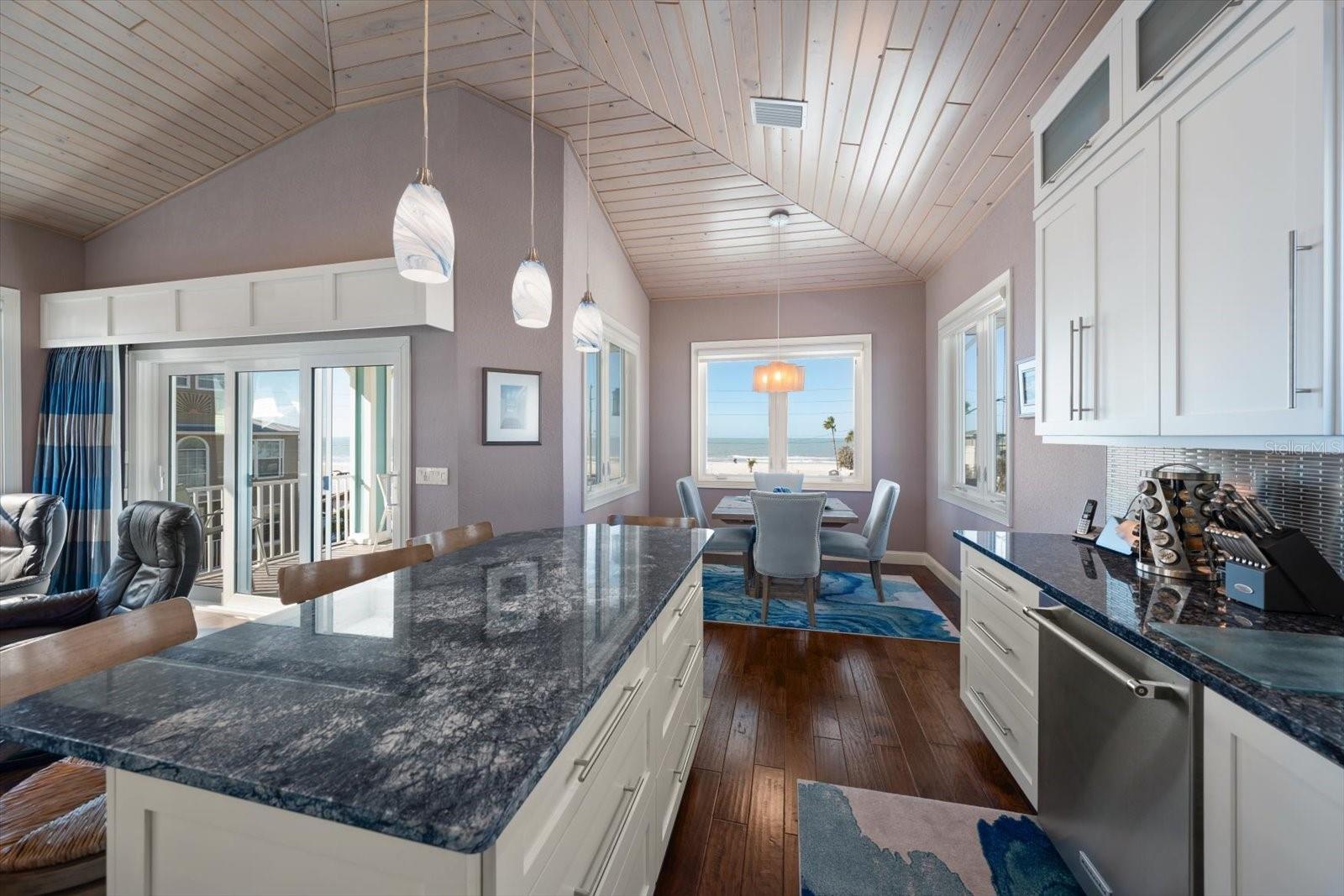 Elevated Coastal Dream Home on Sunset Beach. A dream of a beach house became the owner’s reality. Not a single detail was overlooked when designing this quality built home while embracing it’s beautiful surrounding & providing every creature comfort. From the stunning vaulted Cypress ceilings & cozy window nook, to the California kitchen plan with amazing Gulf front Dining room, the sellers thought of everything. Each window & balcony was perfectly placed to optimize sunrises, sunsets and Water Views of the Gulf of Mexico & Blind Pass Waterway. This Key West Style Home was Built in 2015 to FEMA standards. The living area stayed high and dry in 2024 hurricanes. All windows & doors are hurricane rated plus roll down storm shutters on all living space doors. The elevated wood frame & concrete structure features flood vents, hurricane rated garage doors, hurricane rated metal roof, & Hardie fiber cement siding. The top floor great room features washed-cypress vaulted ceiling, balcony & amazing views. Dining area features windows & views on three sides with ample seating/entertainment area, plus window seat with beach view. Kitchen has stainless steel appliances and striking blue granite island and counters. Top floor includes 2 bedrooms with balcony overlooking the Intracoastal, 1bath & laundry room. Second floor includes spacious master suite with balcony, Gulf views, walk-in closet & lovely bath with curbless shower. Two additional bedrooms & full bath on the opposite side of the second floor are combined into 2-room guest or in-law suite with kitchenette/sitting room & bedroom with own exterior entrance. House was designed for aging in place with walk-in shower, wide doorways that can accommodate wheelchairs, elevator & suite that could be used for live-in help, visiting guests or childcare providers. Cherry wood-paneled elevator takes you from oversized 3-car garage with epoxy-coated floors to the second & third levels of house without having to climb stairs. Now is the perfect opportunity to invest in the future of Sunset Beach, without sacrificing the time, money & energy to build new. This very special home is ready to become Your new reality, your Sunset Beach dream home. View the video walk through, photographs & floor plans for details. Schedule a private showing today.