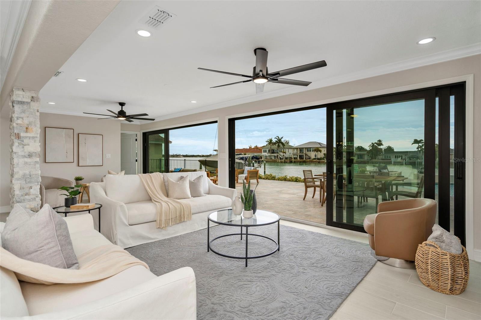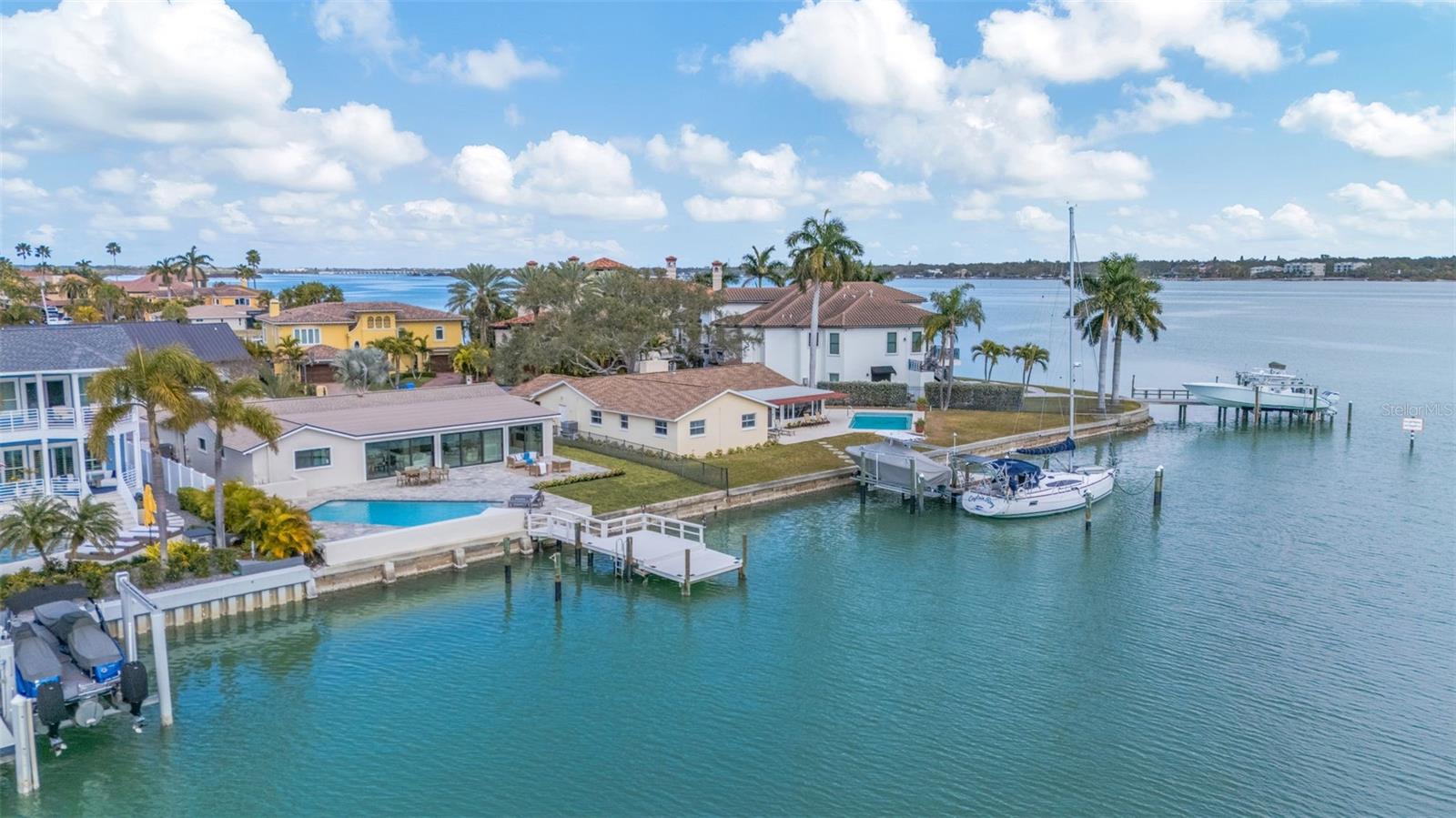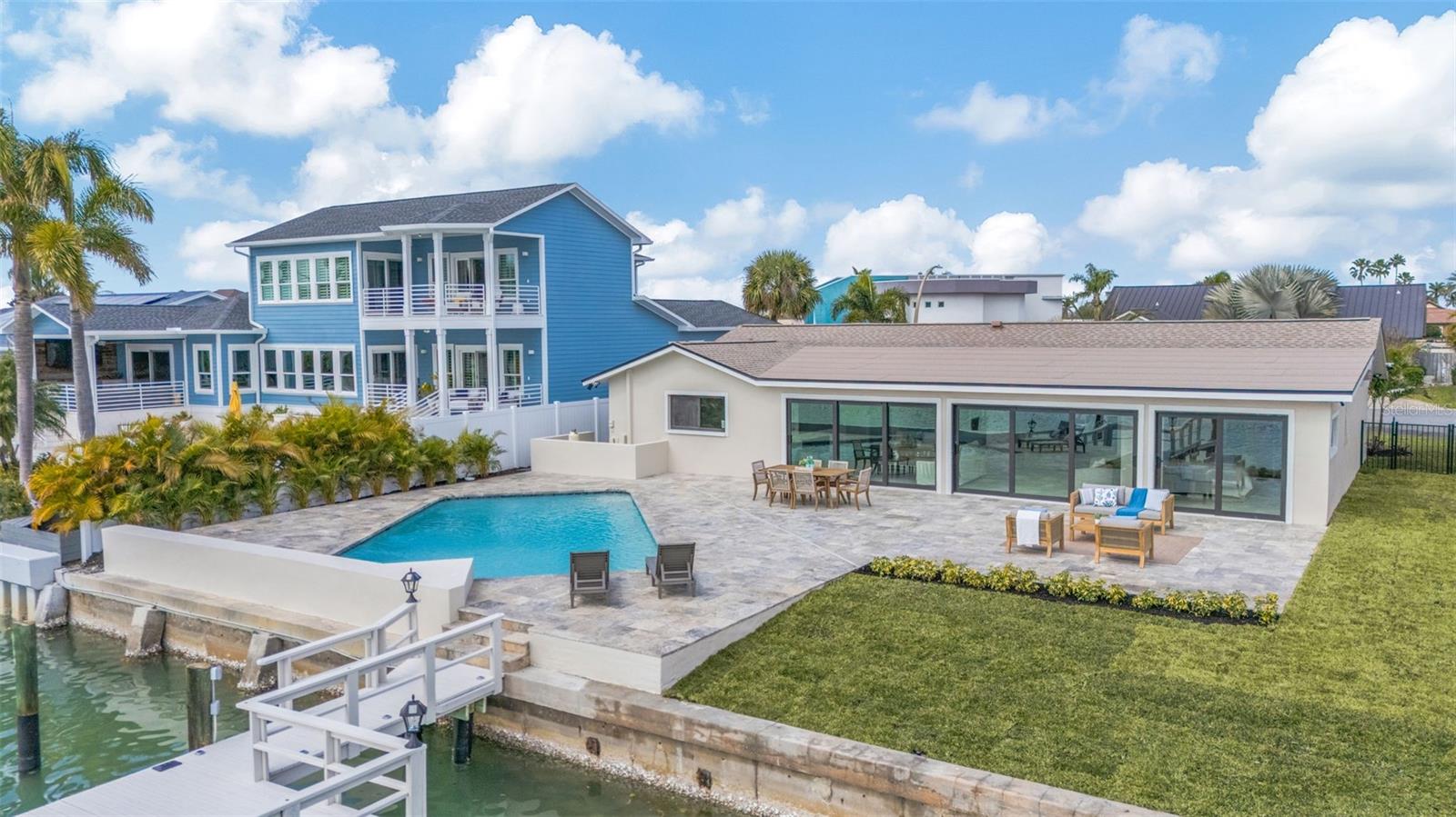 Full custom design and renovation by the Parks property builders. Waterfront home offers timeless mid-century modern architecture. Located in a cul-de-sac on highly desirable neighborhood of Capri Isles. This 3-bedroom to Bath waterfront Home offers timeless architecture. Your boat. Will be in your backyard. Right next to your beautiful pool with views of a wide open water of Capri Isles. Everything in the home is new top to bottom. Dual walk-in closets in your Owner's suite. The en-suite bath has Double shower, Beautiful spa tub, Double sinks vanities. The home features ceramic, light, wood-like tile throughout. Open water Views all across the Glass sliders doors at the back of the house. Back yard has large travertine patio with pool and private dock. The kitchen is equipped for the best of the gourmet chefs. Featuring oversized, large center island. Perfect for entertaining. Top-of-the-line, professional-grade appliances. New landscaping. New air conditioning. New pool equipment. New pool. New roof. New water heater. Everything in the home is new. Beautiful and ready for occupancy complete this exceptional coastal property.