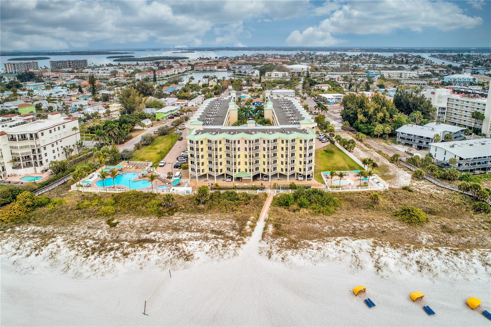 Nestled on the coveted sunset side of the building, this elegant second-floor condo in Sunset Vista offers a slice of paradise. Boasting 2 bedrooms and 2 bathrooms, it provides a serene escape with views of the beach and the stunning Gulf of Mexico. This condo is not just a serene oasis; it's also an investment opportunity. With a projected gross income of $63,211, and the owner reserving 57 nights for personal use in 2023, you can add another $13,509 by renting it at an average of $237 a night, resulting in a total potential rental revenue of $76,620. Your earnings, of course, may vary based on your usage. Freshly updated, this unit ensures modern comfort and convenience and includes an owner's closet for your personal items. Sunset Vista Condo/Hotel offers an array of resort-style amenities, including a beachfront pool, spa, a one-of-a-kind child's pool with fountains and spa, a tiki bar, café, and a fitness center. Located on the sugary sands of Treasure Island, it grants you front-row views of the azure waters of the Gulf of Mexico and is just a short half-mile from the world-renowned John's Pass. This is a turn-key opportunity, offering a full-size kitchen with granite countertops, a breakfast bar, a dining area, a living room, three flat-screen TVs, and a washer/dryer. You and your guests can relish the beachfront lifestyle with ease. Manage the property through a world-class on-site management company or take the reins personally or with the assistance of an off-site rental company. Sunset Vista has a well-established reputation as a vacation destination with a proven track record, delighted repeat guests, and a reliable stream of rental revenue. For potential tax benefits related to vacation rentals, you can review IRS Publication 527. This property is also an excellent option for a 1031 exchange. In addition to all these features, your unit comes with the convenience of an assigned parking spot. This is a unique opportunity; make your appointment today to see this remarkable condo and all that it has.
