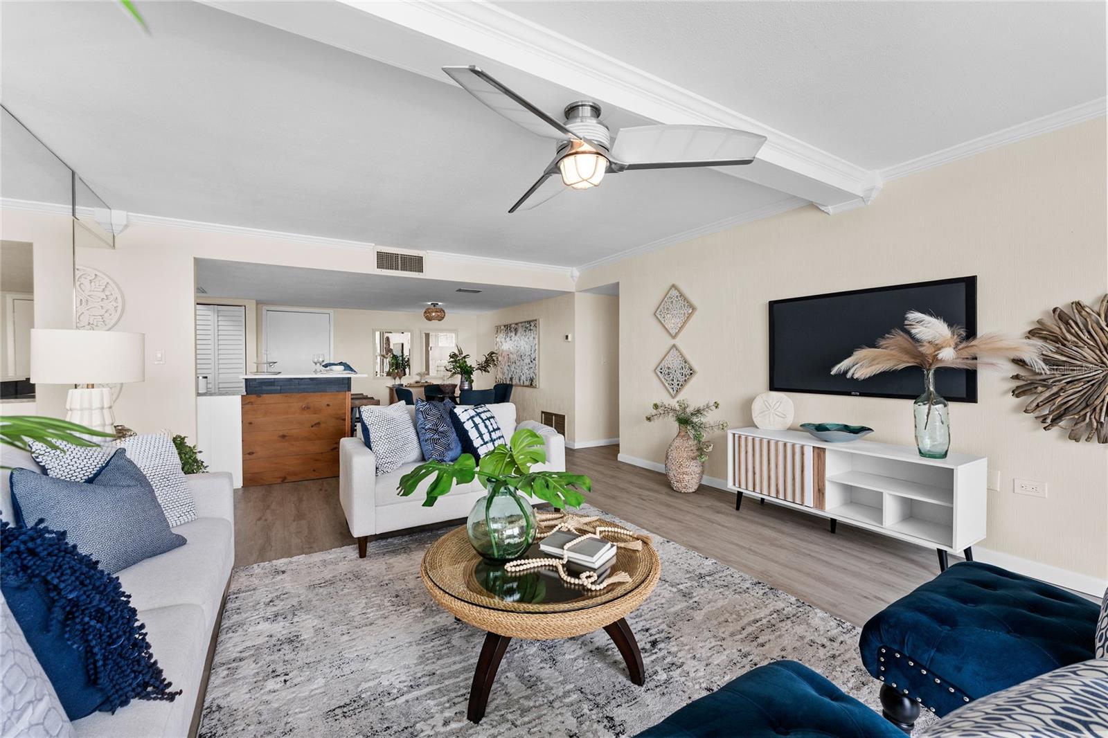 ARE YOU Looking for an 2 Bedroom 2 Bathroom 1308 sq ft NO FLOODED WATERFRONT CONDO with AMAZING Views of the INTRACOASTAL and UPDATED? This condo is a perfect residence, or a beach get-a-way. With unmatched views of the Boca Ciega intercostal and Less than ONE mile from the GULF OF MEXICO, This condo is the finest opportunity in the area. Step inside to see resort living at its finest. Once inside you will be enticed at all the UPDATES. NEWER VINYL PLANK FLOORING,NEWER Remodels for the Bathrooms, NEWER IMPACT SLIDERS AND WINDOWS, CUSTOM BAR, NEW TRANE A/C AND HVAC. The OPEN concept design along with Custom beam, CROWN molding , Soft Palette of NEWER PAINT give this condo a warm inviting feel. The kitchen features Quartz Countertops, Custom Planking Bar, Stainless Steel Appliances, Custom Plantation style Door, Recessed and Custom Lighting and Lots of Storage. The Master Bedroom offers Stunning WATERFRONT VIEWS, Upgraded Large Custom Closet, (Plantation style doors can be put on) NEWER IMPACT Windows, Stone Counter and MORE STORAGE!. The master bathroom has Nickel Fixtures, Quartz Countertop, Subway Tiling with a Custom Design tile WEAVE in the Center. The Second bedroom offers Newer Impact Windows, Large Walk in Custom Closet along with a storage room, Quartz countertop area along with Expansive INTRACOASTAL WATER VIEWS. The SECOND bathroom offers a shower with Subway tile and a Custom PEBBLE Design, closet space with a Plantation style door.This unit comes with 2 water-heaters, Washer and Dryer, A Double storage unit, 2 ASSIGNED Parking spots Shops, restaurants and beach are located just a short walk away. Conveniently located only 10 minutes from downtown St Petersburg and 45-minute drive to Tampa International Airport. This is a no pet condo