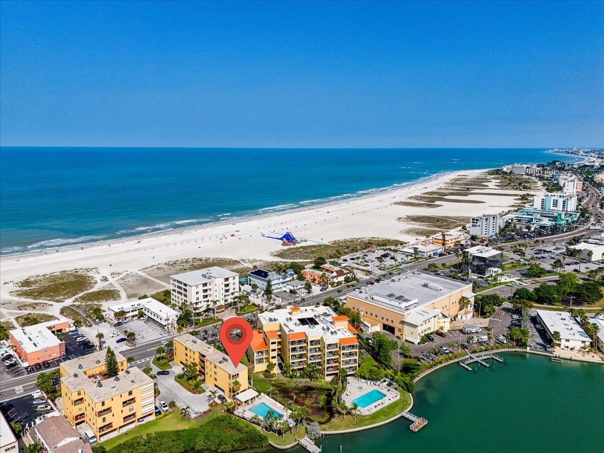 BACK ON THE MARKET! Unit is available again. Fantastic opportunity to secure this Gulf-front condo. This property is the ideal mix of location, layout, and money-making potential, allowing 1 WEEK RENTALS. Move in and modernize at your pace while earning equity. Experience the best of coastal living in sought after Gulf to Bay Lagoons located in the heart of Treasure Island! Quiet and private, there is only one other condo on the same. Located on the Intracoastal Waterway, this 4th floor overlooks the pool with breathtaking views of the Intracoastal as well as a view of the Gulf of Mexico from the dining room window. This unit is spacious with 1320 cooled sq ft. A 2-bedroom, 2-bath, corner unit with walk-in closets in both Main Suite and the Guest Bedroom. In unit Laundry room, and low-maintenance luxury vinyl floors throughout. FISHING DOCK available on a first-come first-served basis for short-term docking privileges. Covered parking space, nicely landscaped property, and well maintained. Cross walk over to the crystal-clear Gulf of Mexico just steps away, few block walk to tons of shops, dining and entertainment! All information is deemed to be accurate but is not warranted and should be verified by buyer(s).