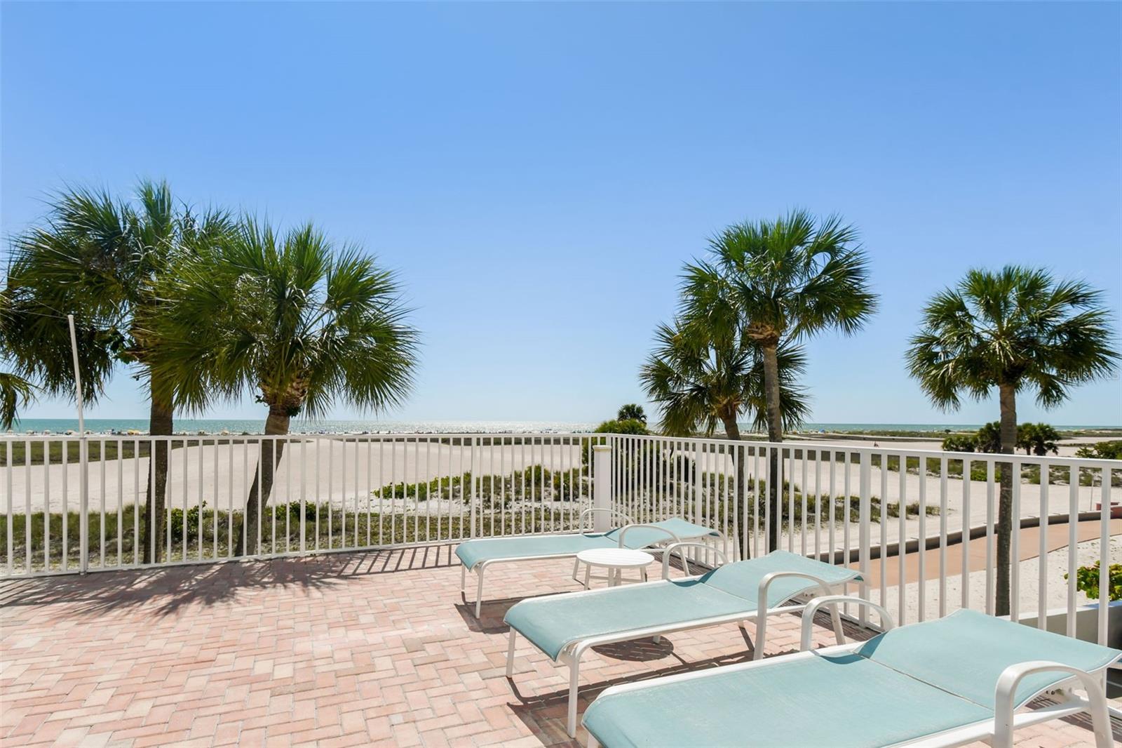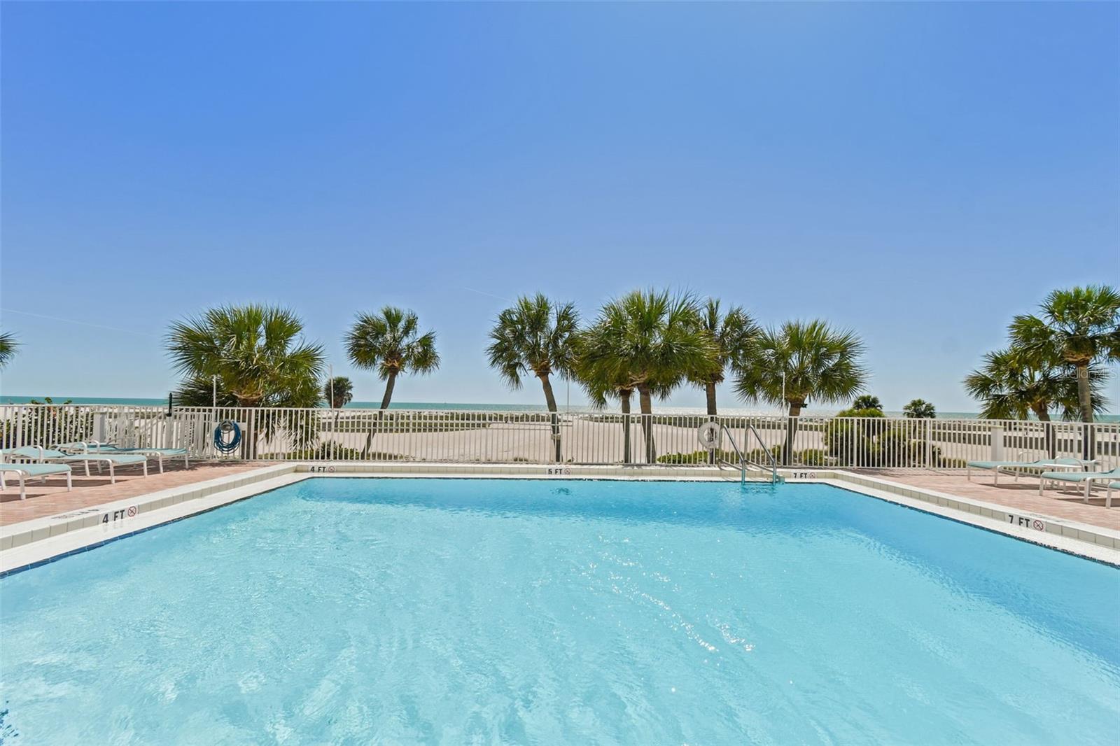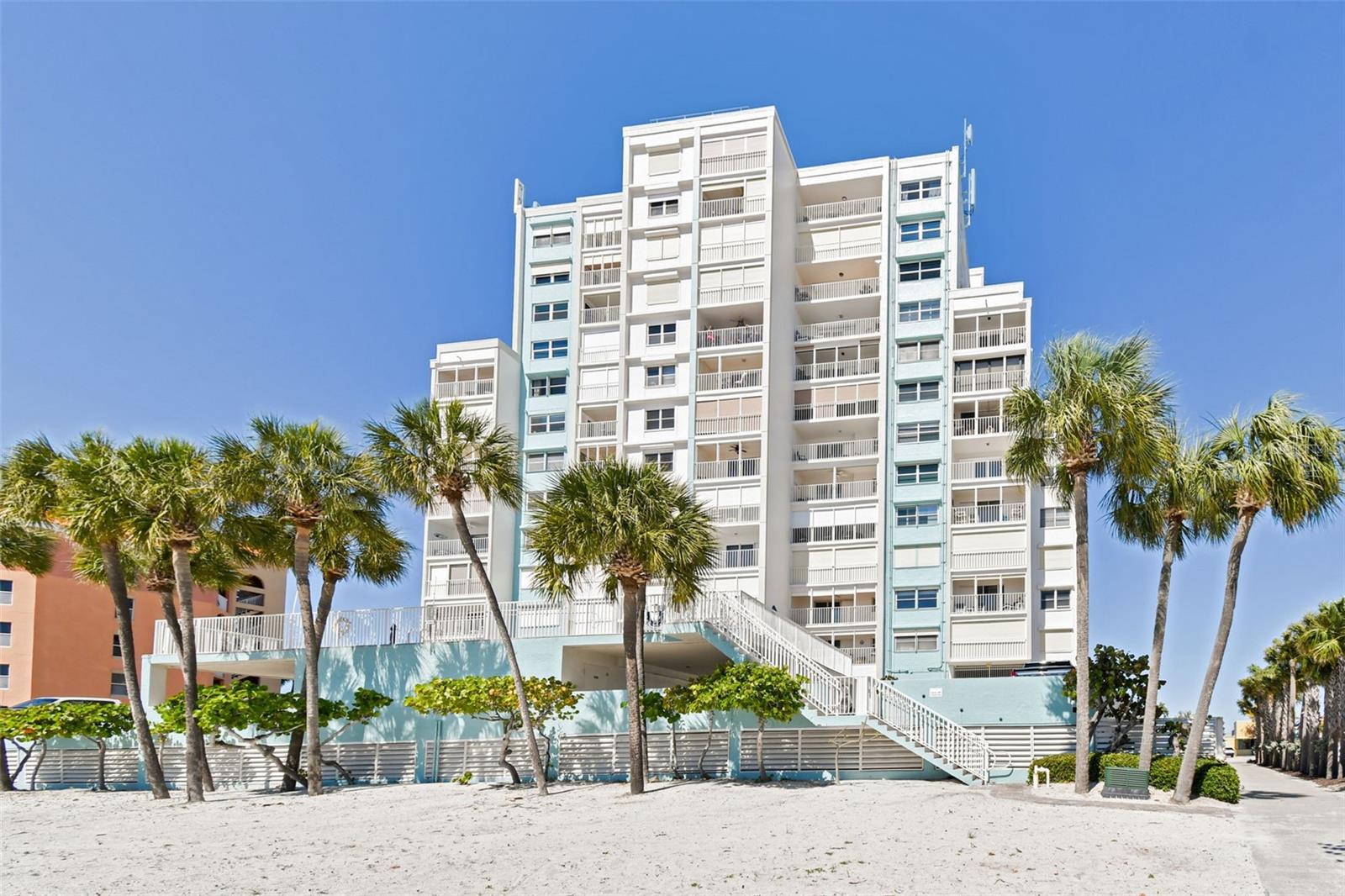 Welcome to Treasure Sands landmark Condominium! Direct Gulf of Mexico views from this 7th floor fully furnished two bedroom two bathroom , nestled in the heart of Treasure Island with three miles of sparkling sandline. The functional and spacious kitchen has everything needed when it comes to prepping your favorite dishes. Dining/Living room includes beautiful narrow plank oak wood floors and lead to a wide balcony overlooking the Blue Sea with its amazing views! Electric hurricane shutters in living and primary bedroom with its en-suite bathroom for your peace of mind . Under-building assigned parking space is #26 and storage locker #33(located on P2) are both very conveniently located. Trash shoot and laundry room are on all floors. High speed wi-fi and cable are included in the monthly maintenance fee. Relax in the private solar heated pool or walk to the soft white sandy beach. 2023 improvements to the building are new exterior paint and pavers, all plumbing cast iron pipes replaced with PVC, 2 new elevators and most importantly it passed the milestone study and inspection. The beach here is uncommonly wide in most parts which means you'll find plenty of space to spread out. From May to October you can witness Sea Turtles nesting. A ton of old Florida charm, as does a quaint neighborhood on its southern tip, Sunset Beach. Walking distance to restaurants, cafe's, Ice-cream shops, pharmacy, grocery store, local souvenir shops, gas station. 35 minute drive to Tampa international airport, downtown St Pete, Salvador Dali Museum, Fort De Soto Park and much more. Come live the Florida lifestyle at its fullest and make this turn key Beach income property, vacation retreat or both Yours!