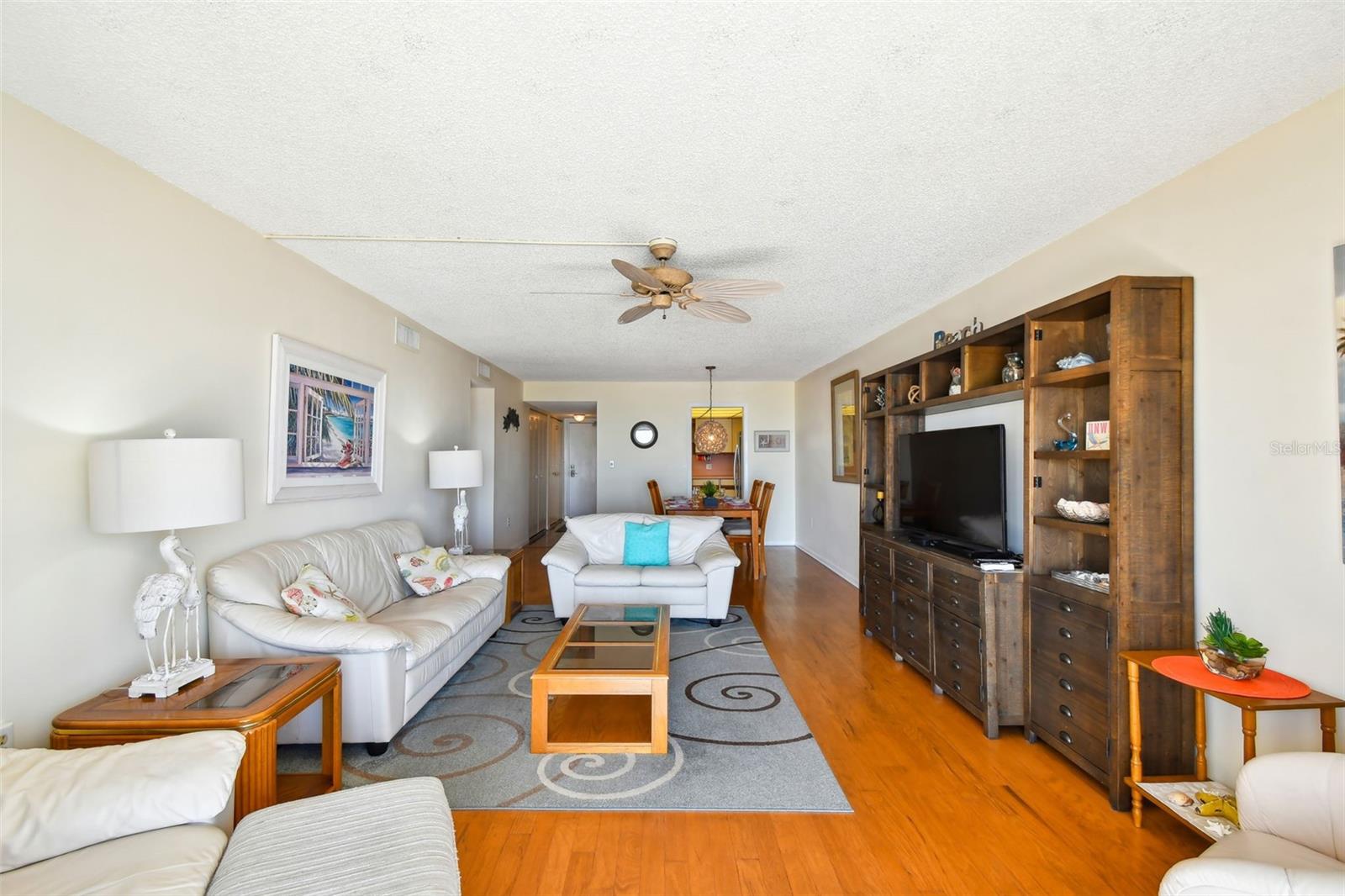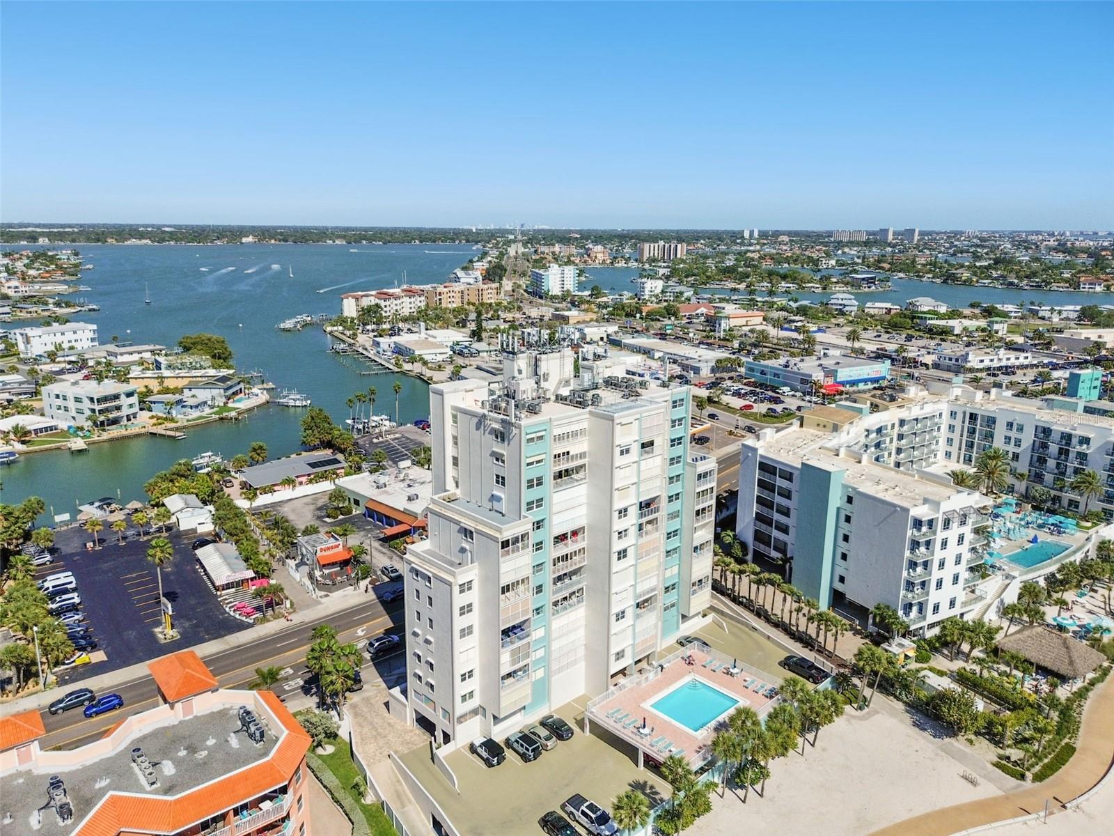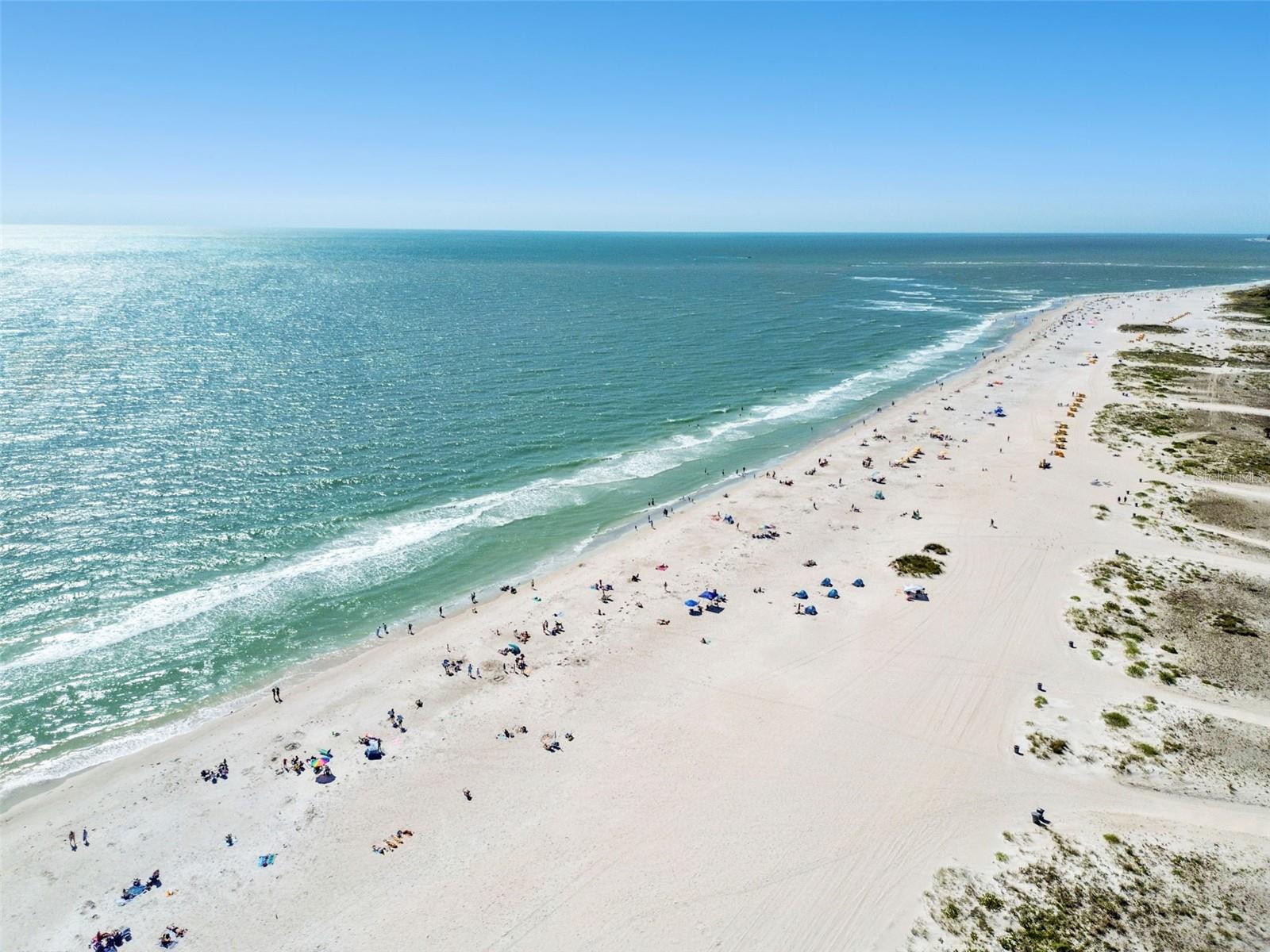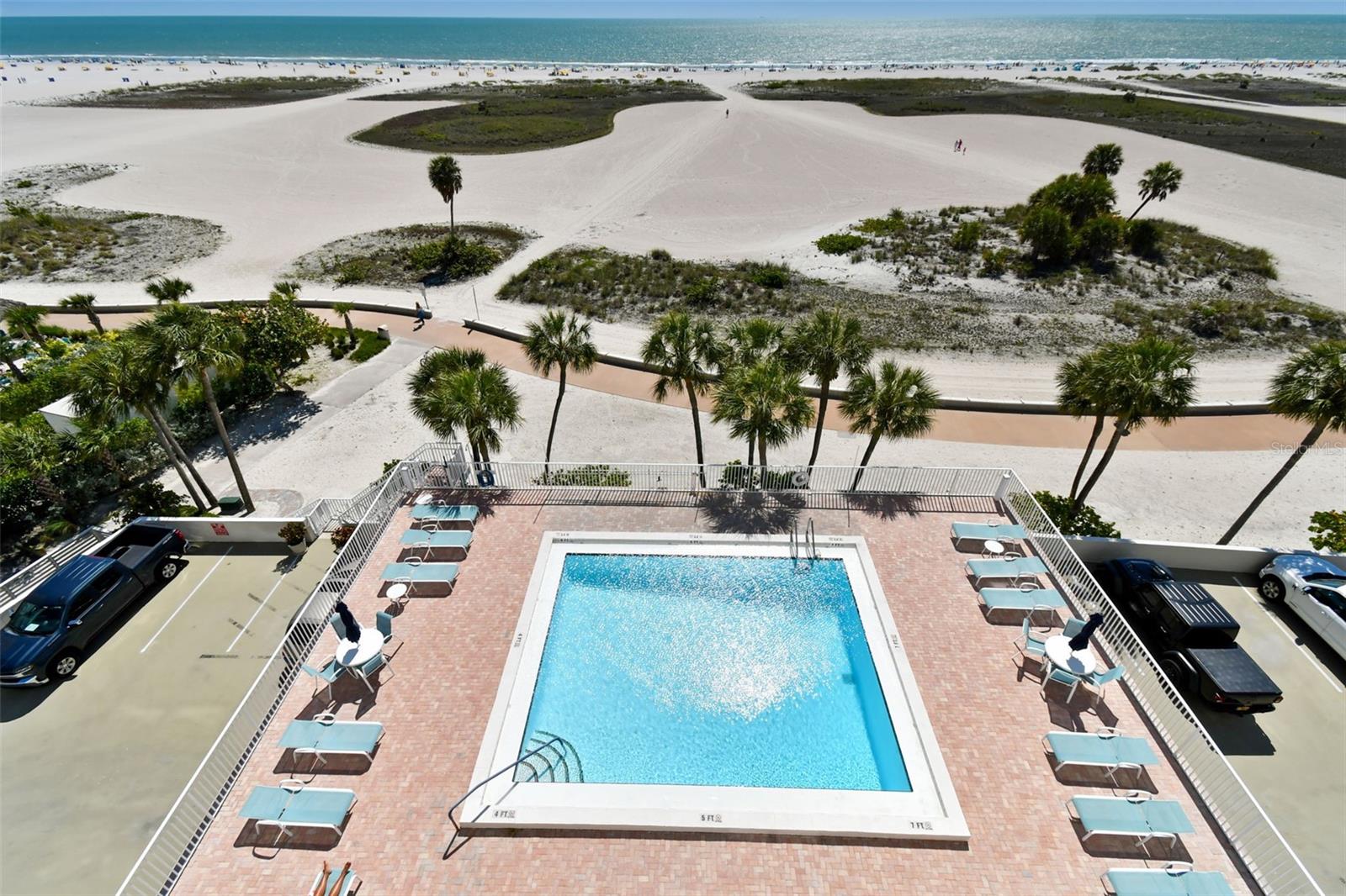 Welcome to Treasure Sands landmark Condominium! Direct Gulf of Mexico views from this 7th floor fully furnished two bedroom two bathroom , nestled in the heart of Treasure Island with three miles of sparkling sandline. The functional and spacious kitchen has everything needed when it comes to prepping your favorite dishes. Dining/Living room includes beautiful narrow plank oak wood floors and lead to a wide balcony overlooking the Blue Sea with its amazing views! Electric hurricane shutters in living and primary bedroom with its en-suite bathroom for your peace of mind . Under-building assigned parking space is #26 and storage locker #33(located on P2) are both very conveniently located. Trash shoot and laundry room are on all floors. High speed wi-fi and cable are included in the monthly maintenance fee. Relax in the private solar heated pool or walk to the soft white sandy beach. 2023 improvements to the building are new exterior paint and pavers, all plumbing cast iron pipes replaced with PVC, 2 new elevators and most importantly it passed the milestone study and inspection. The beach here is uncommonly wide in most parts which means you'll find plenty of space to spread out. From May to October you can witness Sea Turtles nesting. A ton of old Florida charm, as does a quaint neighborhood on its southern tip, Sunset Beach. Walking distance to restaurants, cafe's, Ice-cream shops, pharmacy, grocery store, local souvenir shops, gas station. 35 minute drive to Tampa international airport, downtown St Pete, Salvador Dali Museum, Fort De Soto Park and much more. Come live the Florida lifestyle at its fullest and make this turn key Beach income property, vacation retreat or both Yours!