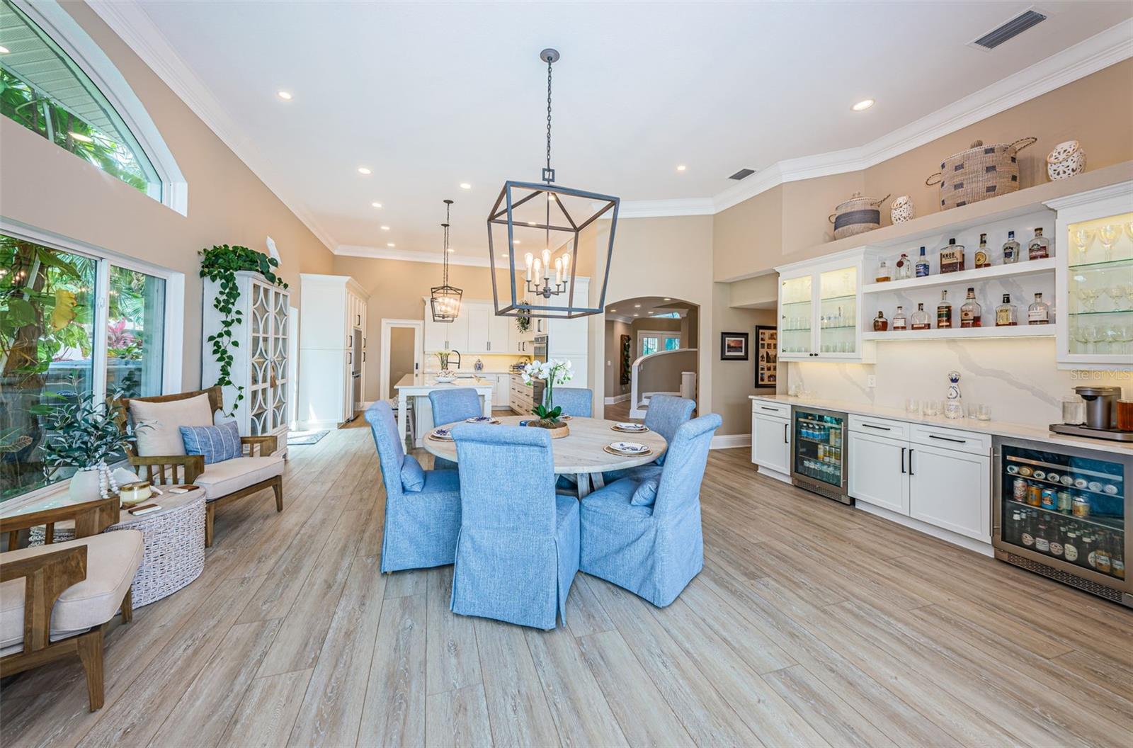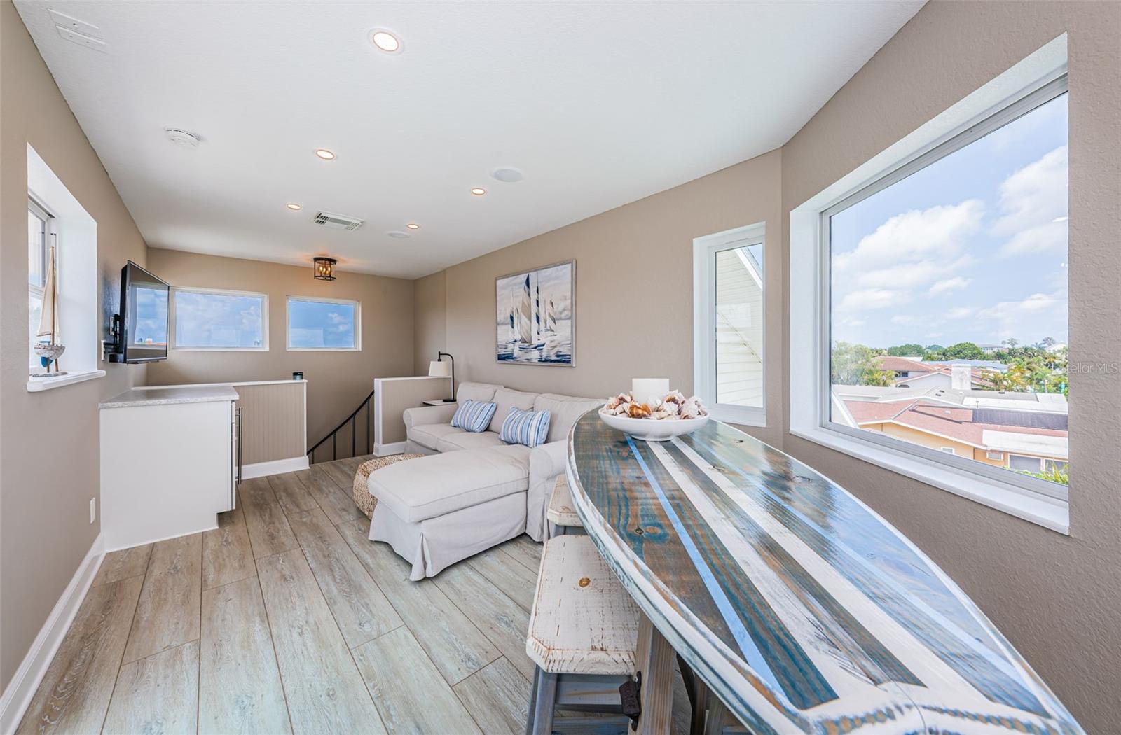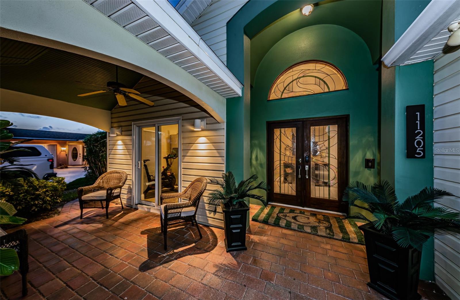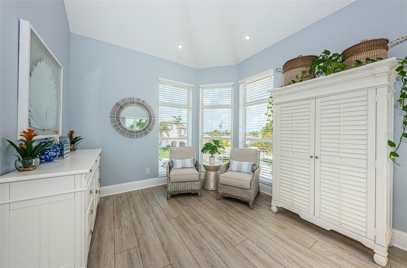 BEAUTIFULLY LANDSCAPED WITH A WONDERFUL SOUTHERN COASTAL APPEAL, THIS GORGEOUS WATERFRONT RESIDENCE OFFERS FABULOUS WATERVIEWS AND RAPID BOATING ACCESS TO THE GULF OF MEXICO! A lovely covered entry with spacious seating area introduces an elegant 13ft-high foyer and a luxuriant home with rich driftwood-style flooring, beautiful woodworking, radiant lighting and superb finishes. The terrific waterfront great room boasts 14ft-high ceilings, a fireplace and entertainment wall, and easy access to the large back yard pool deck. The posh designer kitchen features inspiring quartz surfaces, coastal-white wood cabinetry, high-quality stainless-steel appliances, a large island bar with prep center, and a sizable pantry closet system. The huge open dining area includes a custom, built-in luxury buffet and multi-chiller beverage center. The first level guest suite with splendid full bath, overlooks the waterfront and opens to the pool deck. Separate, full guest bath is beautifully tiled, with graceful fixtures and glasswork. Upstairs, rests the stunning waterfront owner’s suite, with 19ft-high vaulted ceilings, walk-in closet system, dedicated sitting area, and private balcony overlooking the pool deck and waterfront. The posh owner’s bath enjoys a lavish open-concept walk-in rainshower with shower wand, exquisite quartz surfaces, dual vanities and views of your waterfront. You’ll love the terrific upper-level lofted entertainment room with built-in beverage and entertainment center; room delivers dazzling panoramic views of the intracoastal waterway by day, and illuminated Treasure Island by night. Step out to the open deck and take in amazing waterviews in all four directions! Out back, discover a private, lushly-landscaped tropical oasis. A large paver deck (with pavered walkways that extend completely around the home) provides generous space for outdoor dining, with an extended lounging area around the impressive, oversized swimming pool. Your newer composite dock includes a seating area, step down platform for kayaks, and a 13,000 lb boat lift – from here, you’ll be in the Gulf of Mexico in just 10 minutes! This remarkable waterfront home has been meticulously maintained and is the definition of “move in ready.” An uncommon opportunity in an exceptional boating community close to the beach, shopping, dining and entertainment! Buyer to confirm all measurements.