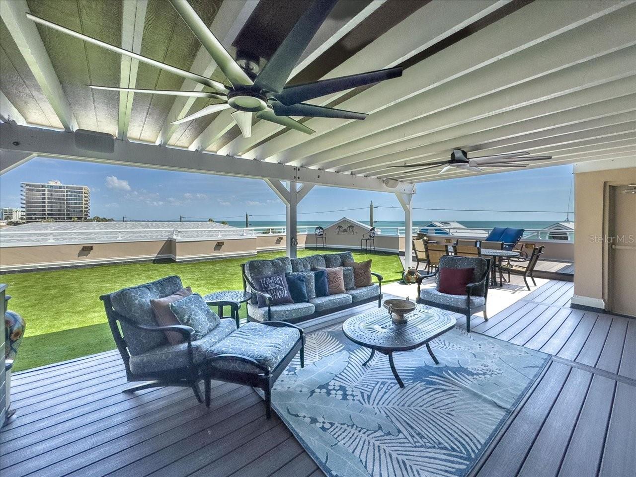 Embrace the epitome of beachfront living in this luxurious 2375 sq ft Penthouse condo, with private rooftop terrace , and 3 car garage idyllically located on Sunset Beach, Treasure Island, FL. Nestled within a boutique community of only four exclusive residences, this 3 bedroom, 3 bathroom unit offers unrivalled Gulf of Mexico views. The gourmet kitchen is truly the heart of this home, boasting two islands, an oversized breakfast bar, custom soft-close cabinetry, granite countertops and a spacious walk-in pantry, guaranteeing a seamless cooking experience. The primary bedroom—an ambience of tranquility—features two walk-in closets, a spa-like bathroom with a soaking tub, and private balcony, giving you a peaceful retreat with breathtaking water views. Every detail in this condo is designed with sophistication in mind—from the 10' ceilings and the open concept living area to the abundant natural light courtesy of the large wall of windows and dual balconies off the living room. And that's just the inside! A private 1500+ ft rooftop terrace awaits you outside, complete with a covered pergola and fireplace—the perfect setting for intimate evenings under the stars or entertaining guests. Also noteworthy is the private two-car garage plus an extra garage for your golf cart, and the allowance of two pets within the premises. The locale is second to none, with Caddy's Beach Restaurant and Ka'Tiki Bar's vibrant live music merely a short stroll away. Enjoy morning beach walks with your fur friend at the nearby dog beach—an idyllic start to the day. Rounding out the highlights is the secure elevator, offering an added element of safety without compromising convenience. To experience living beyond the ordinary at this exclusive beachfront penthouse, call today and schedule a private tour. Unlock a world of unparalleled luxury Gulfside—because you deserve nothing less.