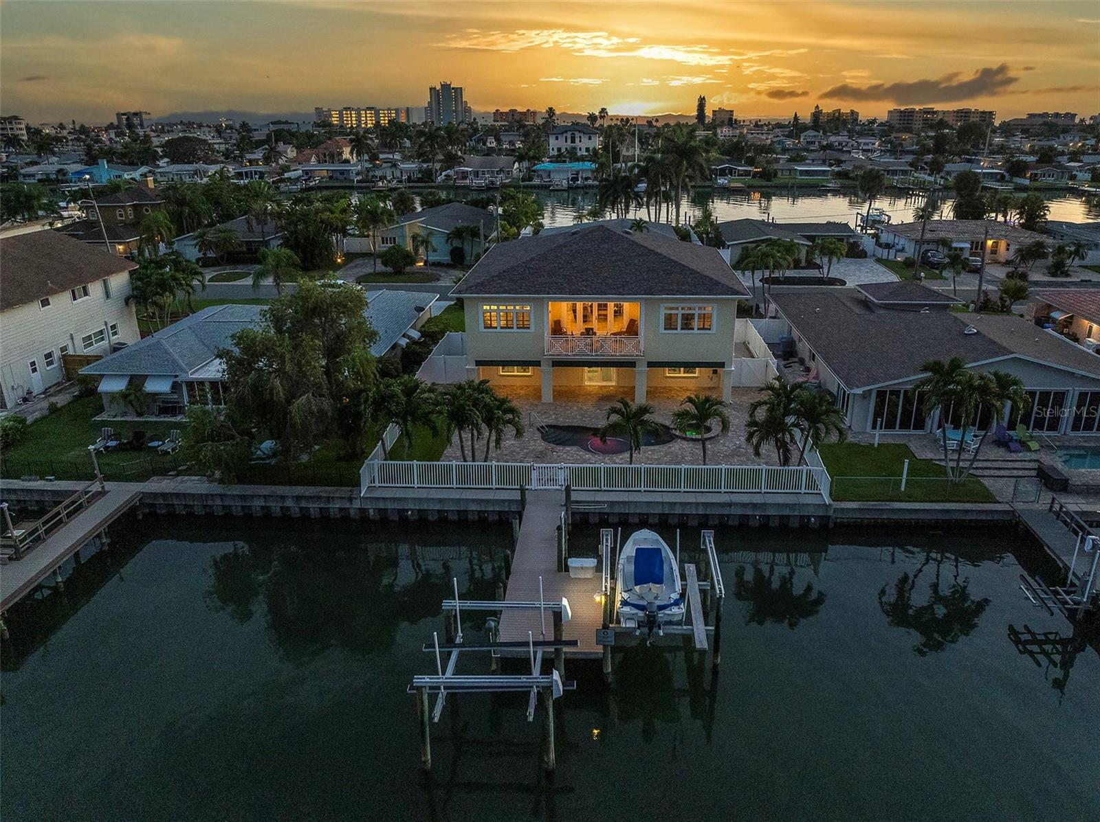 This home was built to withstand hurricanes - minimal damage received from Hurricane Helene! Welcome home - This homes has 5470 sq ft which 2550 sq ft is custom built living space! Experience the ultimate waterfront lifestyle with this stunning 3-bedroom, 3-bathroom custom home was built in 2016 and has 2 primary suites. This property boasts 70 feet of scenic waterfront living, with a dock and two boat lifts, perfect for water enthusiasts. The house features a expansive open concept layout with 10-foot ceilings, wood-look tile flooring, and ample natural lighting, creating a bright and airy atmosphere. The kitchen is equipped with slate stainless appliances, custom cabinetry with glass lighted cabinets on the top cabinets, a separate prep kitchen, pantry and abundant storage, making it a chef's dream. The primary bedroom has an en-suite bath with a walk-in shower, dual sinks and his and her closets, and there is a second primary bedroom with an en-suite bath with a Jacuzzi tub, providing ample space for guests or family members. The outdoor living area is spacious, with an inviting patio and a pristine pool area, pool is saltwater with a pebble tec finish perfect for entertaining or relaxing and includes 2 outdoor showers. The property also has a 50-foot covered lanai, an elevator, and tons of storage, making it both functional and luxurious. The six-car garage provides ample space for vehicles, storage and all the toys! The property is located a short walk from the beach, with tropical landscaping and paved patio, providing a serene and tranquil environment. The property also features elegant lighting, efficient layout, and an elevator, ensuring both comfort and safety. This waterfront location offers scenic views, tropical surroundings, and outdoor amenities, making it a true paradise. This home was constructed with concrete block, rebar and more concrete, even the floor between the 2 levels is concrete, you do not find this kind of construction, everything is above code. There are quartz counter tops throughout the home, including the garage and closets. The pool equipment is Top of the line from Pentair and only 3 months old, the pump is 1 year old. The roof has a thermostat to help regulate the temperature in the attic. Reclaimed water for your sprinkler system, Exterior was painted the end of 2023. The balcony has a power Sun screen/shade for your convenience. Plantation Shutters throughout the home. There are two showers outside, one on the side of the home and one on the dock. The 6 car garage has french doors leading to the lanai, pool and dock and is plumed for an additional bathroom. The property has a well with a hose bib that can be used to water plants. No detail was over looked when this home was built! Don't miss out on this rare opportunity to own a piece of waterfront paradise. Some furnishings are negotiable.