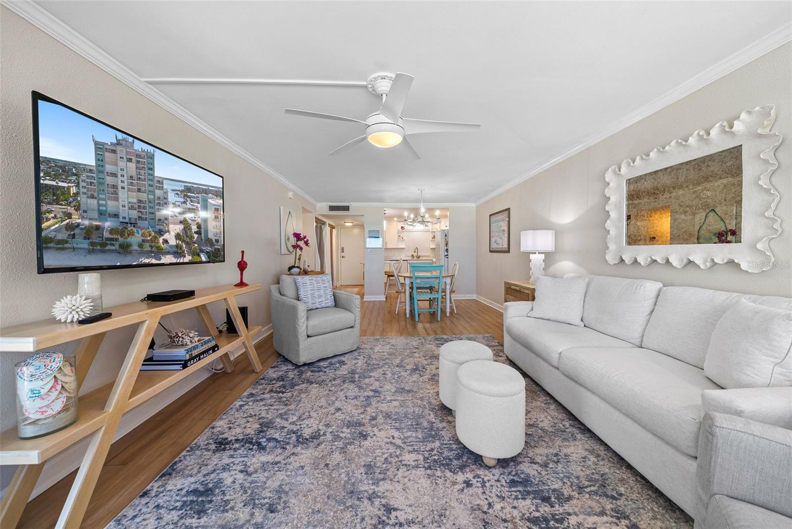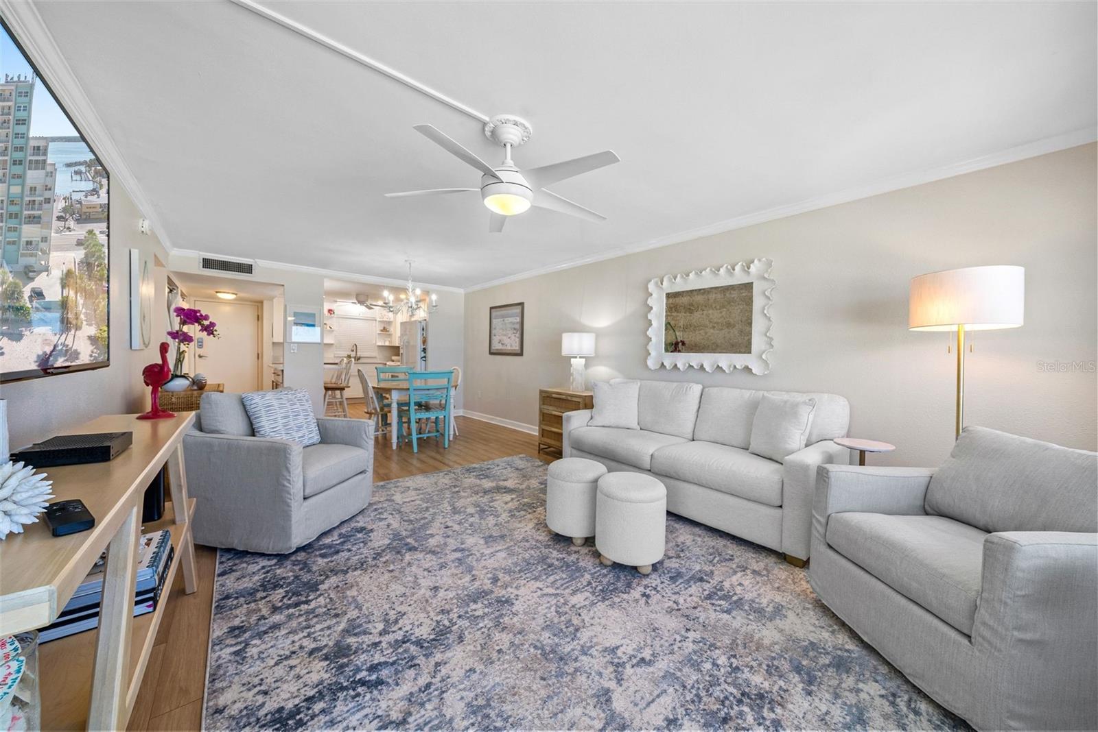 Welcome to your slice of paradise! This stunning 2 bed/2 bath waterfront condo, on the seventh floor, offers breathtaking Gulf views that you feel like you're living in a postcard. Step inside to find a spacious, remodeled home featuring an open-concept kitchen and living/dining room, perfect for entertaining while soaking in those beautiful water vistas. The home is light and bright, making every day feel like you're on vacation. Both bedrooms are generously sized and have walk-in closets, providing ample storage. The primary bedroom boasts an en-suite bathroom and direct access to the balcony, where you can enjoy your morning coffee or unwind with the sunset. The secured block building offers numerous amenities, including an outdoor pool facing west for spectacular Gulf views, a billiards/ping pong room, a seating area, and an outdoor covered lanai to play cornhole. You have your covered parking spot with plenty of guest parking. The condo unit also comes with two storage units. There are many signature events that you can enjoy, such as the Kite Festival, 4th of July Fireworks, Sanding Ovations, Holiday Lighted Boat Parade, and so much more. The condo is walking distance to central Treasure Island, where you can easily grab a coffee, ice cream, lunch/dinner, or a pina colada at one of the local joints. One of the LOWEST HOAs on the beaches. This condo is ideal for the buyer who wants to leave their car in the garage and truly enjoy beach living.