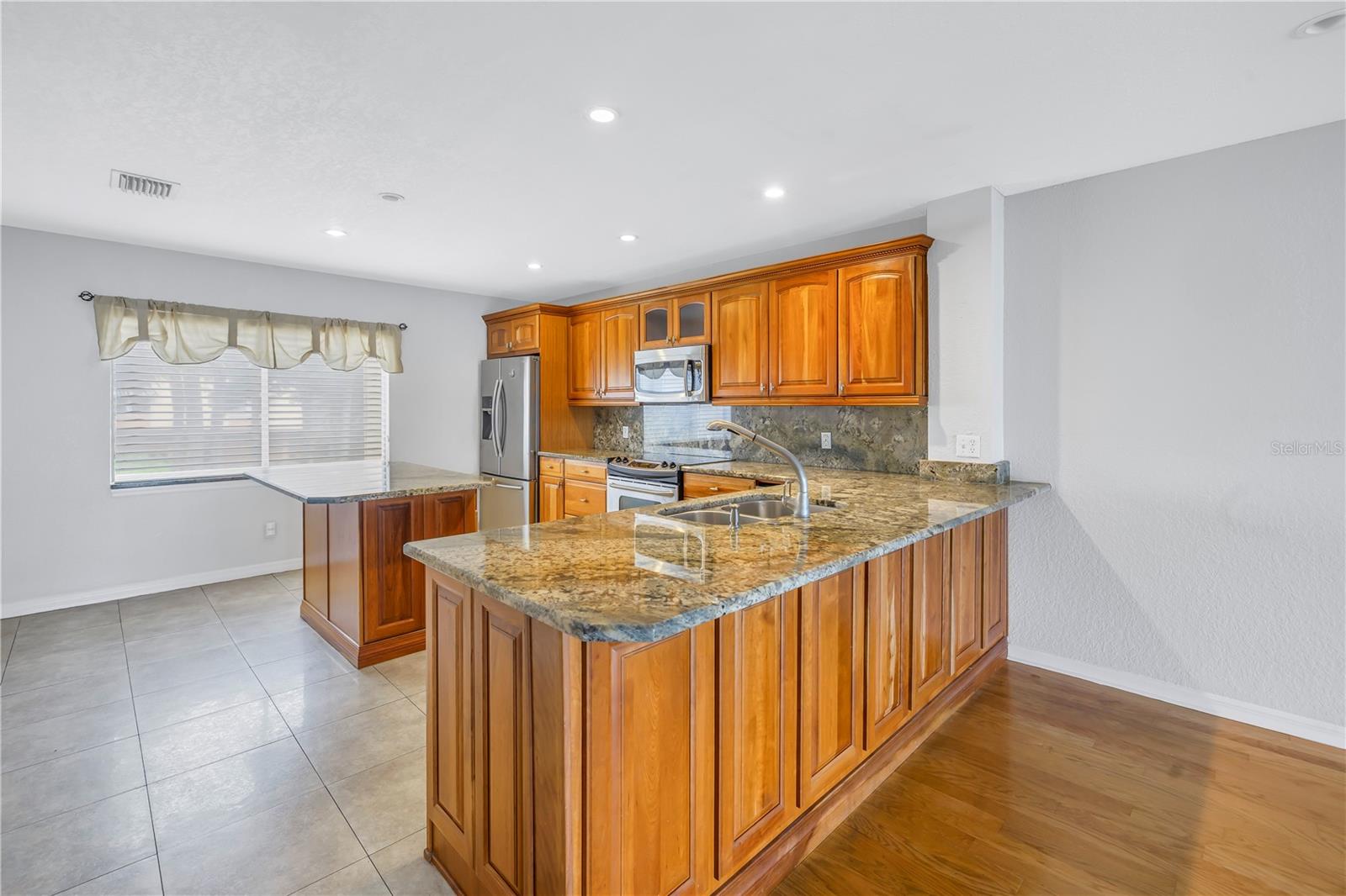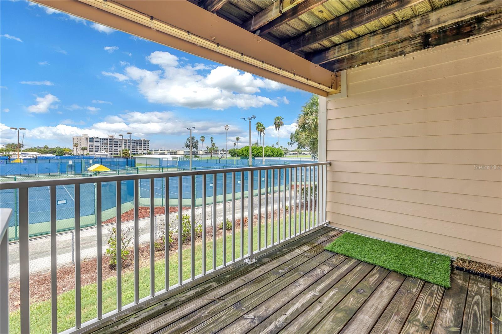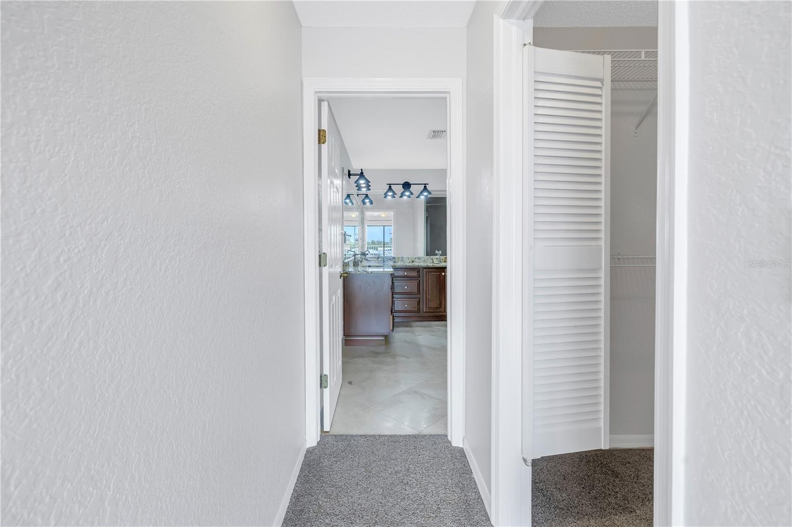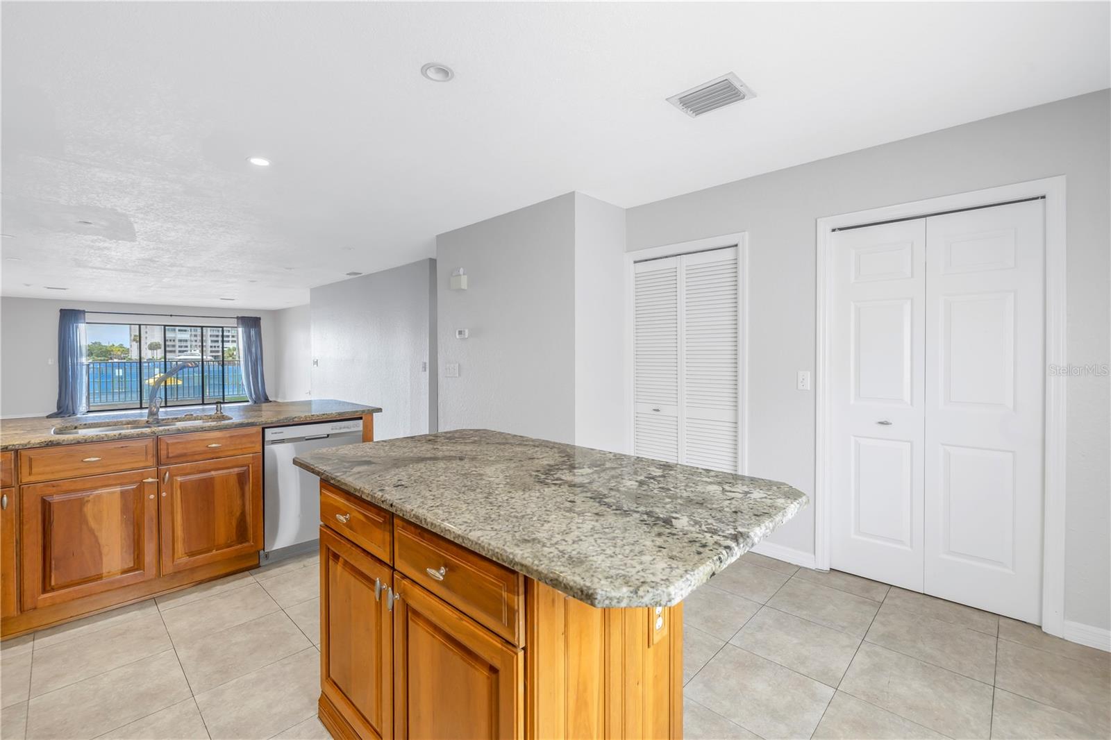 This townhome boasts split ensuite bedrooms which feature a new deck with stunning views of the ICW and the Treasure Island Causeway Bridge. The community offers amenities such as a pool, a covered entertainment area, and plenty of parking along with your own garage. Inside, the great room has hardwood floors, and the sliding glass doors offer water views that lead to the deck, allowing natural light to fill the space. The open floor plan seamlessly connects the great room to the kitchen, which is equipped with granite countertops, tile floors, a bar, island, stainless steel appliances and a walk-in pantry. The primary suite features sliding glass doors and a large walk-in closet. The primary bathroom includes tile floors, granite countertops, and a walk-in shower. Convenience is key with an upstairs laundry room. On the terrace level, you'll find a versatile flex room with access to an exterior patio. Residents can enjoy fishing from the dock with water views, enhancing the serene living experience.
