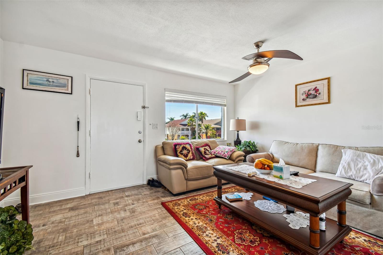Discover your perfect retreat in this charming 1-bedroom, 1-bath condo, where every day feels like a vacation. Nestled in the serene Isle of Capri in Treasure Island, this delightful second-floor unit offers breathtaking views of boats gliding by, playful dolphins, and stunning water vistas across from John's Pass. Step into your air-conditioned Florida Room, where you can soak in the spectacular scenery year-round or let the gentle breeze flow through open windows. This cozy, light-filled condo is thoughtfully designed for both full-time living and an idyllic beach getaway. The kitchen, with its adjoining dining area, is bright and welcoming—perfect for enjoying your morning coffee while planning your day. The spacious living room is bathed in natural light, creating a warm and inviting atmosphere for relaxation or entertaining. This well-maintained 55+ community boasts a new roof (2017) and a freshly paved parking lot. You'll also appreciate the convenience of a private storage space downstairs for your beach gear and a laundry area for added ease. Take a leisurely stroll to the beach or enjoy a peaceful walk through nearby Rosselli Park. As the day winds down, catch the sunset from the sandy shores or unwind with neighbors on the dock, under the shade of an umbrella, or in the comfort of your cool Florida Room. With only 20 units, this quiet, pet-friendly community offers a tranquil lifestyle just minutes from two international airports. Don't miss your chance to own this slice of paradise—schedule your showing today and start living the beach life you've always dreamed of. Financing options are available. Land lease through 2066.