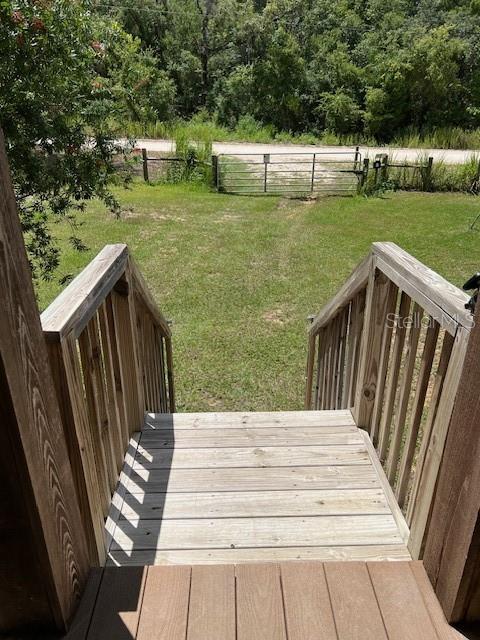 This 4 year old home is tucked away on just over 1/4 of an acre in Gilchrist County but less than 5 minutes to Newberry. It is wheelchair accessible with 3 large bedrooms and 2 baths. This is a Farm House style home with a lot of shiplap throughout. The kitchen has a huge gas range and hood with an island that is 10 ft by 4 with plenty of room for guests to eat at. Please note that all the kitchen cupboards have custom drawers that pull out for easy access. There is a sliding barn door to close off the kitchen to the butler pantry where you will find the microwave and the beverage cooler. This room then leads to a very large laundry room that which serves as space for a freezer. The home flooring is beautiful vinyl plank throughout which make the living room and dining room look very elegant and spacious. Going down the hallway you will see a cubby hole desk with 3 drawers and countertop. This is a wonderful place to keep your bills/receipts which stop cluttering the kitchen counter! The guest bath has a tub/shower with a Formica vanity counter top. Two good size bedrooms lead to the master bedroom suite which takes up the entire back of the home. The bedroom is 14.5 X 15.5 which leaves plenty of room for a king size bed and furniture. A stand alone sunken tub, enormous shower, and dual counter sink make this a bath to envy. The property is entirely fenced with wire fencing and has an electric gate entrance. The 12 x 20 shed remains.