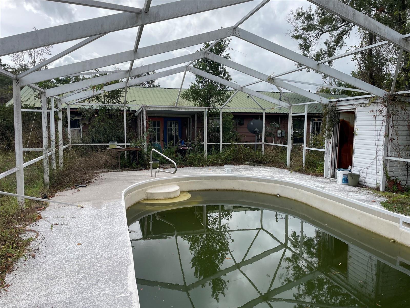 Beautiful 4.11 acre property located in Trenton surrounded by large acreage homes and farms. Site built home, slab foundation with concrete in-ground pool with screen enclosure frame. Seller is in process of replacing the roof. The home offers a spacious layout with a split-bedroom design, a huge primary suite, and a large living room complete with a wood-burning fireplace. This property presents an incredible opportunity to restore and personalize to your taste. Cash-only purchase, AS-IS offers only—property cannot be financed.