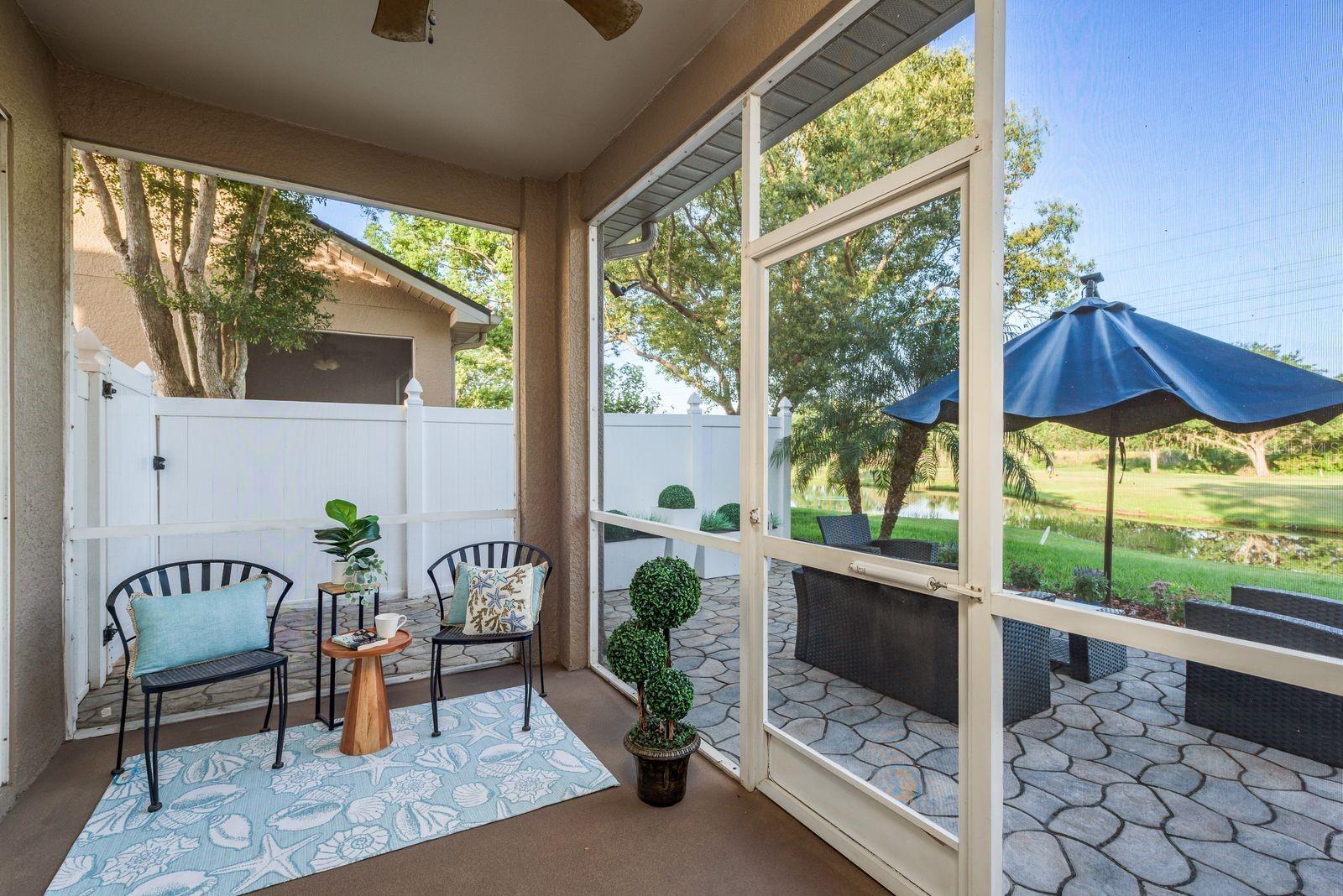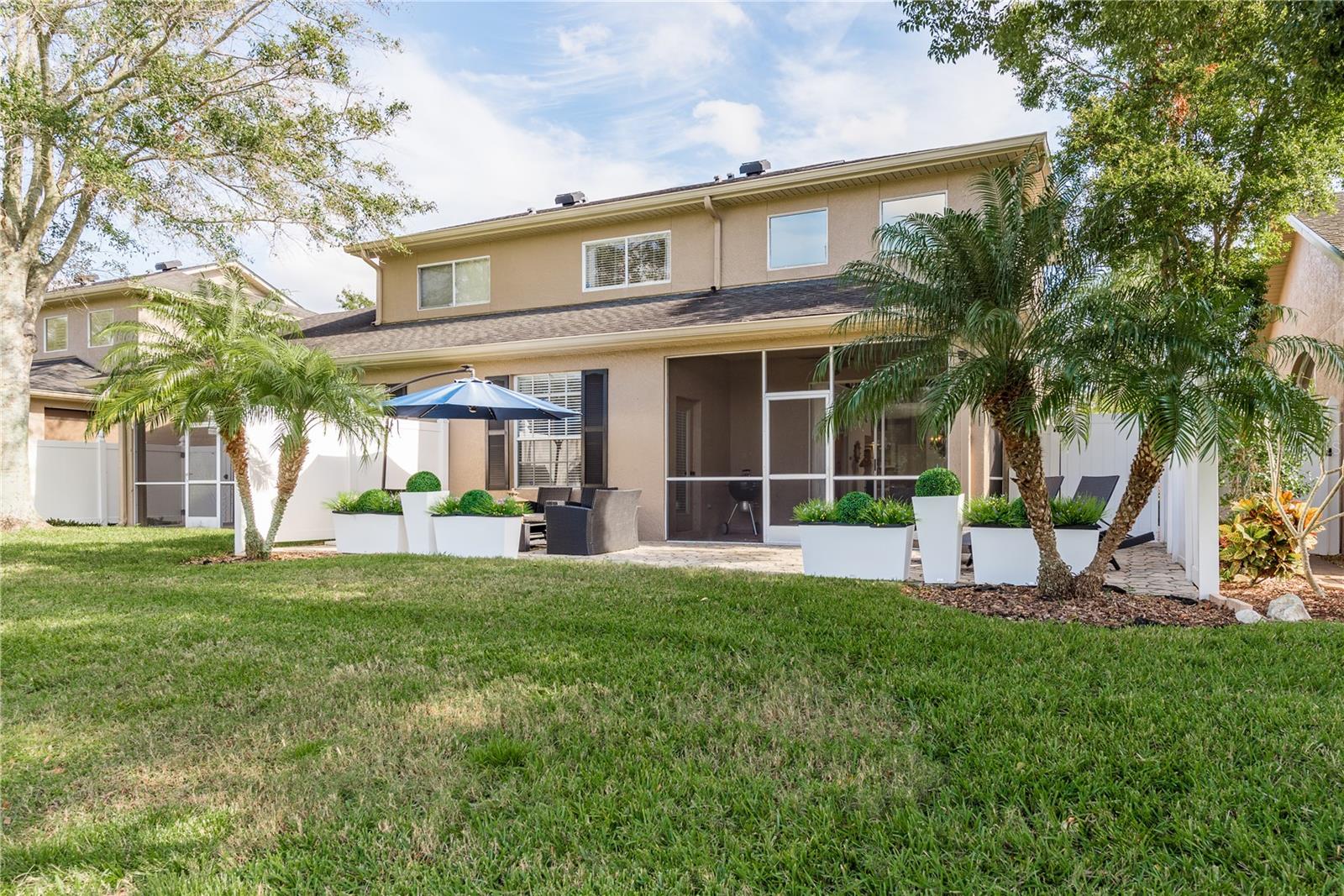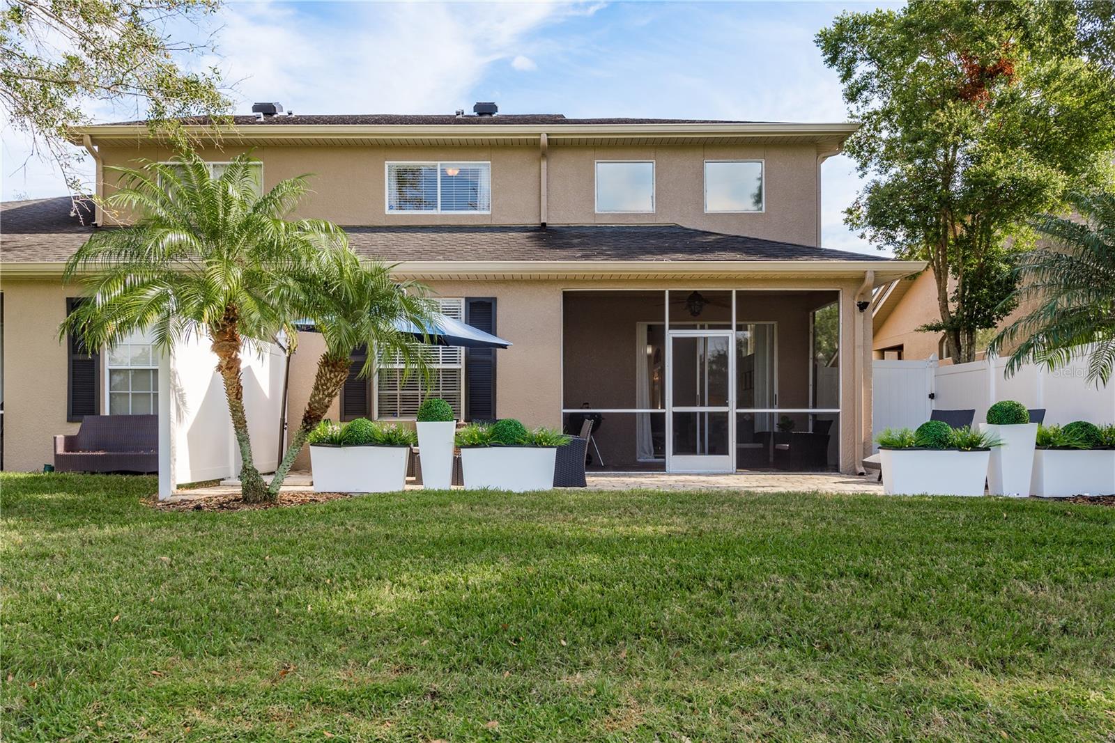 Welcome to GOLF COURSE LIVING at its FINEST! Fabulous 3 bedroom, 2.5 bathrooms, 2 car garage townhome located in the highly sought after community of Fairview in Trinity and close to the Pinellas Trail. This home has been meticulously maintained with UPGRADES added throughout the home and gorgeous VIEWS of the pond and golf course. As you enter you will appreciate the soaring high ceilings boasting ample amounts of natural light in through the home. Fresh neutral paint and engineered hardwood flooring throughout the home. You will love the open concept living area which seamlessly connects the kitchen and dining room making it perfect for entertaining. The kitchen includes granite counters, freshly tiled white back splash. The living room features a gas fireplace with granite and dry bar including a wine fridge. From the living room you have sliding glass doors that lead to a screened-in sunroom giving you additional space to relax. Step outside to your private backyard patio where you can enjoy stunning views overlooking the golf course and pond. This beautifully designed townhome features a spacious owner’s suite located on the main floor with a generous walk-in closet and an ensuite bathroom with a walk-in shower and double vanity. A stylish half bath and a well-equipped laundry room are also conveniently situated downstairs. Additionally, you’ll find a closet under the stairs for extra storage. Upstairs there are two additional bedrooms and a loft, perfect for guests or flex space, along with a full bathroom that offers a tub and shower combination. The community offers scenic walking trails, clubhouse with restaurant and a Fox Hollow Golf club membership can be purchased to enjoy the golf course. Located close to a variety of restaurants and shops and easy access to Tampa and the beautiful Gulf beaches, such as Clearwater and St. Petersburg.