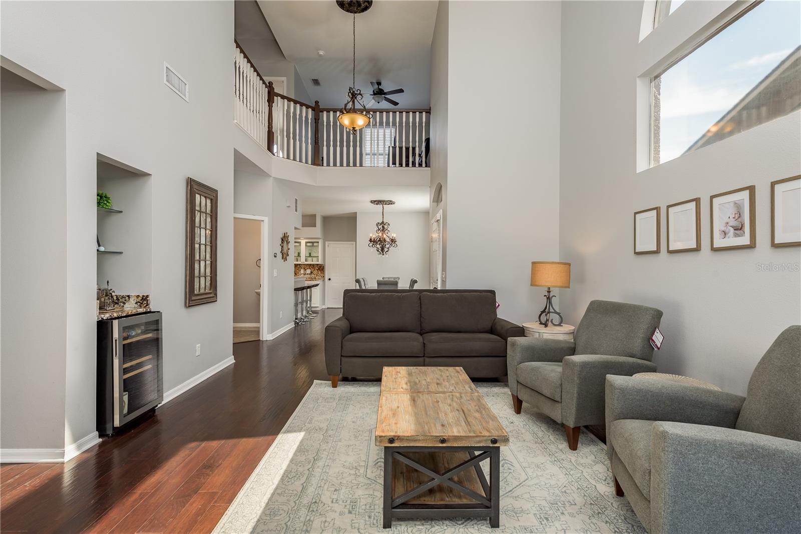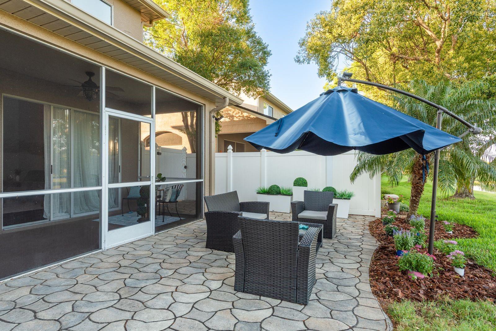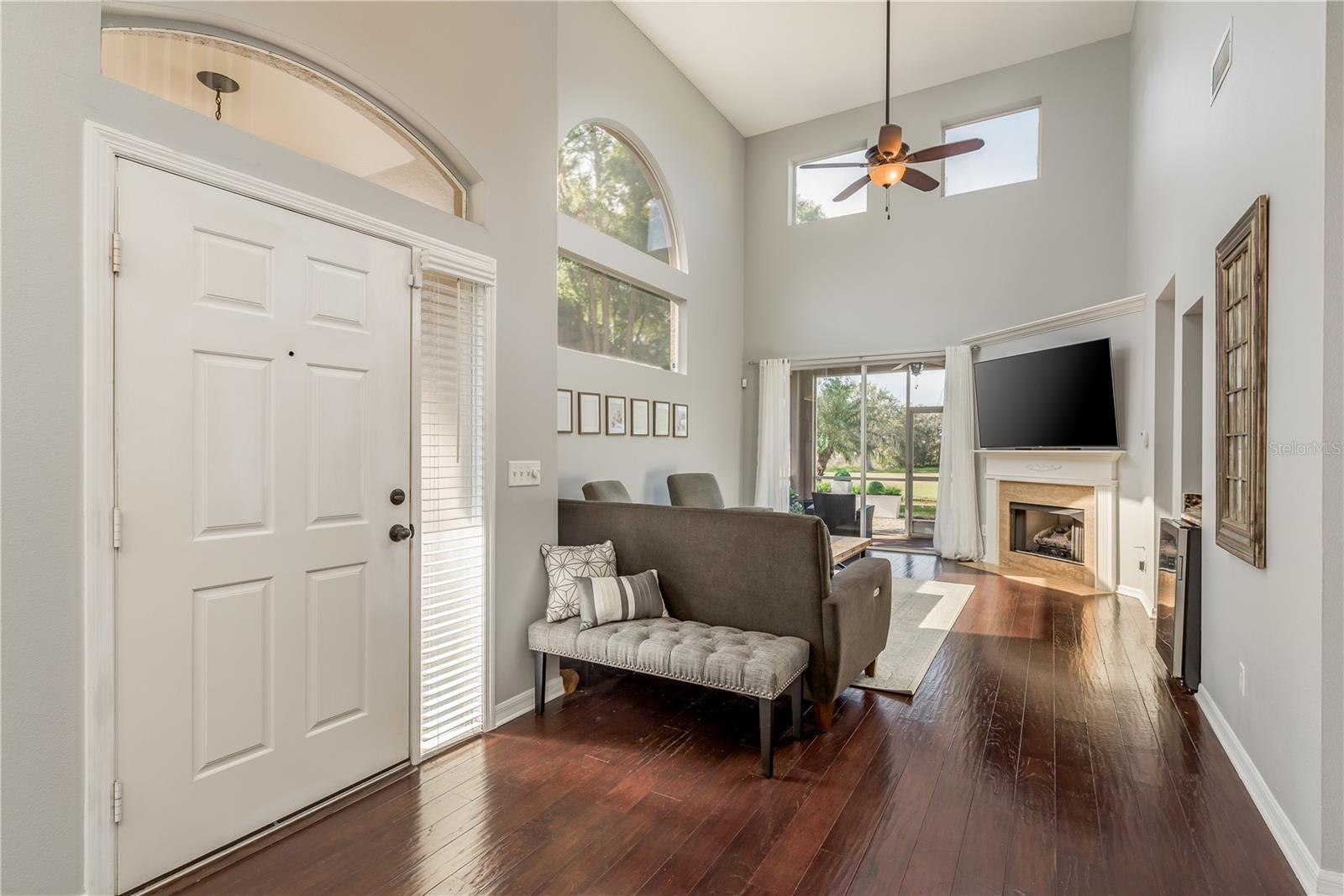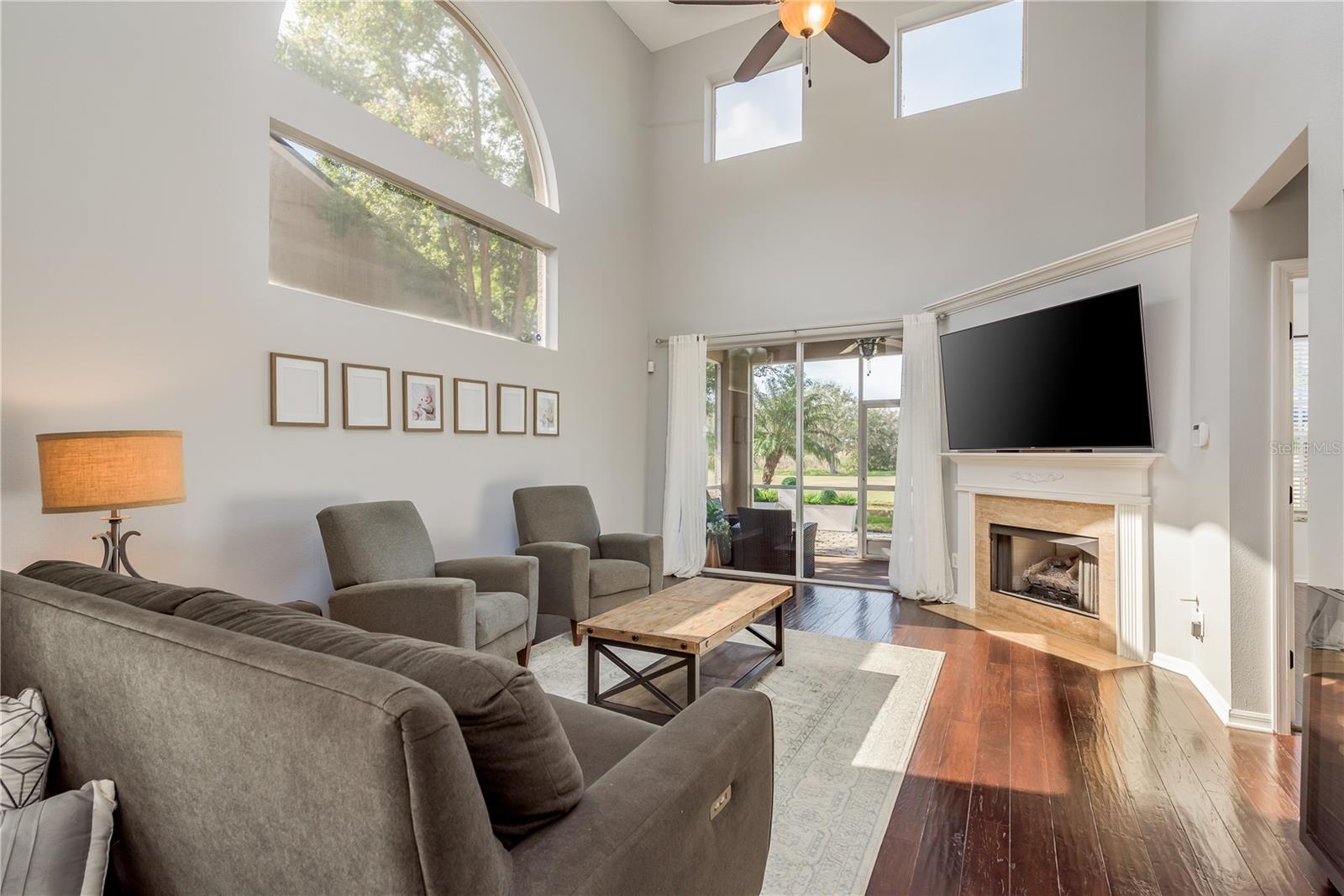 Welcome to GOLF COURSE LIVING at its FINEST! Fabulous 3 bedroom, 2.5 bathrooms, 2 car garage townhome located in the highly sought after community of Fairview in Trinity and close to the Pinellas Trail. This home has been meticulously maintained with UPGRADES added throughout the home and gorgeous VIEWS of the pond and golf course. As you enter you will appreciate the soaring high ceilings boasting ample amounts of natural light in through the home. Fresh neutral paint and engineered hardwood flooring throughout the home. You will love the open concept living area which seamlessly connects the kitchen and dining room making it perfect for entertaining. The kitchen includes granite counters, freshly tiled white back splash. The living room features a gas fireplace with granite and dry bar including a wine fridge. From the living room you have sliding glass doors that lead to a screened-in sunroom giving you additional space to relax. Step outside to your private backyard patio where you can enjoy stunning views overlooking the golf course and pond. This beautifully designed townhome features a spacious owner’s suite located on the main floor with a generous walk-in closet and an ensuite bathroom with a walk-in shower and double vanity. A stylish half bath and a well-equipped laundry room are also conveniently situated downstairs. Additionally, you’ll find a closet under the stairs for extra storage. Upstairs there are two additional bedrooms and a loft, perfect for guests or flex space, along with a full bathroom that offers a tub and shower combination. The community offers scenic walking trails, clubhouse with restaurant and a Fox Hollow Golf club membership can be purchased to enjoy the golf course. Located close to a variety of restaurants and shops and easy access to Tampa and the beautiful Gulf beaches, such as Clearwater and St. Petersburg.