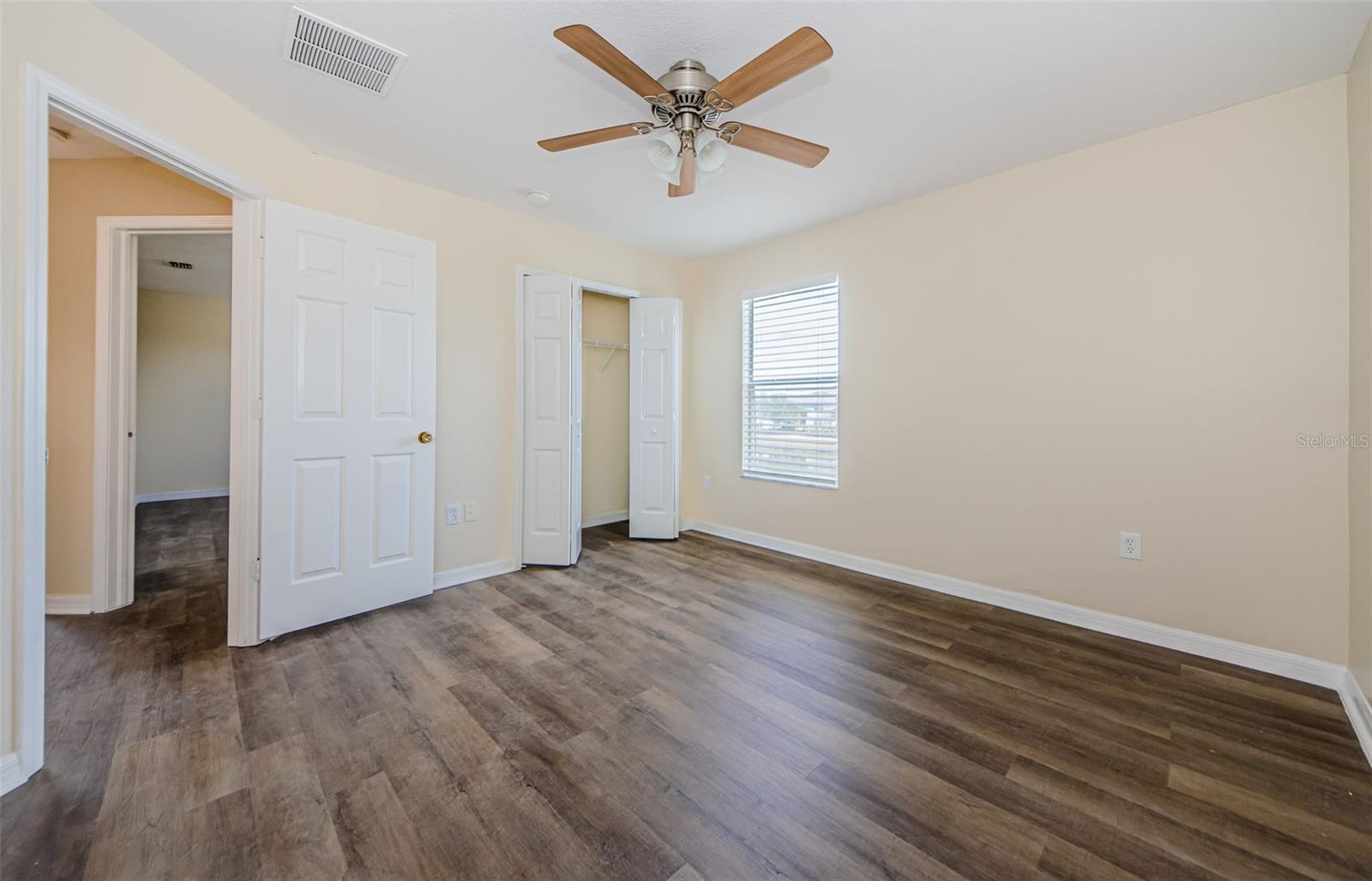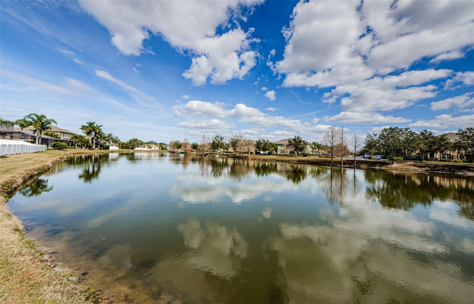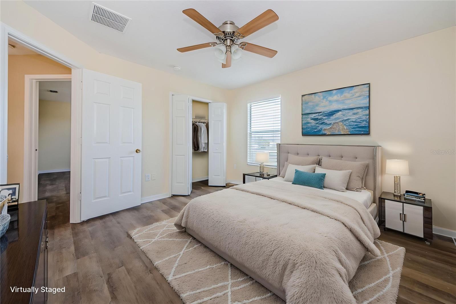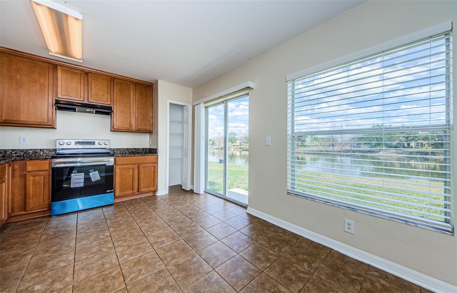 One or more photo(s) has been virtually staged. *Price Reduced* Beautiful, waterfront, updated large 5 bedroom, 2.5 bathroom home with a spacious loft located in the desirable Thousand Oaks East community in Trinity. Situated on a large pond lot you will have no rear neighbors while you are relaxing in your backyard. Brand new blinds on every window including the sliding glass doors that lead to the backyard. The brand new LVP (Luxury Vinyl Plank) flooring throughout the entire upstairs and wood-look ceramic tile downstairs flow seamlessly throughout this large 2187 SF home. Brand new roof as of 3/2024, new paint throughout the entire home and brand new kitchen appliances that have never been used! The eat-in kitchen has granite counter tops and a pass through window into the living/dining area. Lots of light throughout! Master bedroom has a huge walk in closet, view of the pond and an ensuite bathroom with shower/tub combo. Additional 4 generously sized bedrooms are upstairs along with an amazing loft that can have many uses. The upstairs bathroom is huge and has a shower/tub combo. There is also a well appointed half bath downstairs off of the family room. A large 2-car garage with wood shelves ensure you have plenty of storage space and a brick paver driveway with ample room for parking. This home is located in a prime location close to schools, shopping and dining options. No damage or leaking from either recent hurricanes and home is not in a flood zone. This house is a must see!