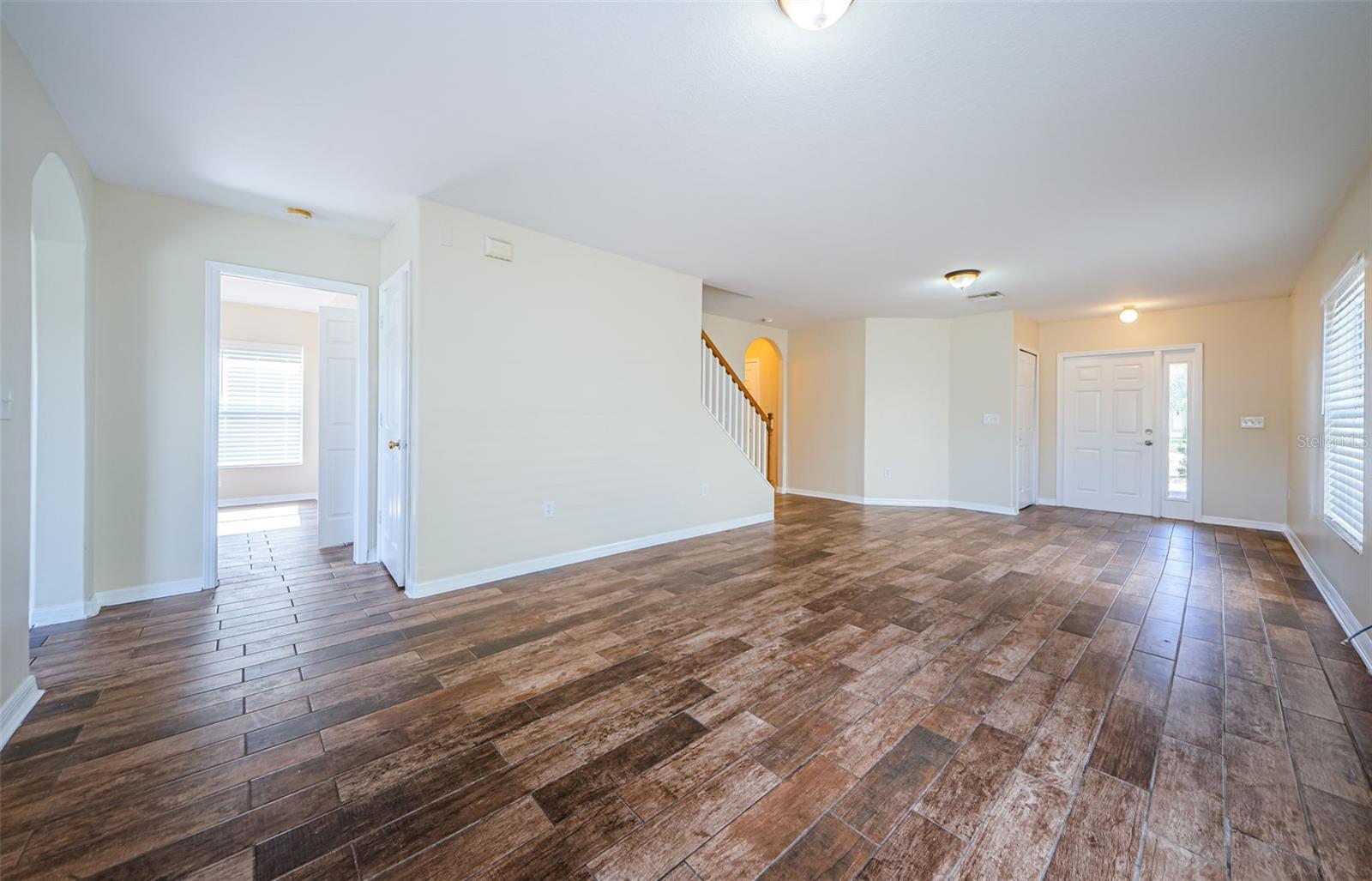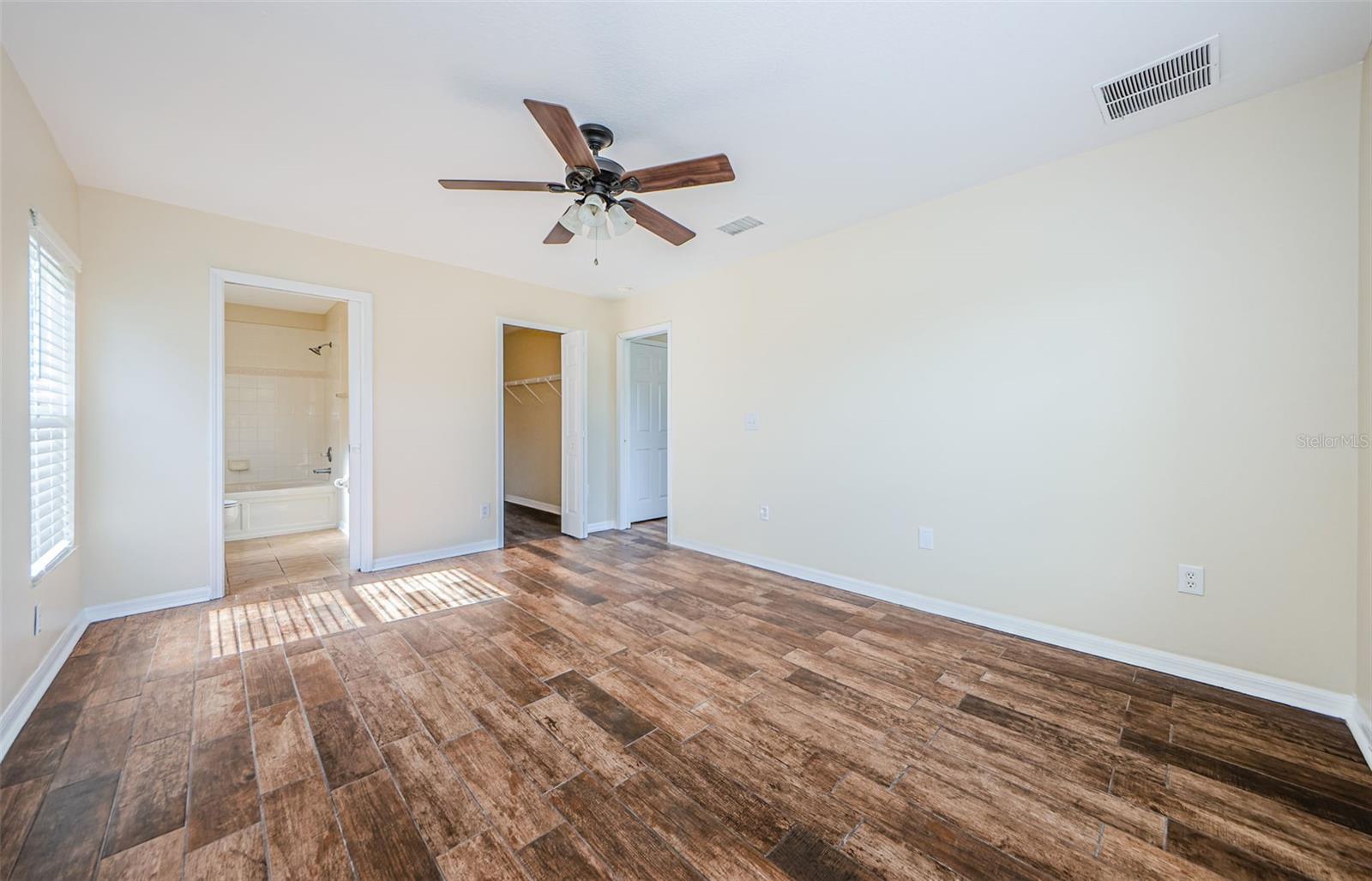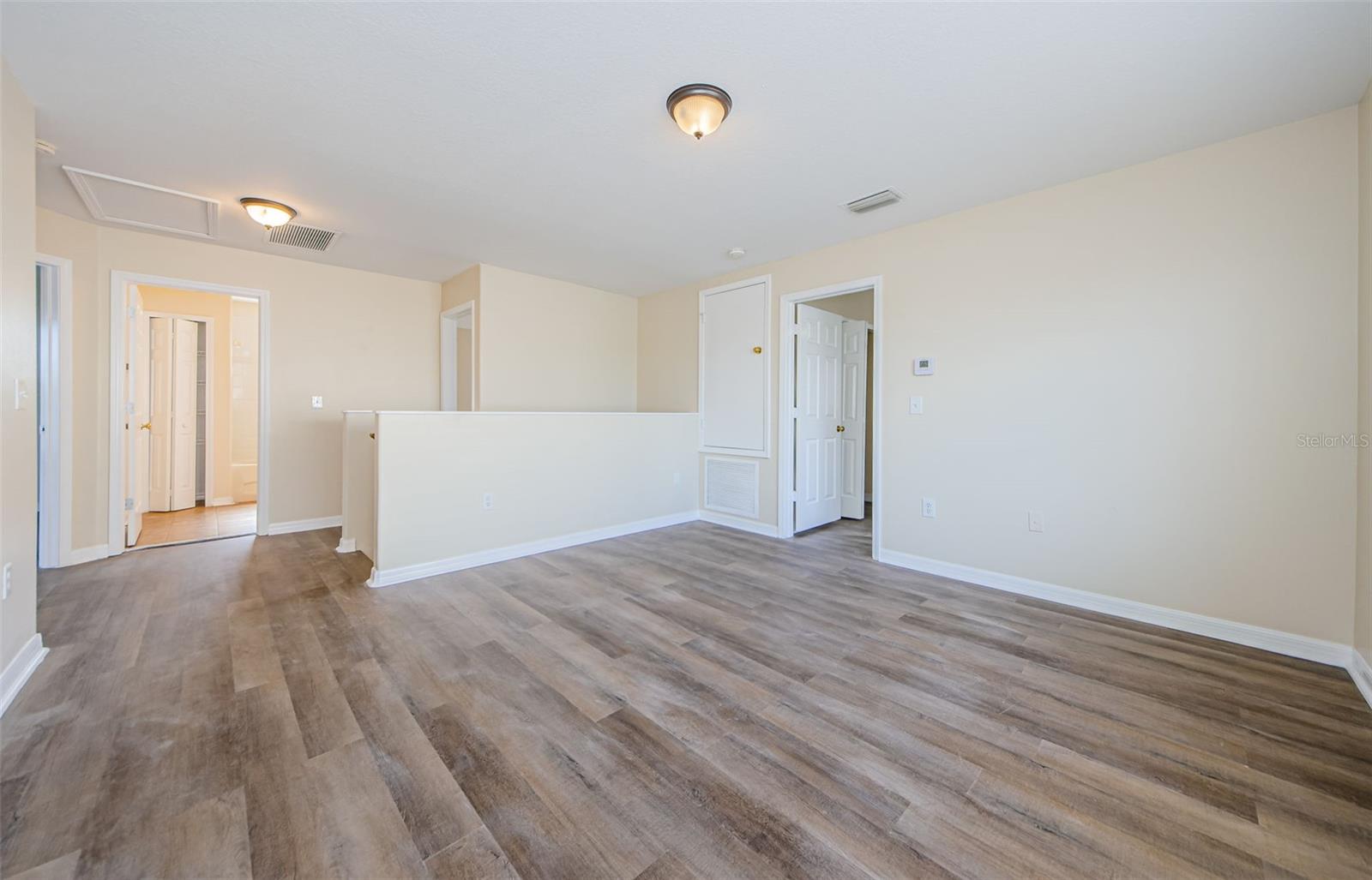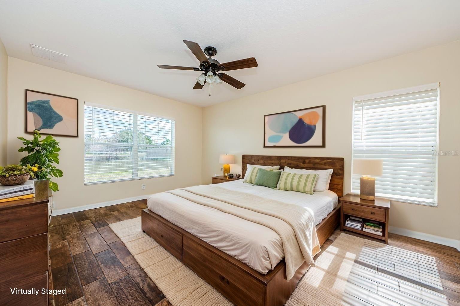One or more photo(s) has been virtually staged. *Price Reduced* Beautiful, waterfront, updated large 5 bedroom, 2.5 bathroom home with a spacious loft located in the desirable Thousand Oaks East community in Trinity. Situated on a large pond lot you will have no rear neighbors while you are relaxing in your backyard. Brand new blinds on every window including the sliding glass doors that lead to the backyard. The brand new LVP (Luxury Vinyl Plank) flooring throughout the entire upstairs and wood-look ceramic tile downstairs flow seamlessly throughout this large 2187 SF home. Brand new roof as of 3/2024, new paint throughout the entire home and brand new kitchen appliances that have never been used! The eat-in kitchen has granite counter tops and a pass through window into the living/dining area. Lots of light throughout! Master bedroom has a huge walk in closet, view of the pond and an ensuite bathroom with shower/tub combo. Additional 4 generously sized bedrooms are upstairs along with an amazing loft that can have many uses. The upstairs bathroom is huge and has a shower/tub combo. There is also a well appointed half bath downstairs off of the family room. A large 2-car garage with wood shelves ensure you have plenty of storage space and a brick paver driveway with ample room for parking. This home is located in a prime location close to schools, shopping and dining options. No damage or leaking from either recent hurricanes and home is not in a flood zone. This house is a must see!