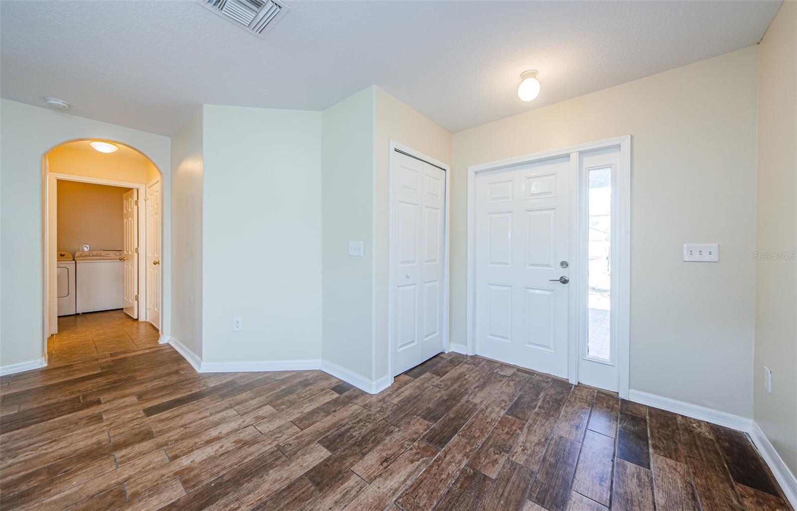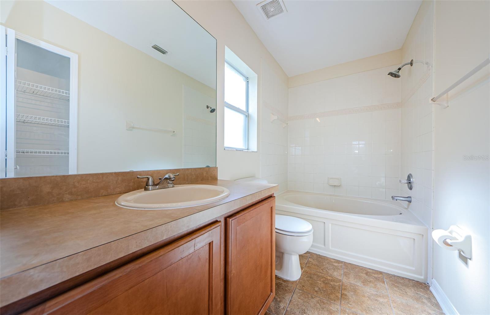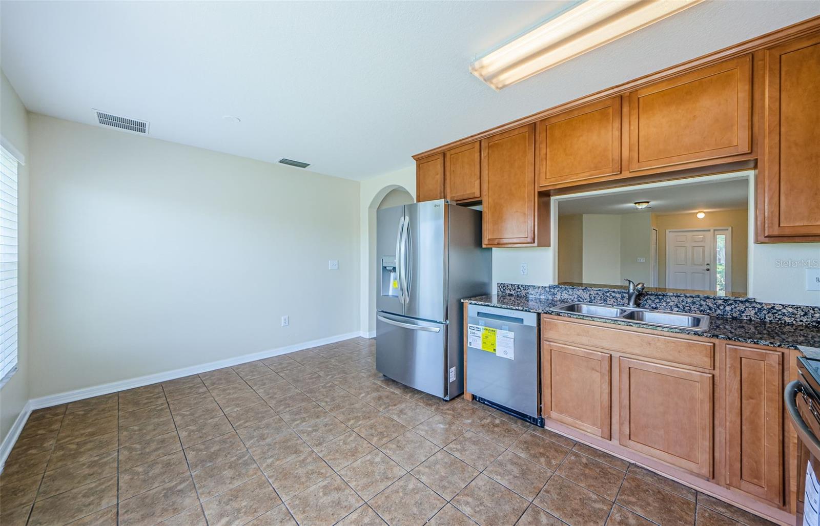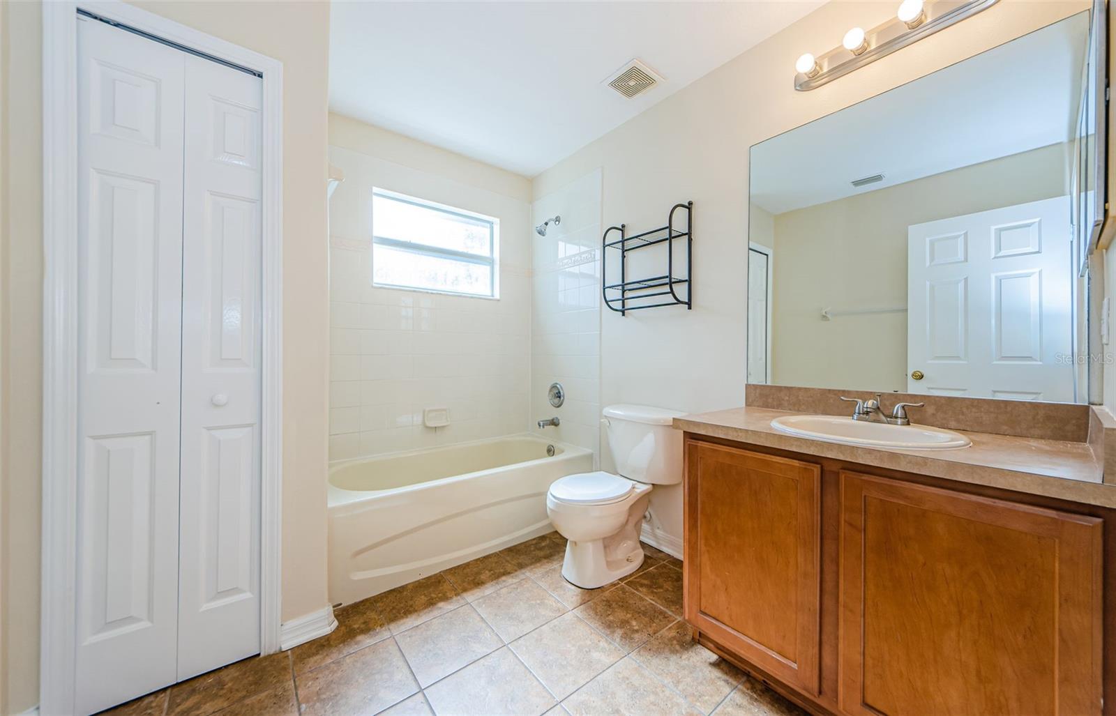 One or more photo(s) has been virtually staged. *Price Reduced* Beautiful, waterfront, updated large 5 bedroom, 2.5 bathroom home with a spacious loft located in the desirable Thousand Oaks East community in Trinity. Situated on a large pond lot you will have no rear neighbors while you are relaxing in your backyard. Brand new blinds on every window including the sliding glass doors that lead to the backyard. The brand new LVP (Luxury Vinyl Plank) flooring throughout the entire upstairs and wood-look ceramic tile downstairs flow seamlessly throughout this large 2187 SF home. Brand new roof as of 3/2024, new paint throughout the entire home and brand new kitchen appliances that have never been used! The eat-in kitchen has granite counter tops and a pass through window into the living/dining area. Lots of light throughout! Master bedroom has a huge walk in closet, view of the pond and an ensuite bathroom with shower/tub combo. Additional 4 generously sized bedrooms are upstairs along with an amazing loft that can have many uses. The upstairs bathroom is huge and has a shower/tub combo. There is also a well appointed half bath downstairs off of the family room. A large 2-car garage with wood shelves ensure you have plenty of storage space and a brick paver driveway with ample room for parking. This home is located in a prime location close to schools, shopping and dining options. No damage or leaking from either recent hurricanes and home is not in a flood zone. This house is a must see!