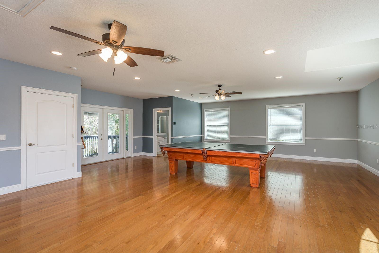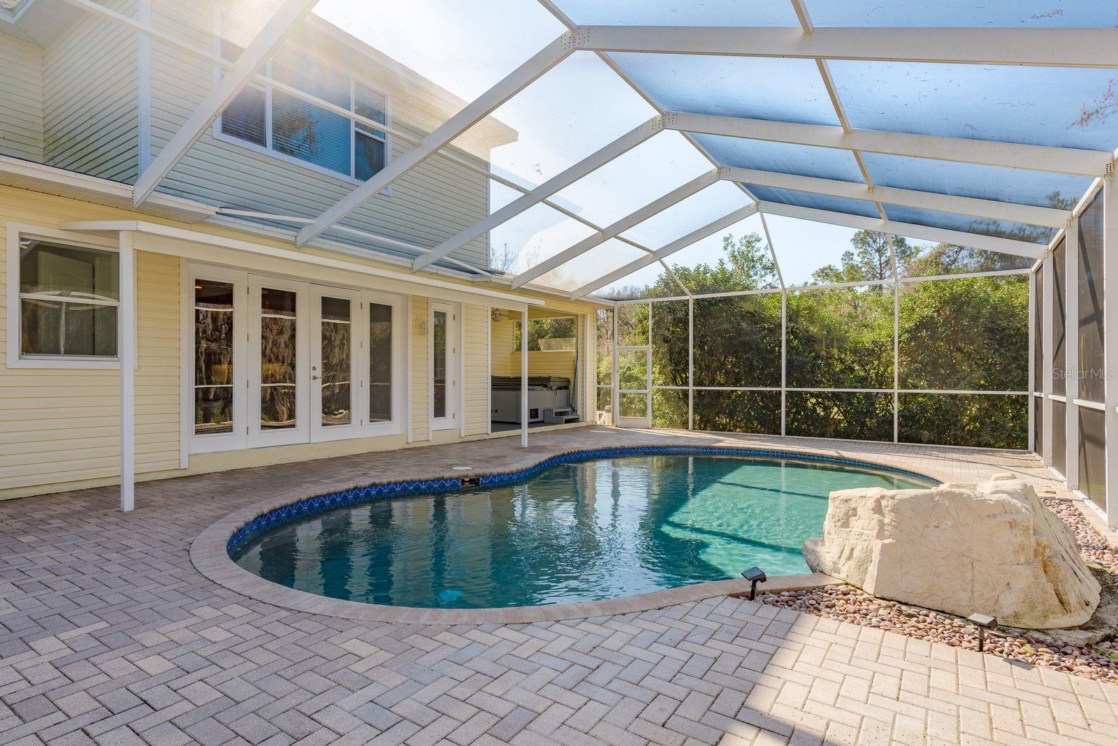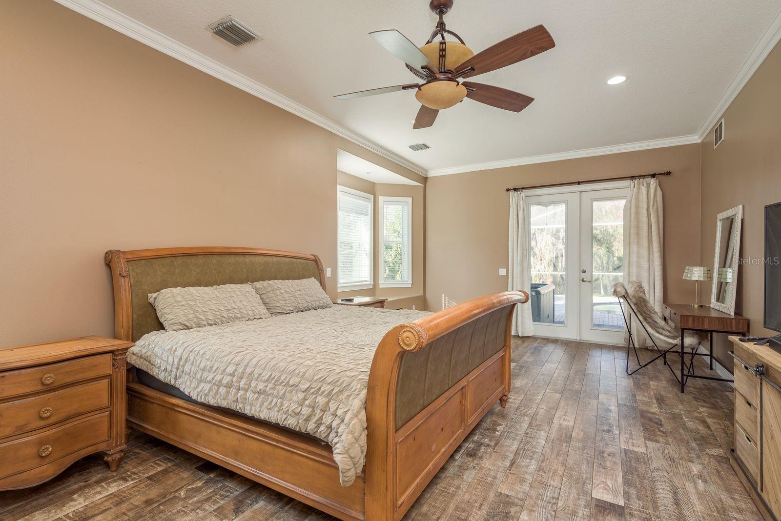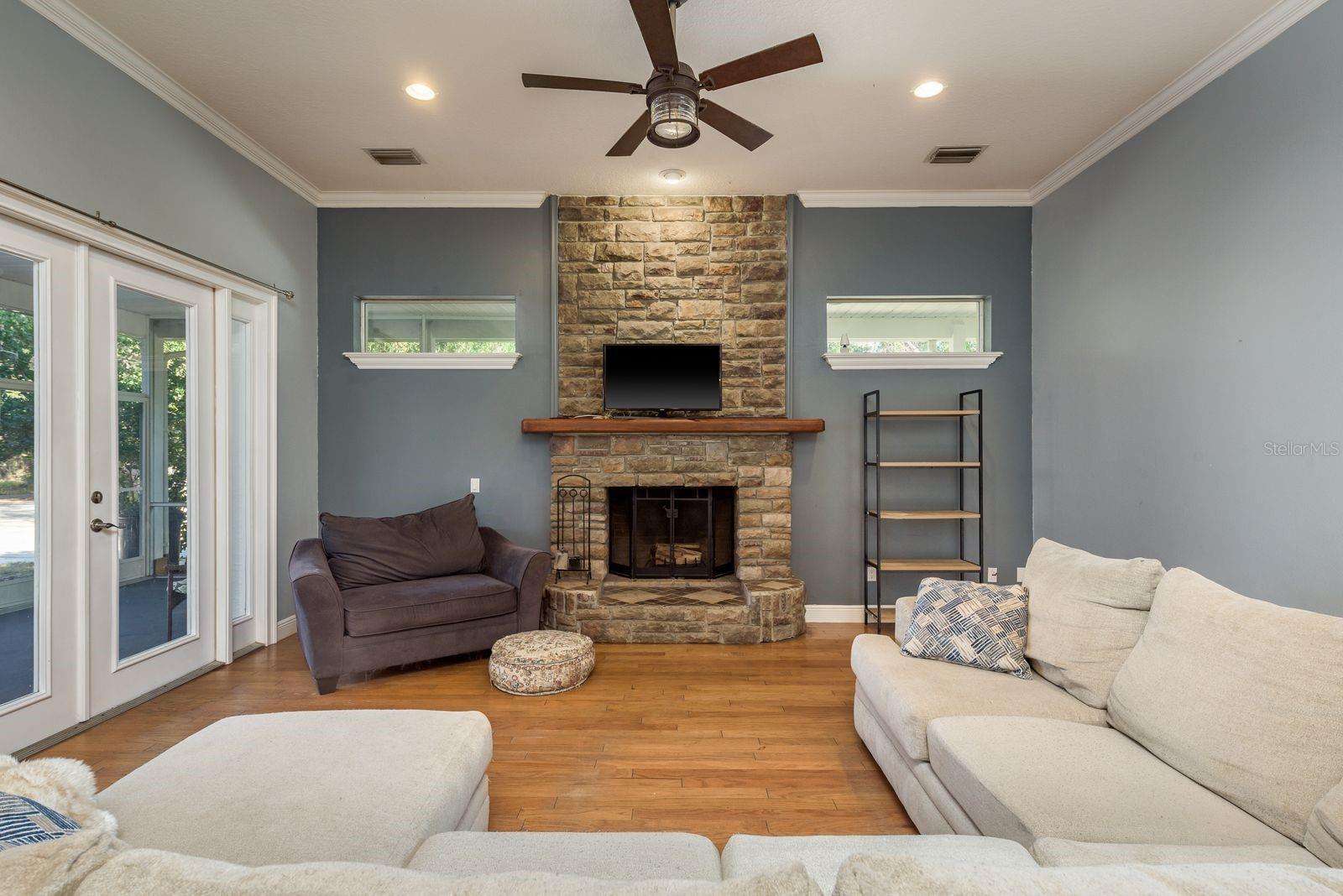 Welcome to Oak Ridge, where this remarkable estate sits on 1.69 acres in the much sought after Trinity area. Offering the perfect blend of peaceful country charm and modern convenience, the property provides room to spread out while still being just minutes from top-rated schools, shopping, dining, golf courses, medical centers, and Gulf beaches. Originally crafted as the private residence of a master builder, the home showcases exceptional quality and attention to detail throughout. With 5 bedrooms, 5 full bathrooms, and 2 half baths, it strikes an ideal balance of elegance and comfort. A long driveway and welcoming wraparound porch create a grand first impression. Just beyond the main residence, a detached 4-car garage includes a spacious studio apartment above, complete with kitchenette and bathroom—perfect for extended family, guests, a private office, game room, or rental opportunity. Inside, freshly stained double entry doors open to a soaring two-story foyer. Hardwood floors carry throughout the main living spaces, where a stone wood-burning fireplace creates a striking centerpiece in the family room. The open-concept layout flows seamlessly into the chef’s kitchen, featuring custom cabinetry with decorative glass accents, a large island, walk-in pantry, and a butler’s pantry that leads to the formal dining room. A casual dining area with French doors offers views of the pool and backyard. The main level also features a luxurious primary suite with French doors opening directly to the pool and hot tub, dual oversized walk-in closets, and a spa-like en-suite bath. An additional bedroom (ideal as an office) and a half bath complete the first floor. Upstairs, another large primary suite includes its own private bath. Two more bedrooms, one with an en-suite, plus a spacious gym (easily converted to another bedroom), private office space, and a loft with laundry chute offer flexibility. A second staircase provides convenient access back to the kitchen. Outdoor living is a highlight, featuring an expansive paver deck, resort-style pool with waterfall, and spa, all surrounded by mature trees and abundant wildlife. A custom-built treehouse, crafted with the same quality as the main home, creates a special retreat for children. At the back of the property, a freshwater creek offers bass fishing and peaceful scenery. With plenty of space for boats, RVs, and recreational toys, this estate combines luxury, leisure, and convenience. Recent improvements ensure peace of mind, including a brand-new roof (2023), newer A/C units (installed within the last three years), a 30kW Generac generator with a 500-gallon underground tank, a water treatment system, plus complete electrical and septic inspections in 2024. Don’t miss the opportunity to experience this extraordinary property—schedule your private showing today!