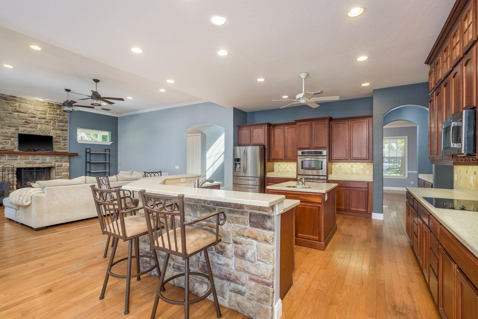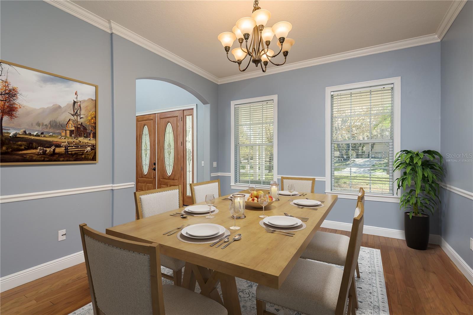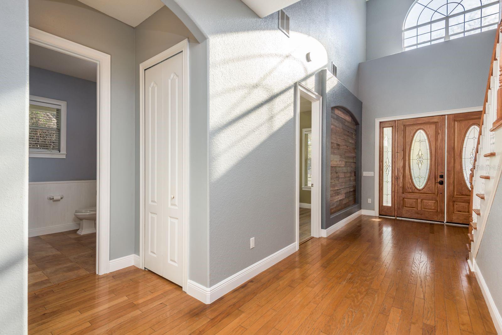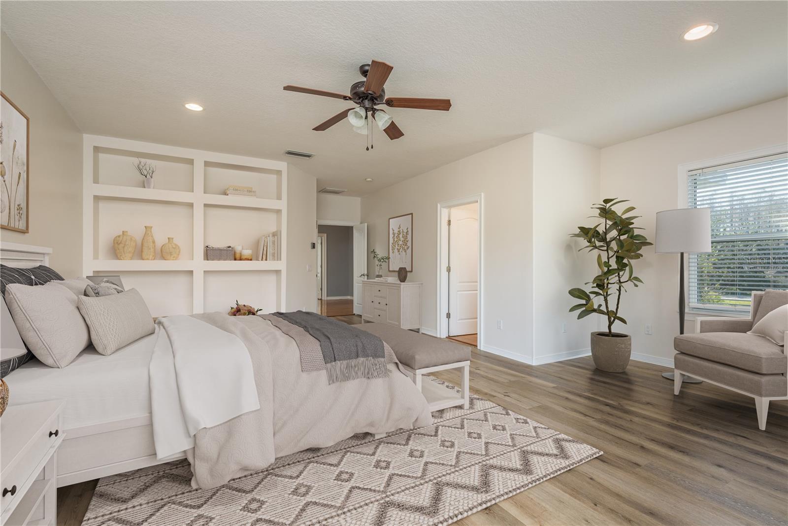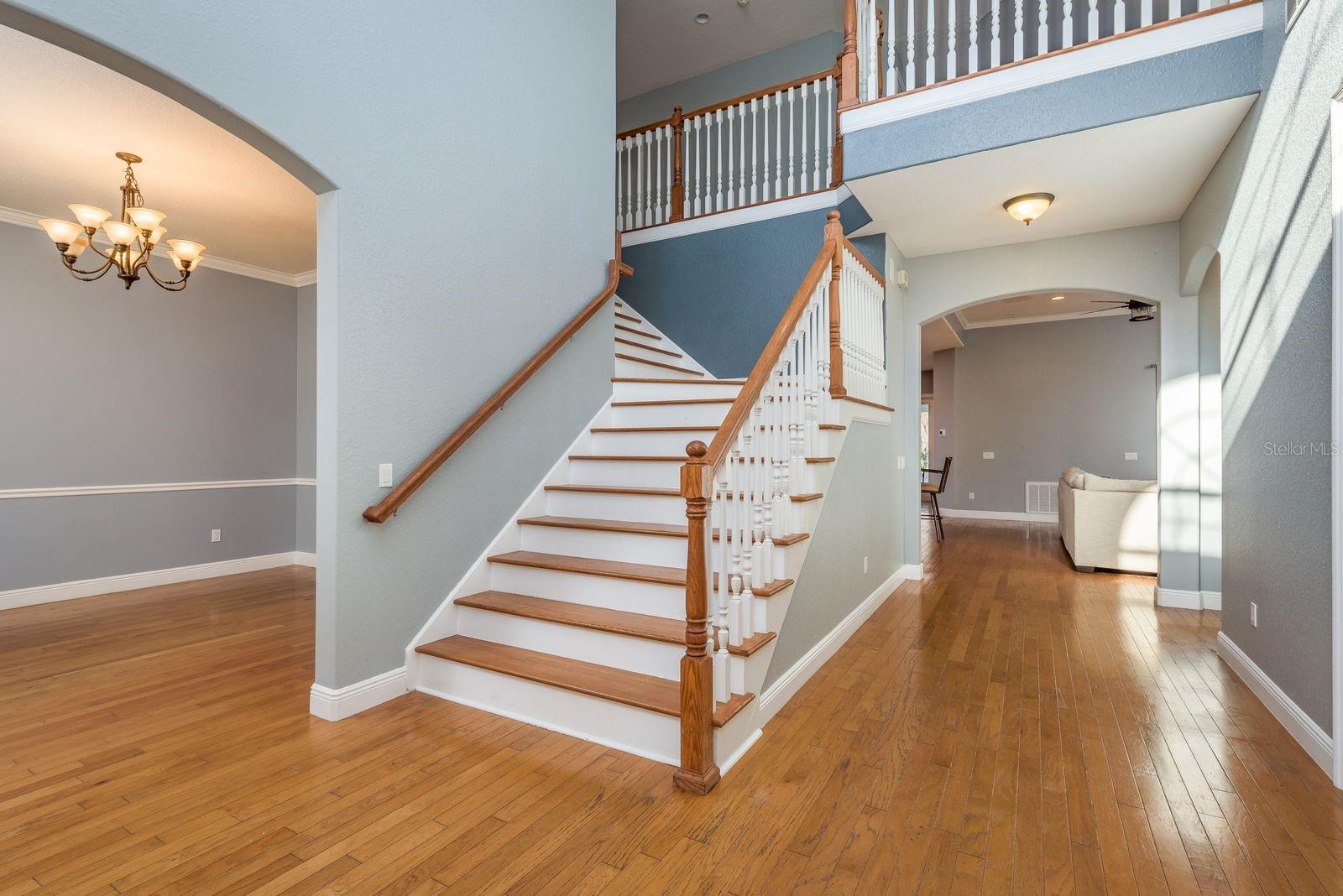 Welcome to Oak Ridge, where this remarkable estate sits on 1.69 acres in the much sought after Trinity area. Offering the perfect blend of peaceful country charm and modern convenience, the property provides room to spread out while still being just minutes from top-rated schools, shopping, dining, golf courses, medical centers, and Gulf beaches. Originally crafted as the private residence of a master builder, the home showcases exceptional quality and attention to detail throughout. With 5 bedrooms, 5 full bathrooms, and 2 half baths, it strikes an ideal balance of elegance and comfort. A long driveway and welcoming wraparound porch create a grand first impression. Just beyond the main residence, a detached 4-car garage includes a spacious studio apartment above, complete with kitchenette and bathroom—perfect for extended family, guests, a private office, game room, or rental opportunity. Inside, freshly stained double entry doors open to a soaring two-story foyer. Hardwood floors carry throughout the main living spaces, where a stone wood-burning fireplace creates a striking centerpiece in the family room. The open-concept layout flows seamlessly into the chef’s kitchen, featuring custom cabinetry with decorative glass accents, a large island, walk-in pantry, and a butler’s pantry that leads to the formal dining room. A casual dining area with French doors offers views of the pool and backyard. The main level also features a luxurious primary suite with French doors opening directly to the pool and hot tub, dual oversized walk-in closets, and a spa-like en-suite bath. An additional bedroom (ideal as an office) and a half bath complete the first floor. Upstairs, another large primary suite includes its own private bath. Two more bedrooms, one with an en-suite, plus a spacious gym (easily converted to another bedroom), private office space, and a loft with laundry chute offer flexibility. A second staircase provides convenient access back to the kitchen. Outdoor living is a highlight, featuring an expansive paver deck, resort-style pool with waterfall, and spa, all surrounded by mature trees and abundant wildlife. A custom-built treehouse, crafted with the same quality as the main home, creates a special retreat for children. At the back of the property, a freshwater creek offers bass fishing and peaceful scenery. With plenty of space for boats, RVs, and recreational toys, this estate combines luxury, leisure, and convenience. Recent improvements ensure peace of mind, including a brand-new roof (2023), newer A/C units (installed within the last three years), a 30kW Generac generator with a 500-gallon underground tank, a water treatment system, plus complete electrical and septic inspections in 2024. Don’t miss the opportunity to experience this extraordinary property—schedule your private showing today!