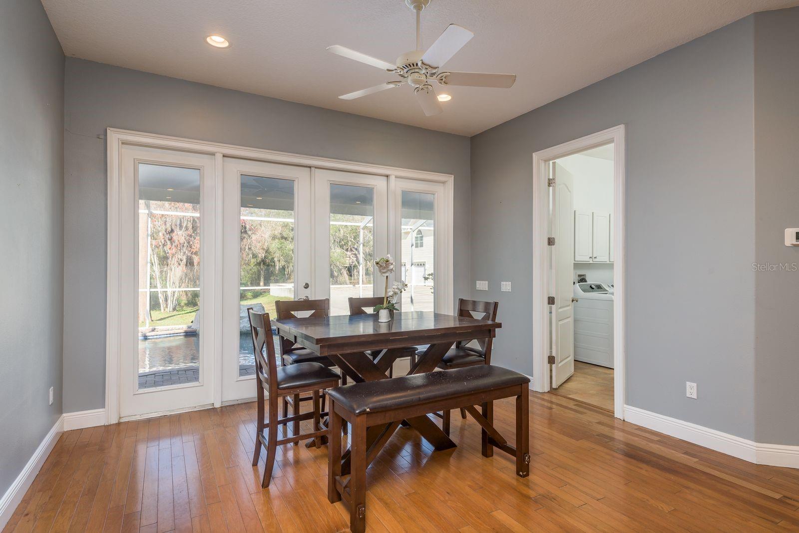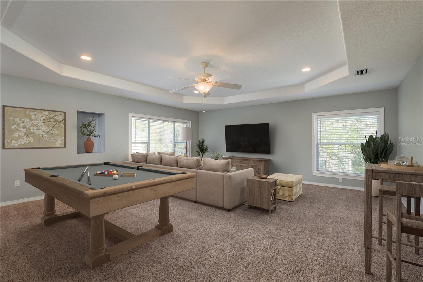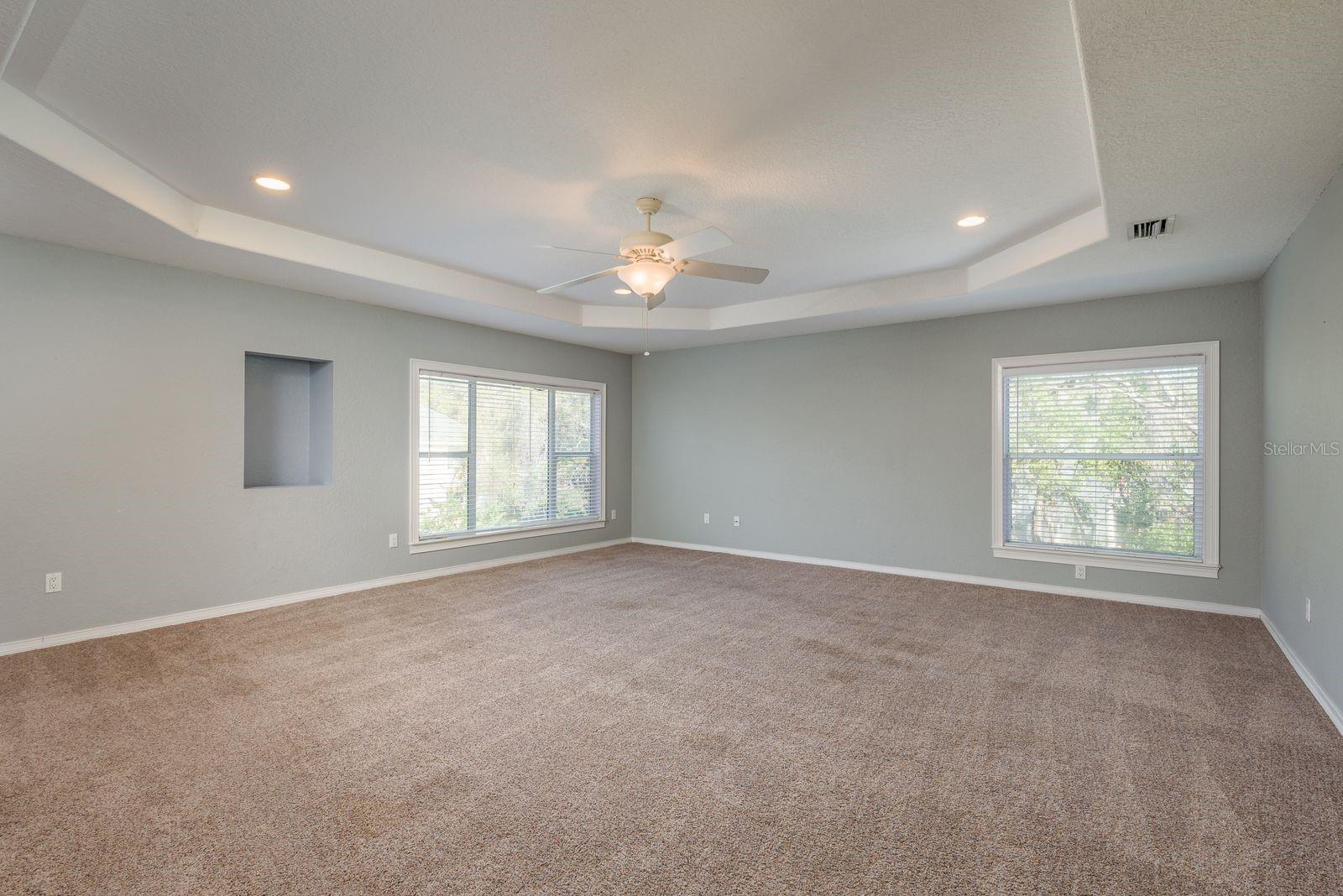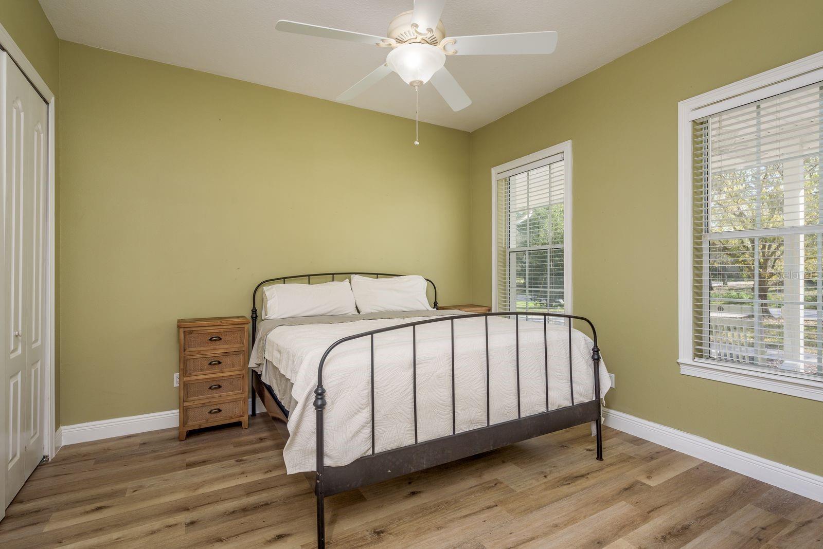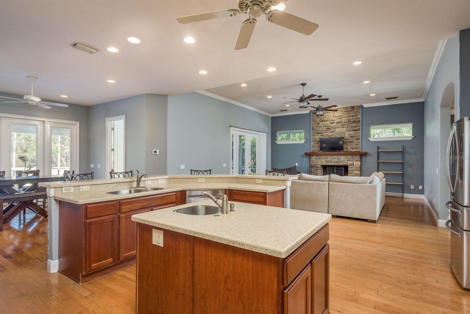 Welcome to Oak Ridge, where this remarkable estate sits on 1.69 acres in the much sought after Trinity area. Offering the perfect blend of peaceful country charm and modern convenience, the property provides room to spread out while still being just minutes from top-rated schools, shopping, dining, golf courses, medical centers, and Gulf beaches. Originally crafted as the private residence of a master builder, the home showcases exceptional quality and attention to detail throughout. With 5 bedrooms, 5 full bathrooms, and 2 half baths, it strikes an ideal balance of elegance and comfort. A long driveway and welcoming wraparound porch create a grand first impression. Just beyond the main residence, a detached 4-car garage includes a spacious studio apartment above, complete with kitchenette and bathroom—perfect for extended family, guests, a private office, game room, or rental opportunity. Inside, freshly stained double entry doors open to a soaring two-story foyer. Hardwood floors carry throughout the main living spaces, where a stone wood-burning fireplace creates a striking centerpiece in the family room. The open-concept layout flows seamlessly into the chef’s kitchen, featuring custom cabinetry with decorative glass accents, a large island, walk-in pantry, and a butler’s pantry that leads to the formal dining room. A casual dining area with French doors offers views of the pool and backyard. The main level also features a luxurious primary suite with French doors opening directly to the pool and hot tub, dual oversized walk-in closets, and a spa-like en-suite bath. An additional bedroom (ideal as an office) and a half bath complete the first floor. Upstairs, another large primary suite includes its own private bath. Two more bedrooms, one with an en-suite, plus a spacious gym (easily converted to another bedroom), private office space, and a loft with laundry chute offer flexibility. A second staircase provides convenient access back to the kitchen. Outdoor living is a highlight, featuring an expansive paver deck, resort-style pool with waterfall, and spa, all surrounded by mature trees and abundant wildlife. A custom-built treehouse, crafted with the same quality as the main home, creates a special retreat for children. At the back of the property, a freshwater creek offers bass fishing and peaceful scenery. With plenty of space for boats, RVs, and recreational toys, this estate combines luxury, leisure, and convenience. Recent improvements ensure peace of mind, including a brand-new roof (2023), newer A/C units (installed within the last three years), a 30kW Generac generator with a 500-gallon underground tank, a water treatment system, plus complete electrical and septic inspections in 2024. Don’t miss the opportunity to experience this extraordinary property—schedule your private showing today!