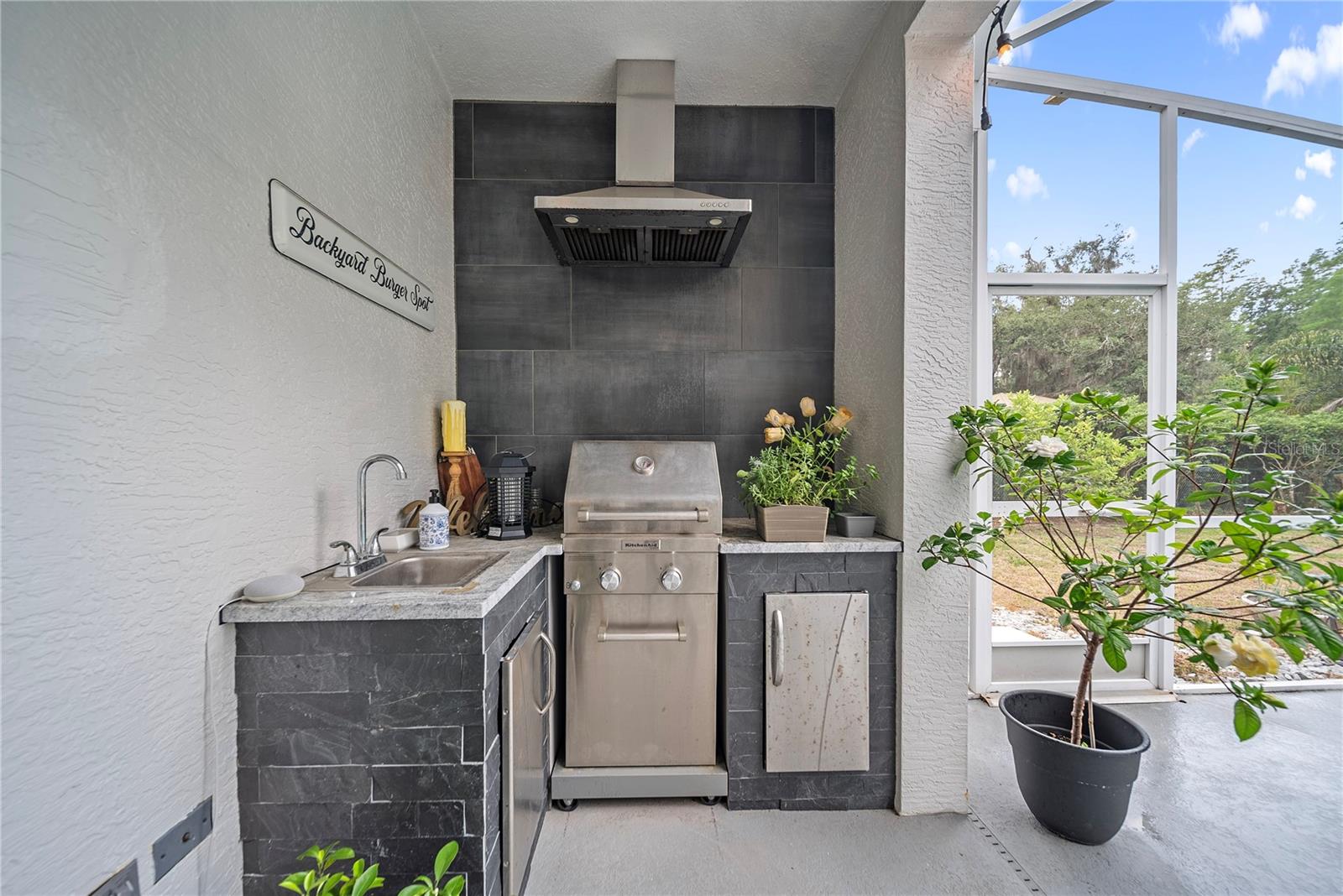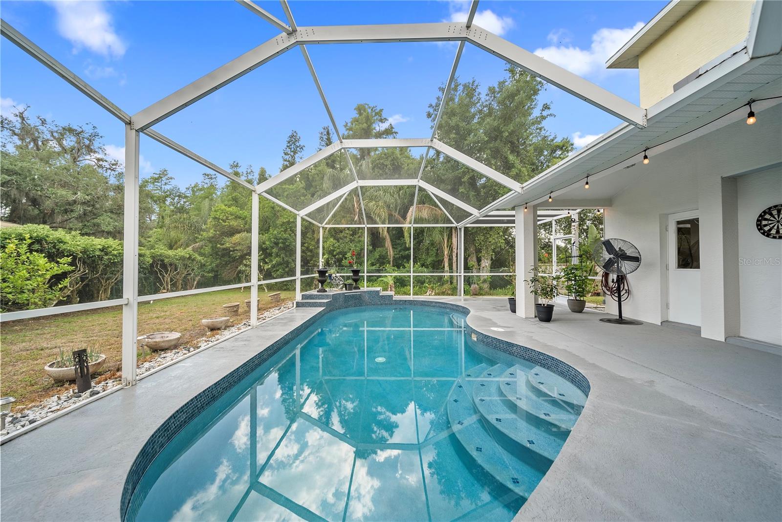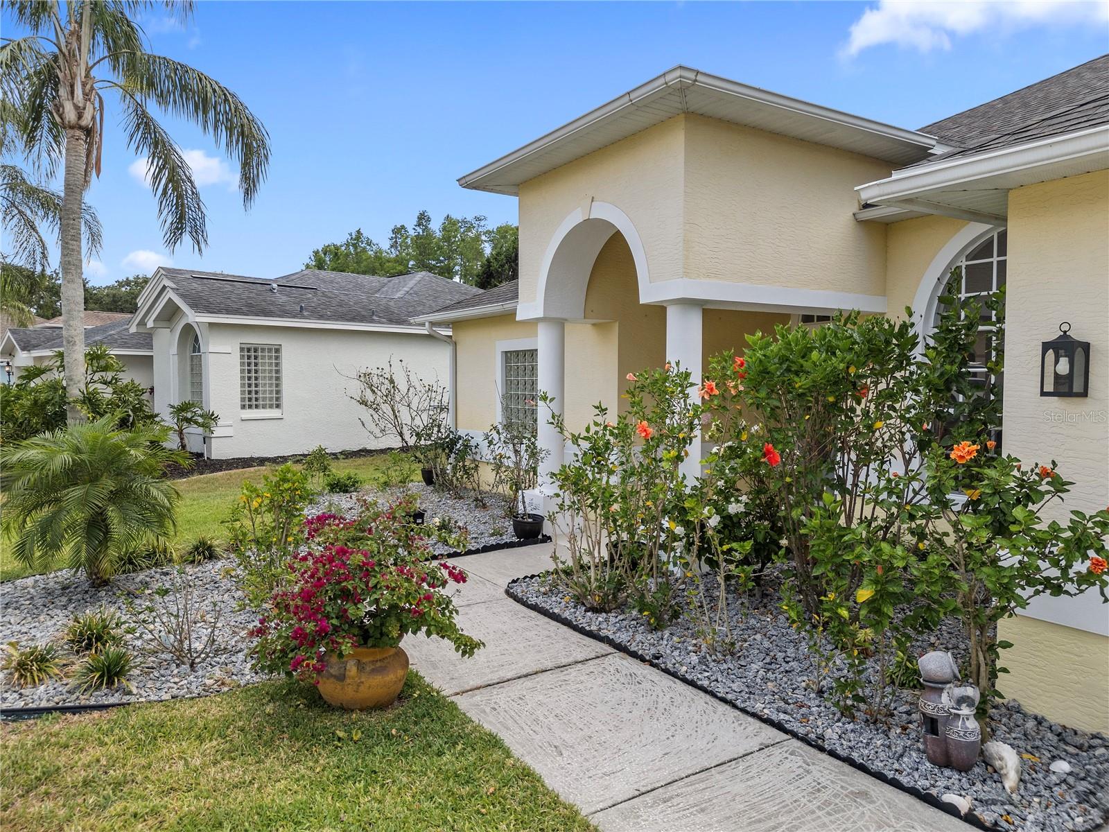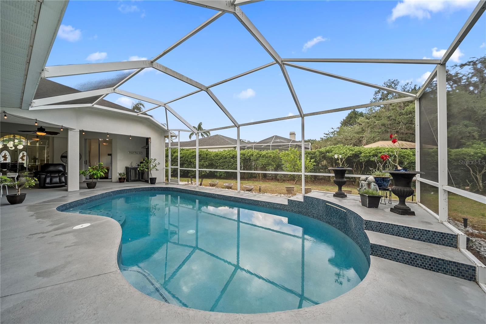 Discover this beautifully maintained 4-bedroom, 3-bath residence with a flexible den and expansive upstairs bonus room, nestled in the gated community of The Villages at Fox Hollow West (Bellerive)—where pride of ownership is evident at every turn. As you enter, you’re welcomed by a warm and stylish foyer. To the left, the private owner’s suite offers a peaceful escape, featuring a luxurious bathroom with a soaking tub, separate walk-in shower, dual vanities, and two oversized walk-in closets. To the right of the foyer is a versatile den—ideal for a home office, playroom, or cozy reading nook. Designed with entertaining in mind, the home’s open-concept layout seamlessly connects the living room to a gourmet kitchen. This impressive space boasts rich wood cabinetry, stunning upgraded granite countertops, stainless steel appliances, a striking backsplash, large central island, and abundant storage. The spacious living area offers plenty of room for gathering with friends and family, while the thoughtful split-bedroom layout ensures privacy for all. Down one hallway are two well-sized bedrooms and an updated full bath; down another, a guest bedroom and full bath that also serves the outdoor living space. Upstairs, a sizable bonus room provides endless possibilities—media room, game room, or additional guest space. Step outside to your private backyard oasis! Two sets of triple sliding glass pocket doors bring the outdoors in, leading to a covered lanai complete with a built-in outdoor kitchen and grill. Relax beside the sparkling pool with waterfall feature or gather around the fire pit in the beautifully landscaped, fully fenced yard—offering total seclusion with no rear neighbors. Additional highlights include updated custom lighting, roof (2018), A/C (2016), hot water heater (2015), and pool pump (2018). Located in an excellent school zone, just minutes from shopping, dining, and beaches. Low HOA fees and no CDD! This home combines upscale features with everyday comfort—schedule your private tour today!