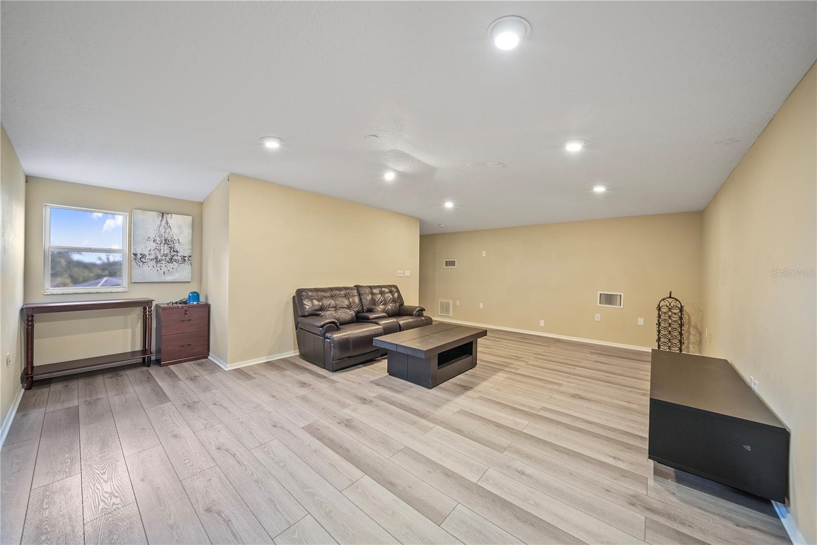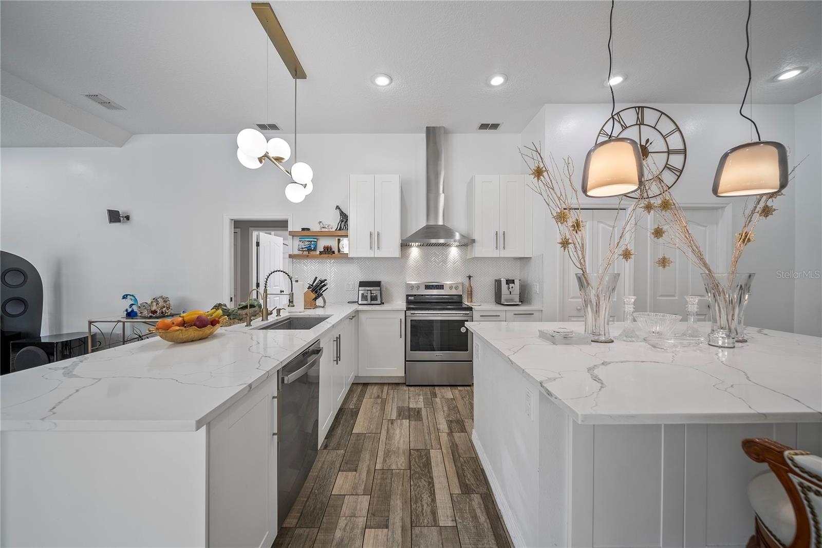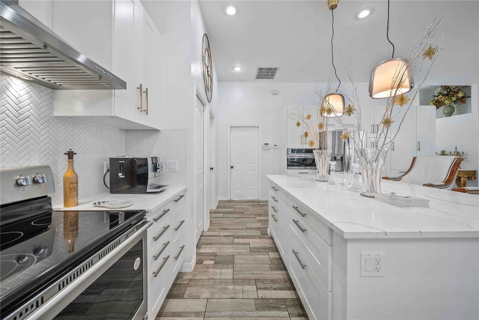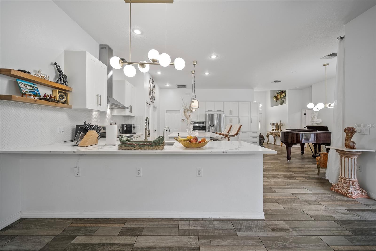 Discover this beautifully maintained 4-bedroom, 3-bath residence with a flexible den and expansive upstairs bonus room, nestled in the gated community of The Villages at Fox Hollow West (Bellerive)—where pride of ownership is evident at every turn. As you enter, you’re welcomed by a warm and stylish foyer. To the left, the private owner’s suite offers a peaceful escape, featuring a luxurious bathroom with a soaking tub, separate walk-in shower, dual vanities, and two oversized walk-in closets. To the right of the foyer is a versatile den—ideal for a home office, playroom, or cozy reading nook. Designed with entertaining in mind, the home’s open-concept layout seamlessly connects the living room to a gourmet kitchen. This impressive space boasts rich wood cabinetry, stunning upgraded granite countertops, stainless steel appliances, a striking backsplash, large central island, and abundant storage. The spacious living area offers plenty of room for gathering with friends and family, while the thoughtful split-bedroom layout ensures privacy for all. Down one hallway are two well-sized bedrooms and an updated full bath; down another, a guest bedroom and full bath that also serves the outdoor living space. Upstairs, a sizable bonus room provides endless possibilities—media room, game room, or additional guest space. Step outside to your private backyard oasis! Two sets of triple sliding glass pocket doors bring the outdoors in, leading to a covered lanai complete with a built-in outdoor kitchen and grill. Relax beside the sparkling pool with waterfall feature or gather around the fire pit in the beautifully landscaped, fully fenced yard—offering total seclusion with no rear neighbors. Additional highlights include updated custom lighting, roof (2018), A/C (2016), hot water heater (2015), and pool pump (2018). Located in an excellent school zone, just minutes from shopping, dining, and beaches. Low HOA fees and no CDD! This home combines upscale features with everyday comfort—schedule your private tour today!