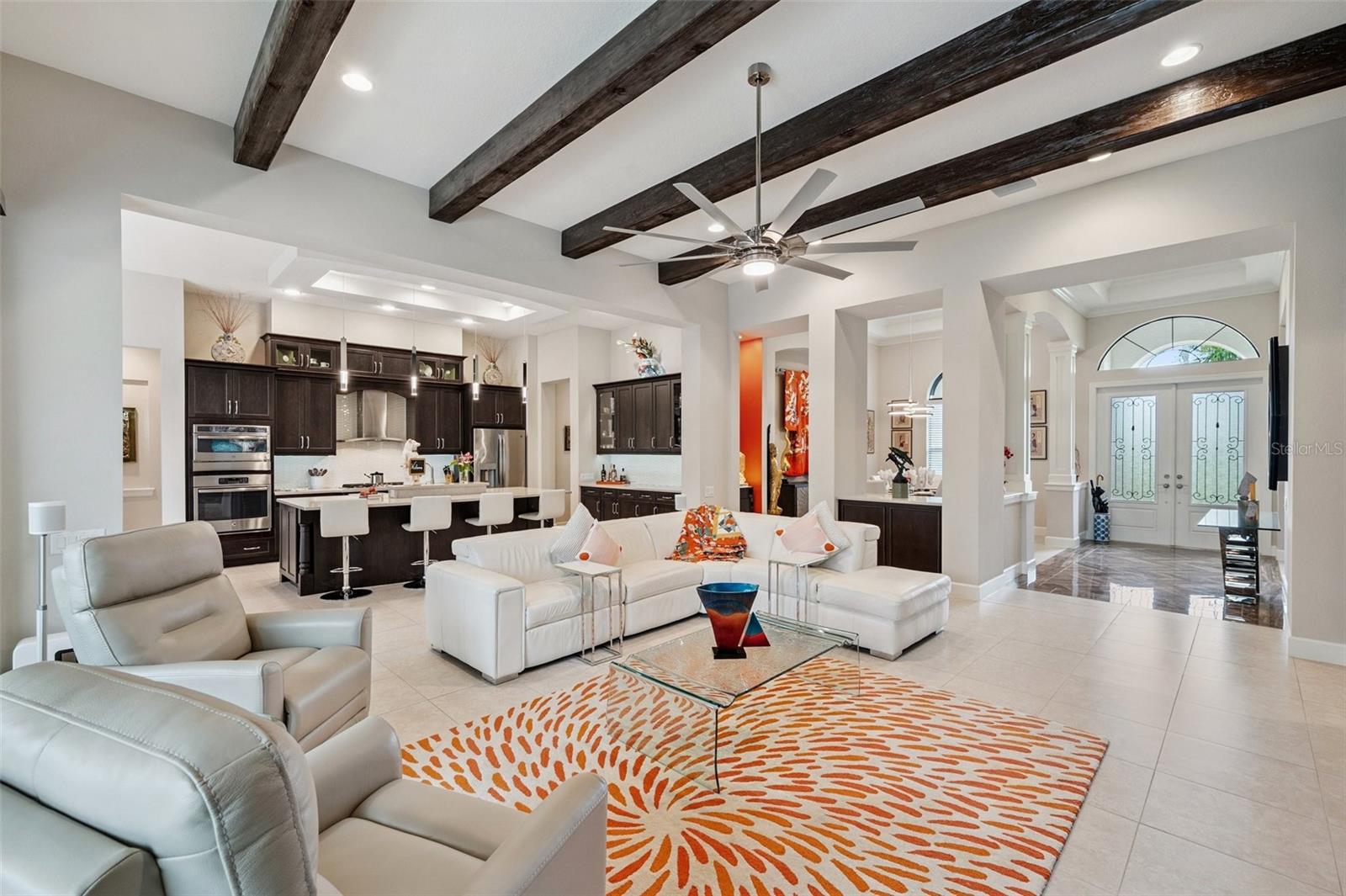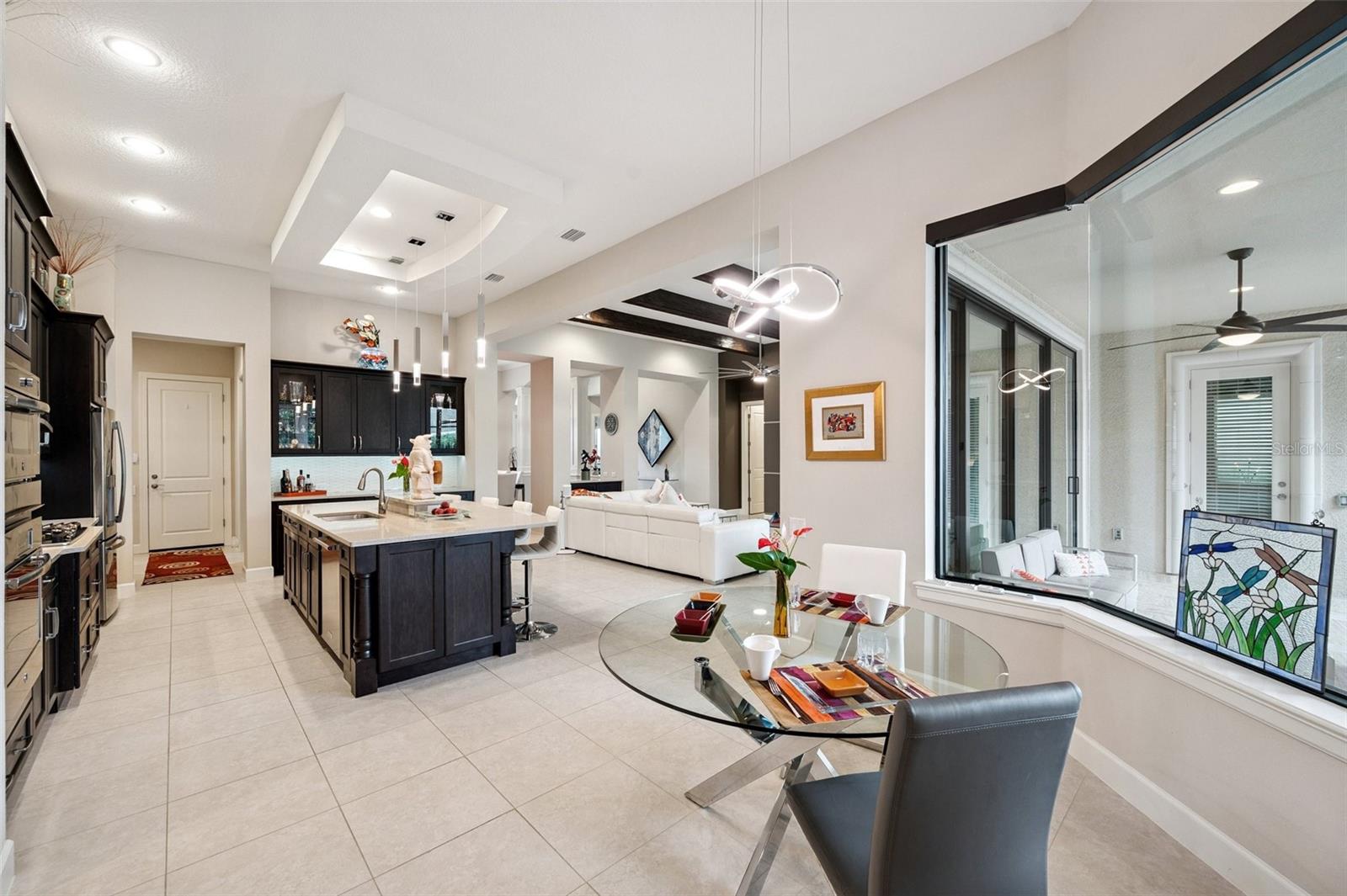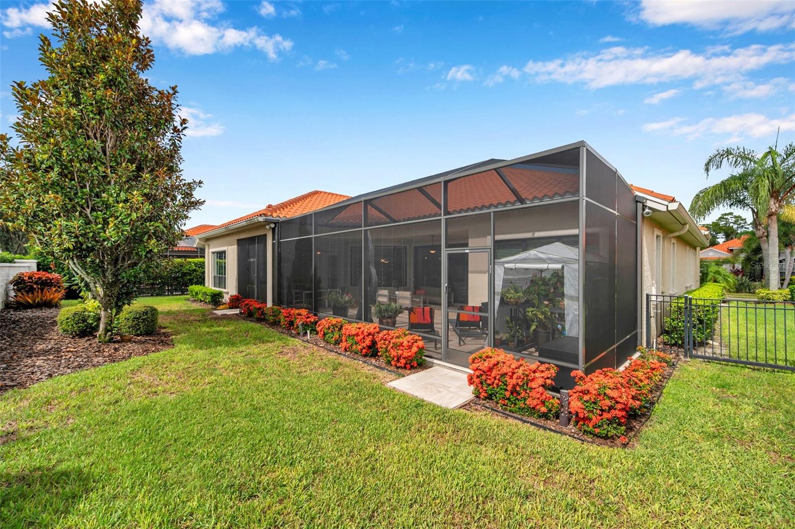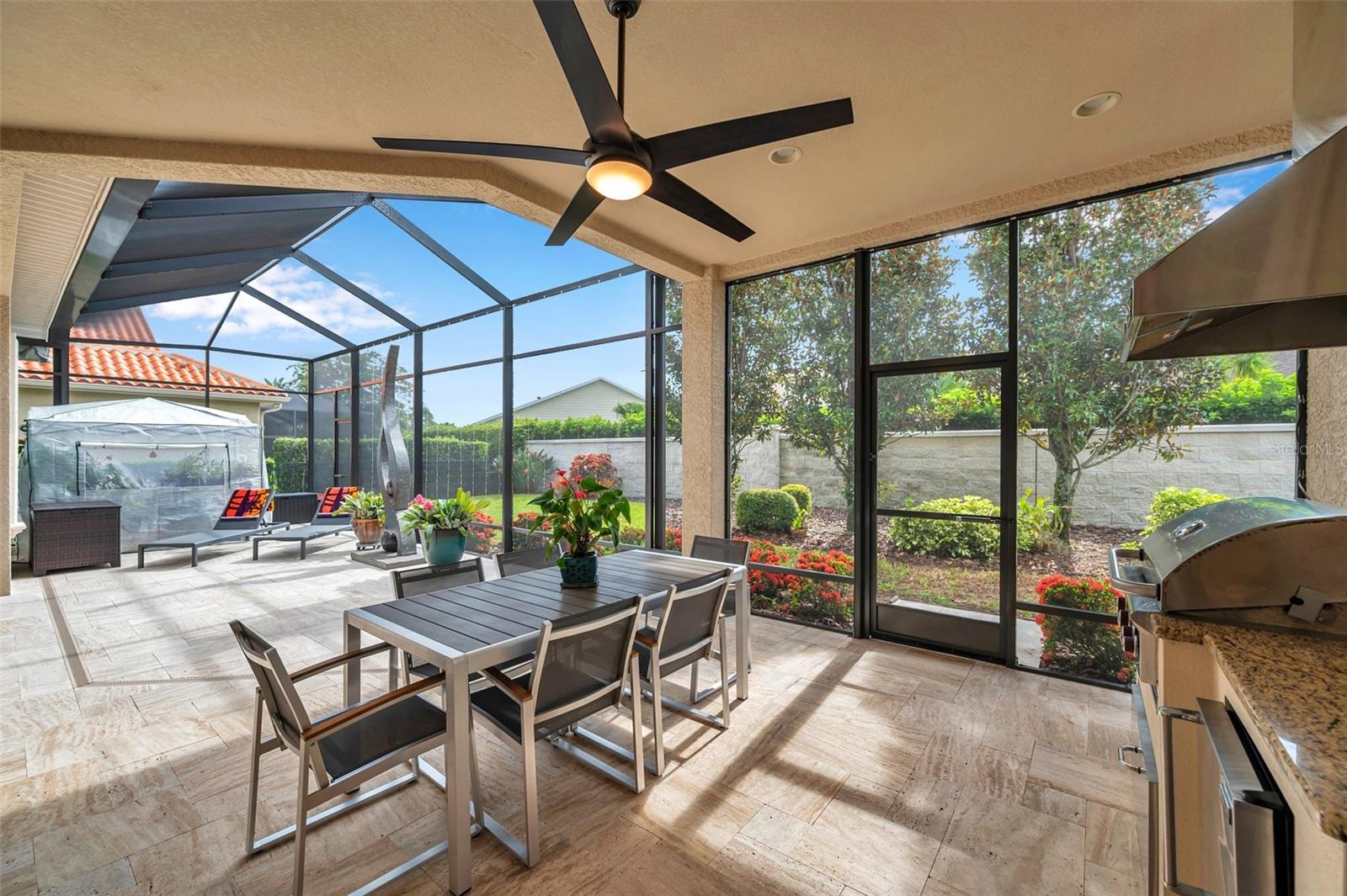 **Now priced $30K less than independent appraised value?** Presenting one of the NEWEST homes (2018) in the gated Siena enclave of the prestigious Champions Club community — featuring a timeless Mediterranean exterior combining perfectly with a contemporary style and a wonderful layout inside. From the portico through the double door entry, the foyer creates the perfect pause before entering the open living spaces where 12ft ceilings create an enhanced sense of space while architectural details subtly define each area making the layout perfect for all occasions. Stacking sliders offer the option of extending to the outdoor living spaces. The formal dining room is such a pleasing space it begs you to plan dinner parties— perfectly positioned with easy access to the dry bar and buffet. The kitchen features an abundance of espresso cabinetry, quartz counters, double wall ovens, a natural gas cooktop and exhaust hood. A built in buffet offers extra cabinet and counter space and a huge walk-in pantry completes all the storage space you could need. An expansive breakfast bar island with attractive pendant lighting, and a dining nook offer options for informal dining. The spacious primary suite in the split plan layout makes the perfect owners retreat and features a wonderful custom walk-in closet and a huge bathroom with two separate vanities, a standalone soaker tub and a walk-in shower enclosure. Two guest bedrooms on the other side of the home either side of a full guest bathroom provide comfortable private accommodations while the fourth bedroom with a custom sand blasted glass door is currently functioning as a large bonus room but could potentially serve as an in-law suite. The laundry room features everything you could hope for with cabinets, a granite folding counter, a hanging rail and cabinets. Outdoor living space is provided by an expansive private screened patio and lanai and is paved with travertine and features an outdoor kitchen and a striking basalt sculpture. There is room for a private pool or hot tub, should you desire. The garage has an EV charger, a mini split AC system and epoxy flooring to allow you to use it as a gym or a workshop. The champions club provides fabulous amenities just for residents, including a clubhouse, a sparkling community pool, tennis, pickleball, community activities and basketball — check out the Champions club website for details. Conveniently located for access to shopping, Trinity medical center, entertainment, airports, beaches and everything the Tampa Bay area has to offer. Be sure to check out the VIDEO link to see the home in motion.
