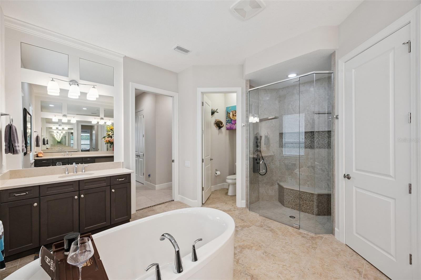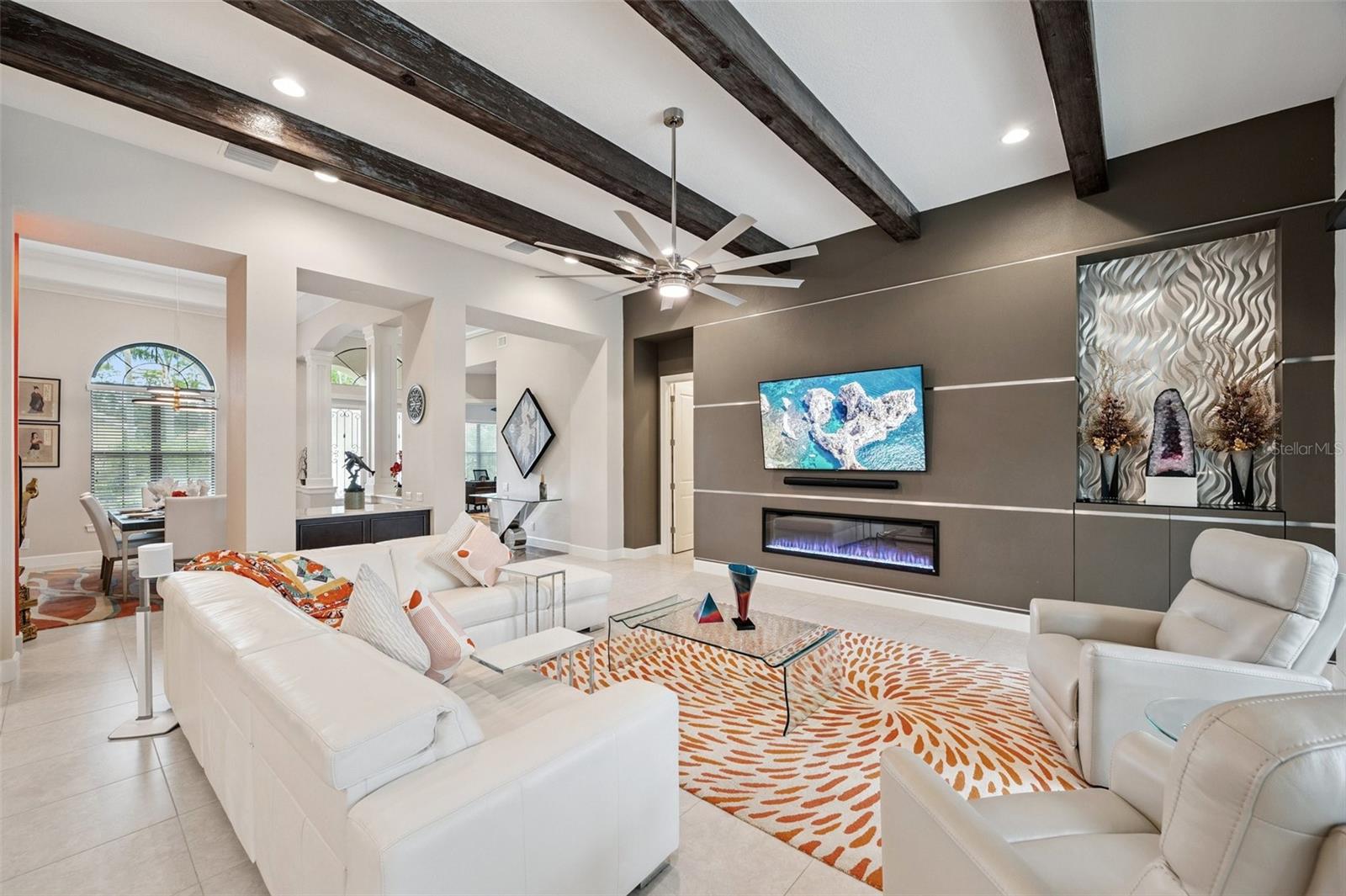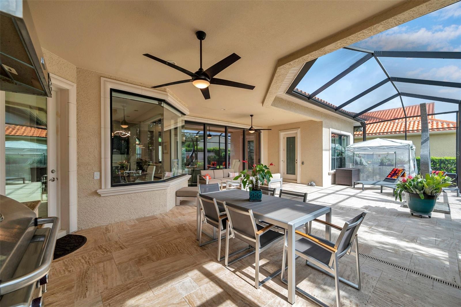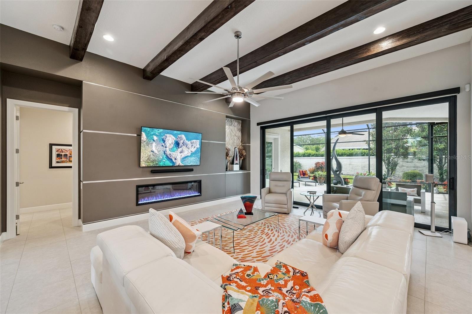 **Now priced $30K less than independent appraised value?** Presenting one of the NEWEST homes (2018) in the gated Siena enclave of the prestigious Champions Club community — featuring a timeless Mediterranean exterior combining perfectly with a contemporary style and a wonderful layout inside. From the portico through the double door entry, the foyer creates the perfect pause before entering the open living spaces where 12ft ceilings create an enhanced sense of space while architectural details subtly define each area making the layout perfect for all occasions. Stacking sliders offer the option of extending to the outdoor living spaces. The formal dining room is such a pleasing space it begs you to plan dinner parties— perfectly positioned with easy access to the dry bar and buffet. The kitchen features an abundance of espresso cabinetry, quartz counters, double wall ovens, a natural gas cooktop and exhaust hood. A built in buffet offers extra cabinet and counter space and a huge walk-in pantry completes all the storage space you could need. An expansive breakfast bar island with attractive pendant lighting, and a dining nook offer options for informal dining. The spacious primary suite in the split plan layout makes the perfect owners retreat and features a wonderful custom walk-in closet and a huge bathroom with two separate vanities, a standalone soaker tub and a walk-in shower enclosure. Two guest bedrooms on the other side of the home either side of a full guest bathroom provide comfortable private accommodations while the fourth bedroom with a custom sand blasted glass door is currently functioning as a large bonus room but could potentially serve as an in-law suite. The laundry room features everything you could hope for with cabinets, a granite folding counter, a hanging rail and cabinets. Outdoor living space is provided by an expansive private screened patio and lanai and is paved with travertine and features an outdoor kitchen and a striking basalt sculpture. There is room for a private pool or hot tub, should you desire. The garage has an EV charger, a mini split AC system and epoxy flooring to allow you to use it as a gym or a workshop. The champions club provides fabulous amenities just for residents, including a clubhouse, a sparkling community pool, tennis, pickleball, community activities and basketball — check out the Champions club website for details. Conveniently located for access to shopping, Trinity medical center, entertainment, airports, beaches and everything the Tampa Bay area has to offer. Be sure to check out the VIDEO link to see the home in motion.