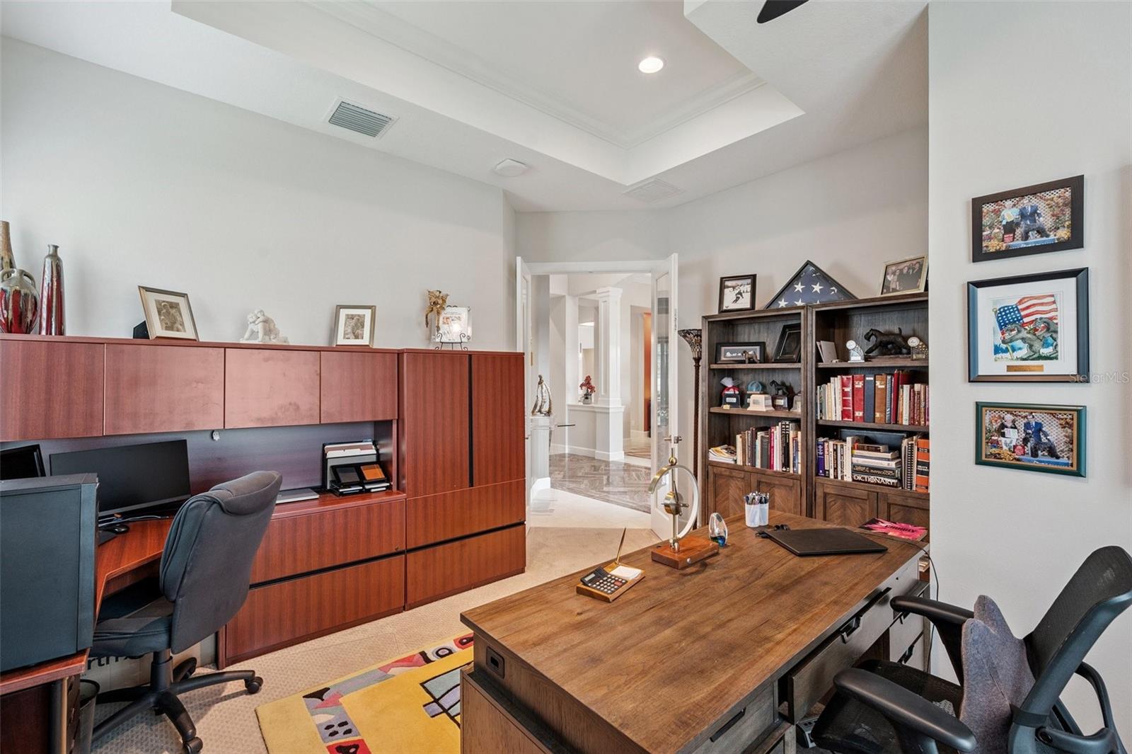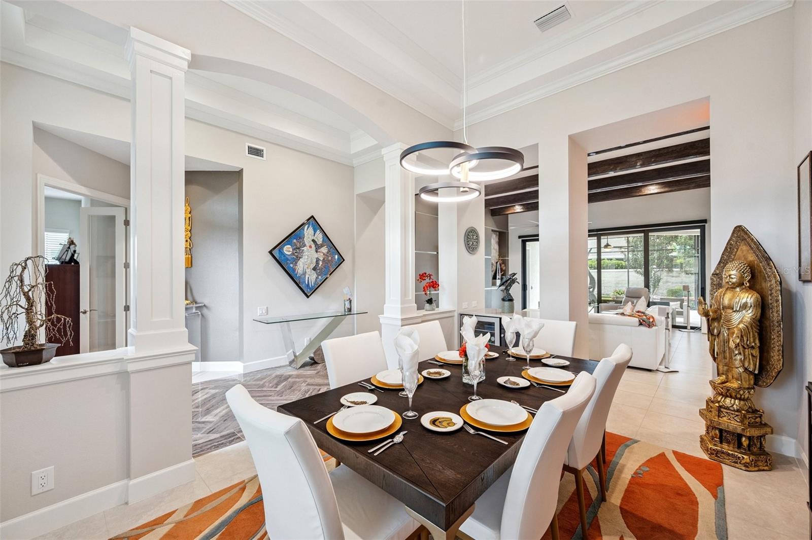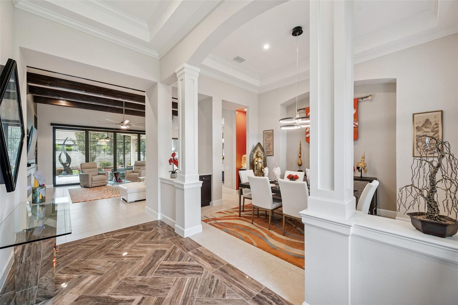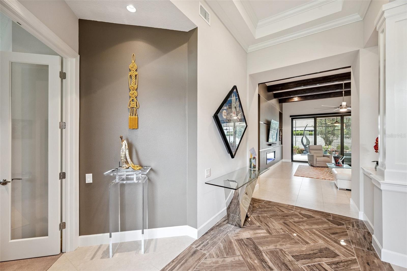 **Now priced $30K less than independent appraised value?** Presenting one of the NEWEST homes (2018) in the gated Siena enclave of the prestigious Champions Club community — featuring a timeless Mediterranean exterior combining perfectly with a contemporary style and a wonderful layout inside. From the portico through the double door entry, the foyer creates the perfect pause before entering the open living spaces where 12ft ceilings create an enhanced sense of space while architectural details subtly define each area making the layout perfect for all occasions. Stacking sliders offer the option of extending to the outdoor living spaces. The formal dining room is such a pleasing space it begs you to plan dinner parties— perfectly positioned with easy access to the dry bar and buffet. The kitchen features an abundance of espresso cabinetry, quartz counters, double wall ovens, a natural gas cooktop and exhaust hood. A built in buffet offers extra cabinet and counter space and a huge walk-in pantry completes all the storage space you could need. An expansive breakfast bar island with attractive pendant lighting, and a dining nook offer options for informal dining. The spacious primary suite in the split plan layout makes the perfect owners retreat and features a wonderful custom walk-in closet and a huge bathroom with two separate vanities, a standalone soaker tub and a walk-in shower enclosure. Two guest bedrooms on the other side of the home either side of a full guest bathroom provide comfortable private accommodations while the fourth bedroom with a custom sand blasted glass door is currently functioning as a large bonus room but could potentially serve as an in-law suite. The laundry room features everything you could hope for with cabinets, a granite folding counter, a hanging rail and cabinets. Outdoor living space is provided by an expansive private screened patio and lanai and is paved with travertine and features an outdoor kitchen and a striking basalt sculpture. There is room for a private pool or hot tub, should you desire. The garage has an EV charger, a mini split AC system and epoxy flooring to allow you to use it as a gym or a workshop. The champions club provides fabulous amenities just for residents, including a clubhouse, a sparkling community pool, tennis, pickleball, community activities and basketball — check out the Champions club website for details. Conveniently located for access to shopping, Trinity medical center, entertainment, airports, beaches and everything the Tampa Bay area has to offer. Be sure to check out the VIDEO link to see the home in motion.