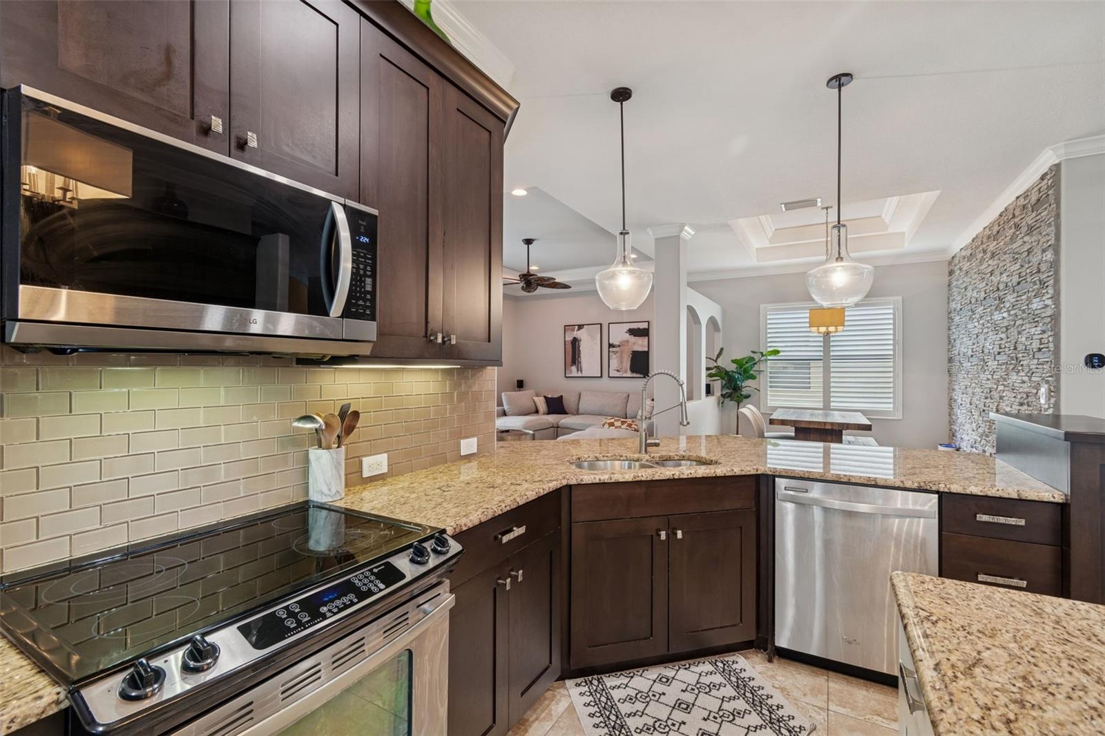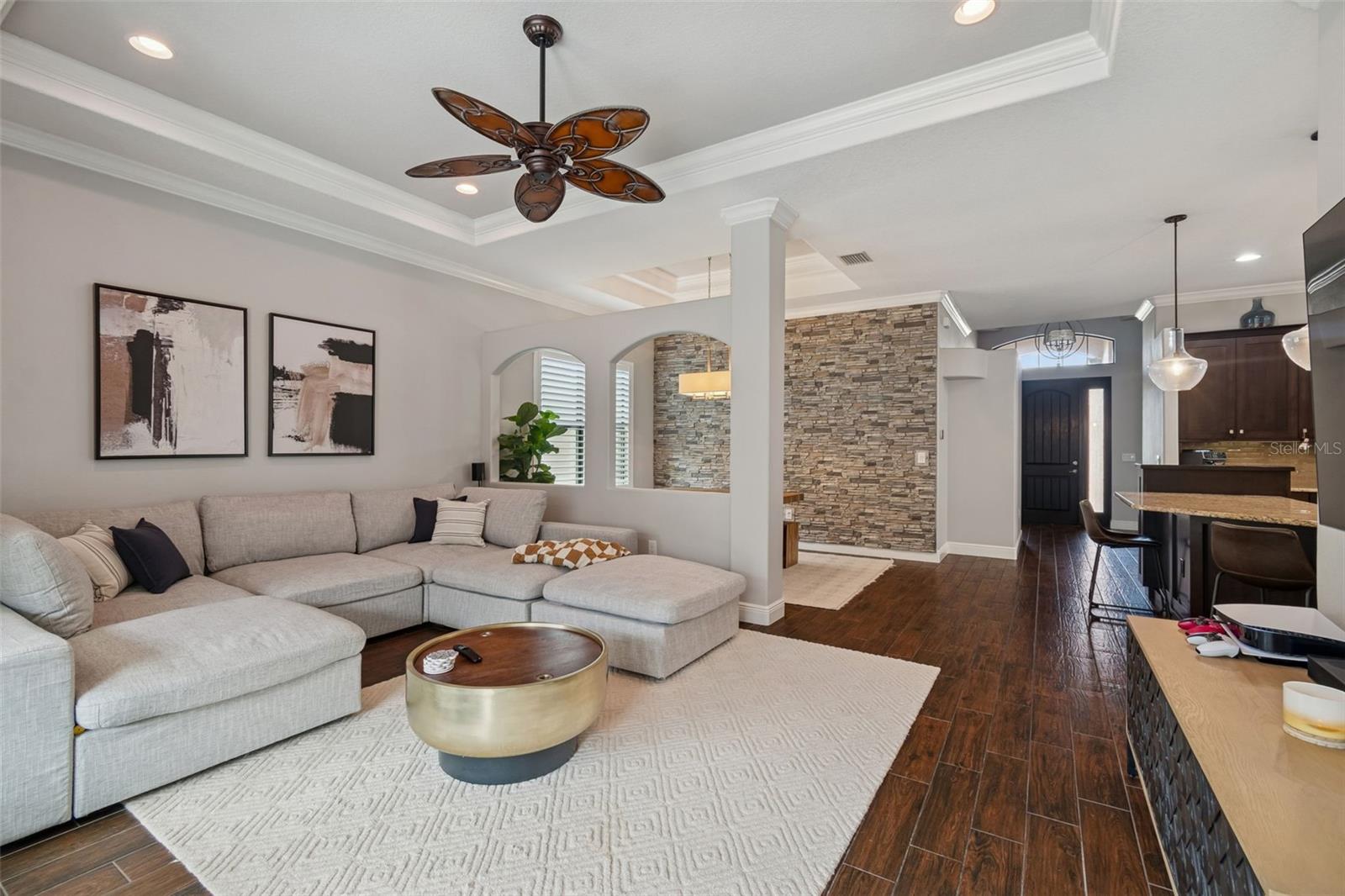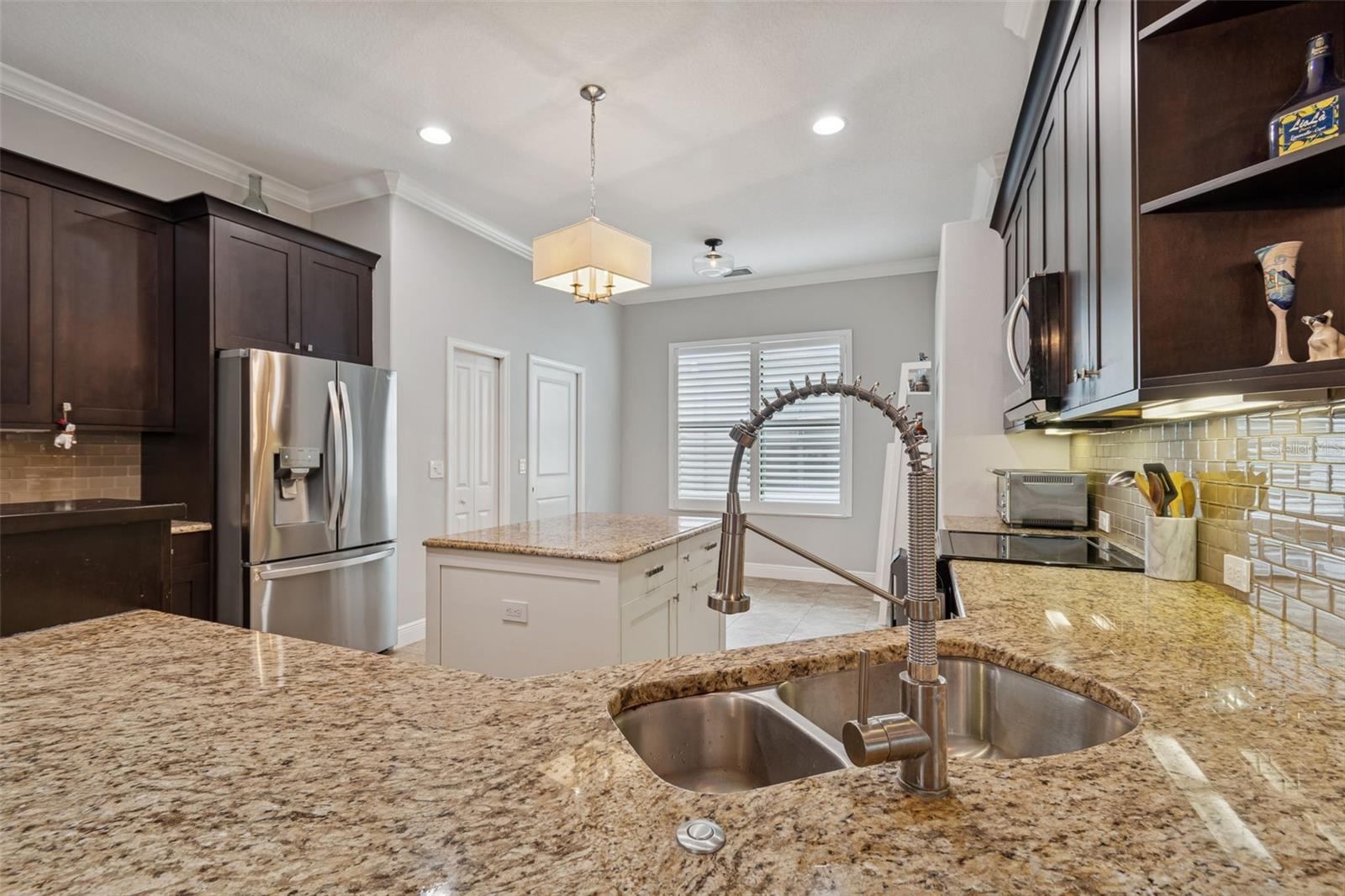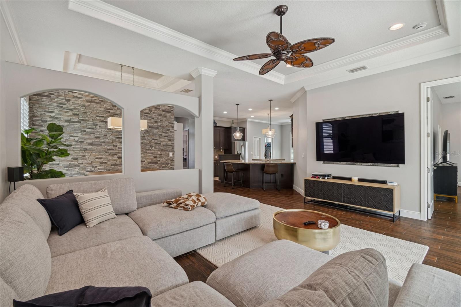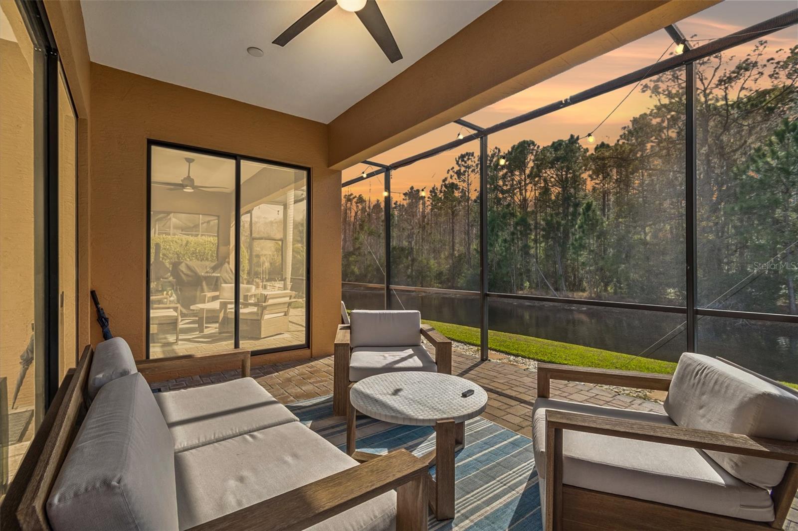 Escape to your own private paradise! Built in 2013 by the acclaimed Samuelsen Builders, this stunning home offers pristine, modern living with breathtaking pond and conservation views. Located in an exclusive, gated community with NO CDD and LOW HOA fees, you get the luxury lifestyle without the extra cost. From the moment you enter, you'll be captivated by the high ceilings, custom crown molding, and designer touches that set this home apart. The open-concept great room is perfect for entertaining, flowing effortlessly onto a screened lanai where you can soak in the tranquil views. A dramatic stone accent wall and elegant tray ceilings add a "wow" factor that's sure to impress. The chef-inspired kitchen is a showstopper! A massive island, top-of-the-line stainless steel appliances, and custom solid wood cabinets make this the perfect hub for culinary creativity and social gatherings. Need a home office or a quiet reading nook? The flexible 4th bedroom has you covered. Your personal retreat awaits in the spacious master suite, complete with a spa-like en-suite bath and a huge walk-in closet. The other bedrooms are bright and roomy, perfect for family, guests, or your dream hobby room. The convenient, well-equipped laundry room makes chores a breeze, and the oversized garage has plenty of room for your cars and toys. This home is designed for modern living, with smart, functional spaces for everything you need. Enjoy the perfect blend of privacy and convenience, with top schools, shopping, and major highways just moments away. This isn't just a house—it's your forever home. Live the dream in this magical location!