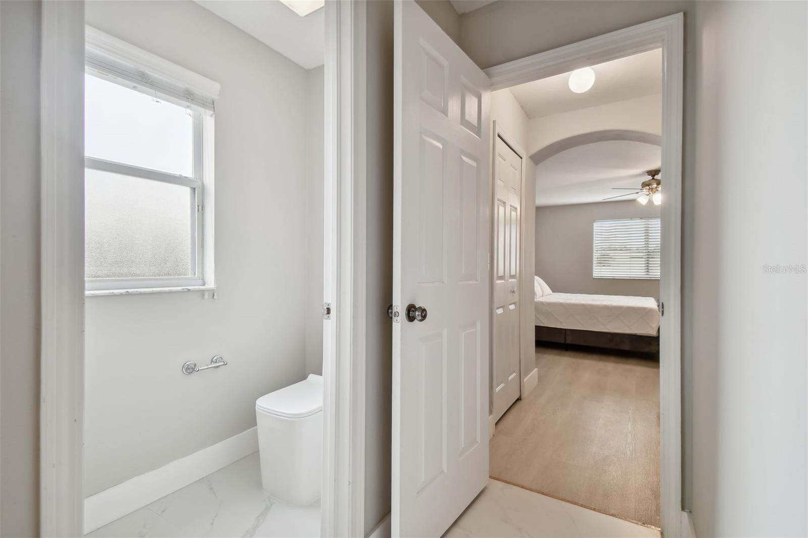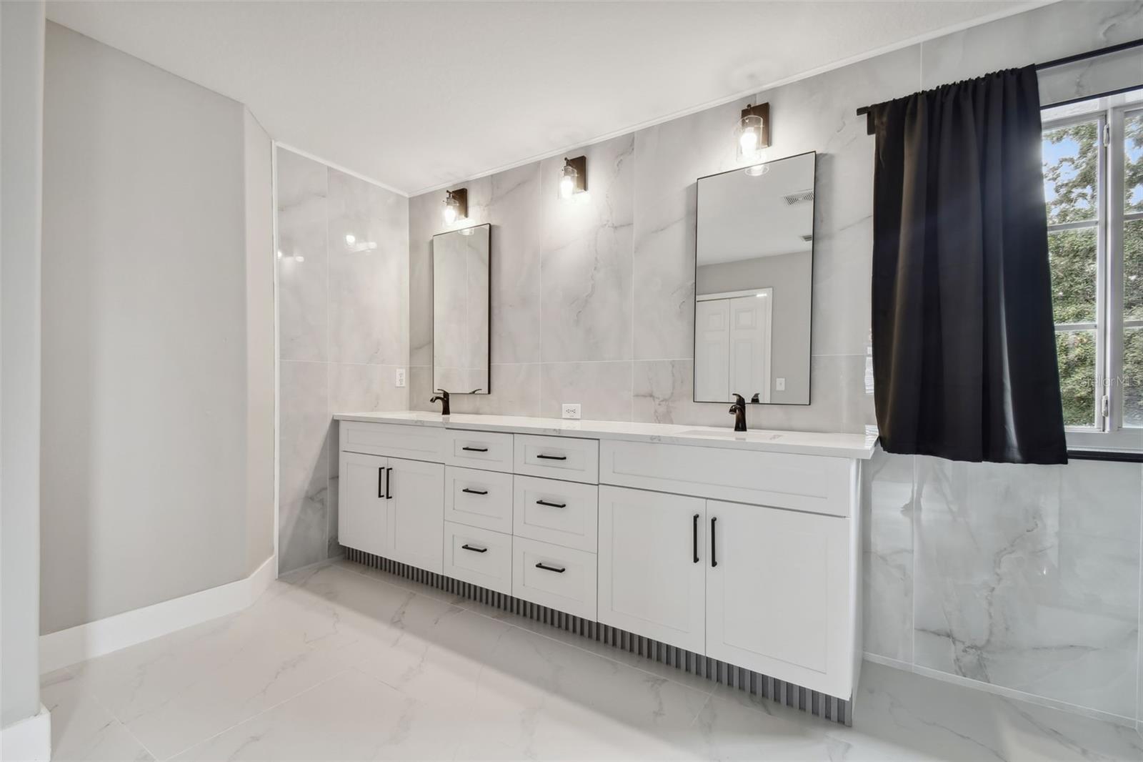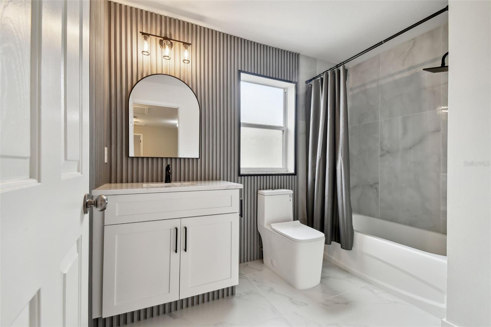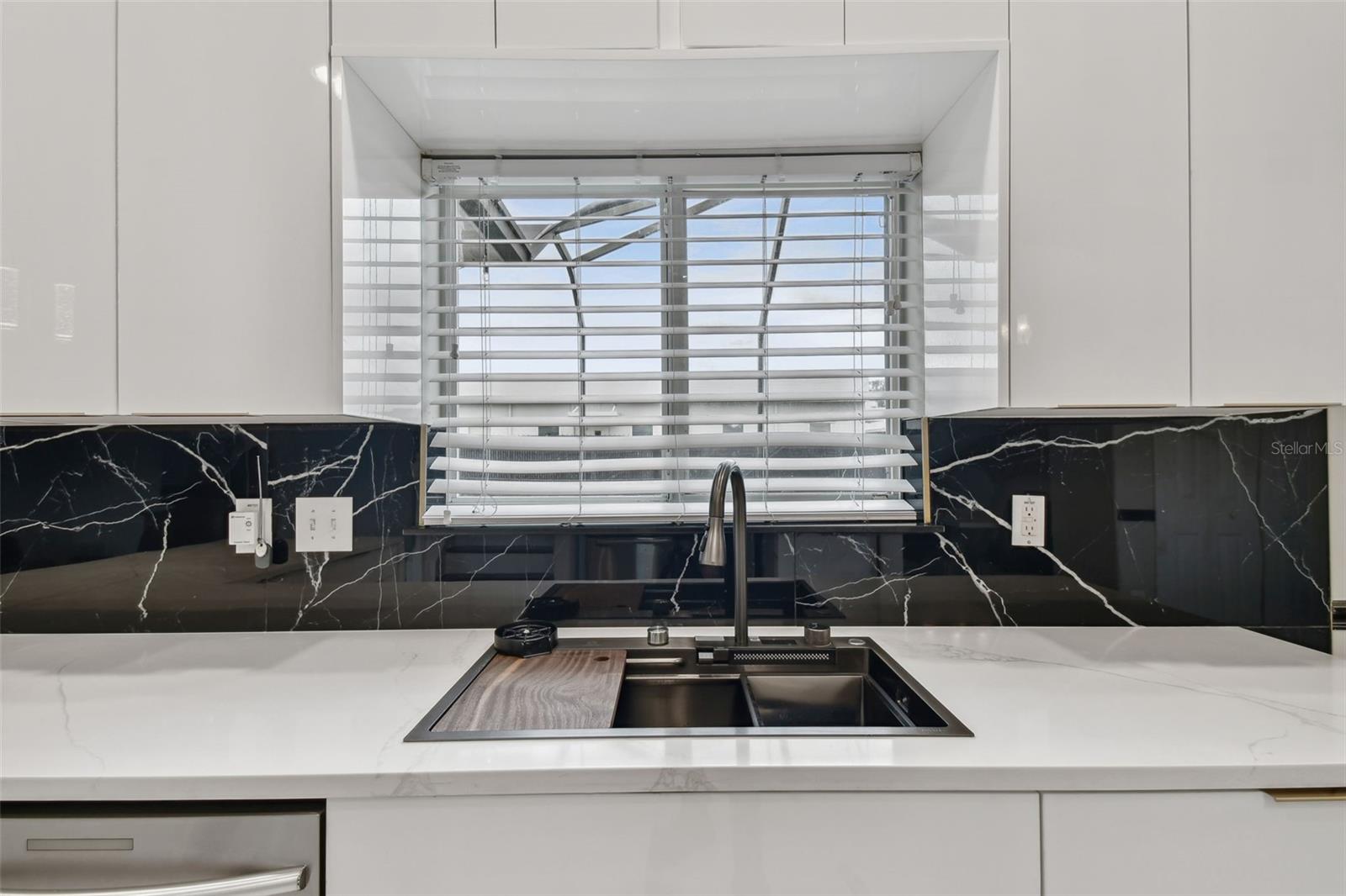 Stunning 4-Bedroom with office, 3-Bathroom, Pool Home in Thousand Oaks East located in the heart of Trinity. COMPLETELY RENOVATED and MOVE-IN ready! NEW ROOF 2022. Gourmet Kitchen: The heart of the home features a RENOVATED MODERN KITCHEN with QUARTZ countertops, an elegant Marble backsplash, a new PEHOHE WATERFALL SINK with digital readout and glass washer, a convenient pass-through window, pendant lighting, and a breakfast bar. Offers Top-of-the-line stainless steel appliances and a separate breakfast area adds extra dining space. Flooring: Upgrades include the seamless flow of porcelain tile throughout the downstairs and luxurious vinyl flooring upstairs. Updated Bathrooms: ALL bathrooms have been stylishly updated with new cabinets, granite countertops, modern lighting, and brand-new toilets. Elegant Staircase: The DUAL-ENTRY STAIRCASE was completed in wood planks and freshly painted railings and is a great focal point of the home. Spacious Bedrooms: All bedrooms are thoughtfully located upstairs. The Primary Bedroom is a true retreat, featuring a newly RENOVATED EN-SUITE bathroom with a larger shower enclosure including double rain shower heads, and a walk-in closet. Outdoor Entertaining: Step outside to a HEATED POOL complete with a ROCK WATERFALL. The pool area is screen-enclosed and complemented by a covered paver deck and sitting area. A NEW POOL PUMP was installed in July 2024, and blackout panels along the back fence allow additional privacy. Other additions include: 2021 A/C unit, fresh interior and exterior paint (2024), camera system, and water softener. The home is being offered FURNISHED with the furniture shown in the photographs. Centrally located with easy access to beaches, restaurants, and the airport. Situated in a NO FLOOD ZONE with low HOA fees and NO CDD!