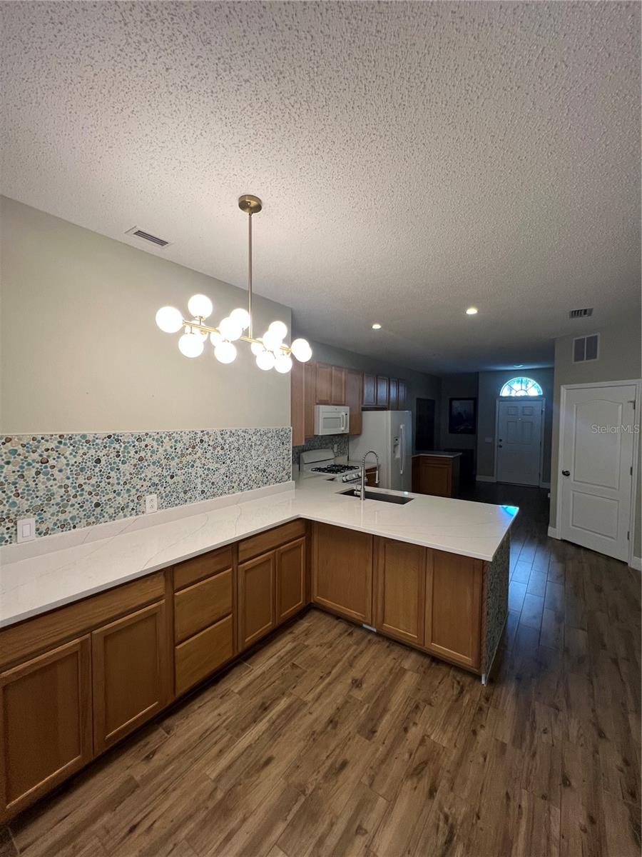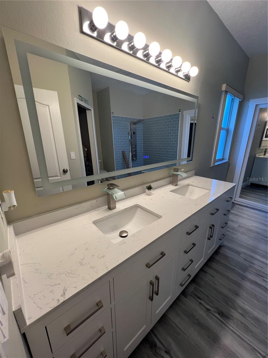 Welcome to The Hidden Secret Home! Step inside this one-of-a-kind remodeled retreat, where authentic Murphy doors create an air of mystery and adventure. Your guests will be pulling on everything—wondering if they’ve stumbled upon the gateway to Narnia or just a cleverly disguised photo frame! As you walk through the front door, your eyes are immediately drawn to brand-new quartz countertops, bubble light fixtures, and a custom stone backsplash in the kitchen. To your right, a beautiful bookcase with built-in cabinets and shelves catches your attention. But here’s the twist—give it a gentle push to the left, and voilà! You’ve just unlocked the entrance to the most epic "Man Cave" your friends will rave about. Inside, the fireplace casts a warm glow, perfect for nighttime cocktails or cozying up with a book. The tile surrounding beautifully complements the multi-colored fireplace lights, setting the perfect mood for any occasion. The space above the fire place is ready for your 60 inch flat screen to finish off this epic hideway. Stepping back into the main home, you’ll pass three spacious bedrooms on your right, along with a bathroom featuring a new quartz countertop and a custom, hand-fired and glazed ocean themed sink with turtles, star fish and a custom glaze. Every room, including the bathroom, boasts luxurious 12MM-thick vinyl plank flooring with soothing blue hues, creating a homey yet elegant ambiance throughout.To the left, beyond an extra set of kitchen cabinets (a dream for any chef or baker), you’ll find your master suite. Sliding doors lead out to the porch, but the real magic lies to the left—your newly renovated master bathroom. This spa-like retreat features a 74-inch anti-fog mirror, stunning matte blue tile, a shower system with 10 options for cascading waterfall faucets and LED lights , and a full-length mirror. But here’s the best part: press the top left corner of the mirror, and it swings open to reveal a hidden nook! This secret space, designed just for "Mamma Bear," is adorned with a color-changing crystal chandelier and discreet shelving—perfect for a private closet, office, or relaxation retreat. And that’s not all! Throughout the home, you’ll find even more hidden nooks, ideal for personal safekeeping or stashing away your own little secrets. But, of course, we can’t reveal them all here—you’ll have to schedule a showing to uncover the rest. This isn’t just a house—it’s a Hidden Secret waiting to be discovered. Now for the necessary details: Roof 2021 - Exterior paint-2024 - HVAC - 2023 - Water Softener 2023- Sprinkler system, Refrigerator, Stove, Dishwasher, Microwave and Washer and dryer 2022, Garage door 2023 , Hot water Heater 2024. Repaired Sinkhole fully insurable. Garage expanded to accomodate larger fishing boat when built.