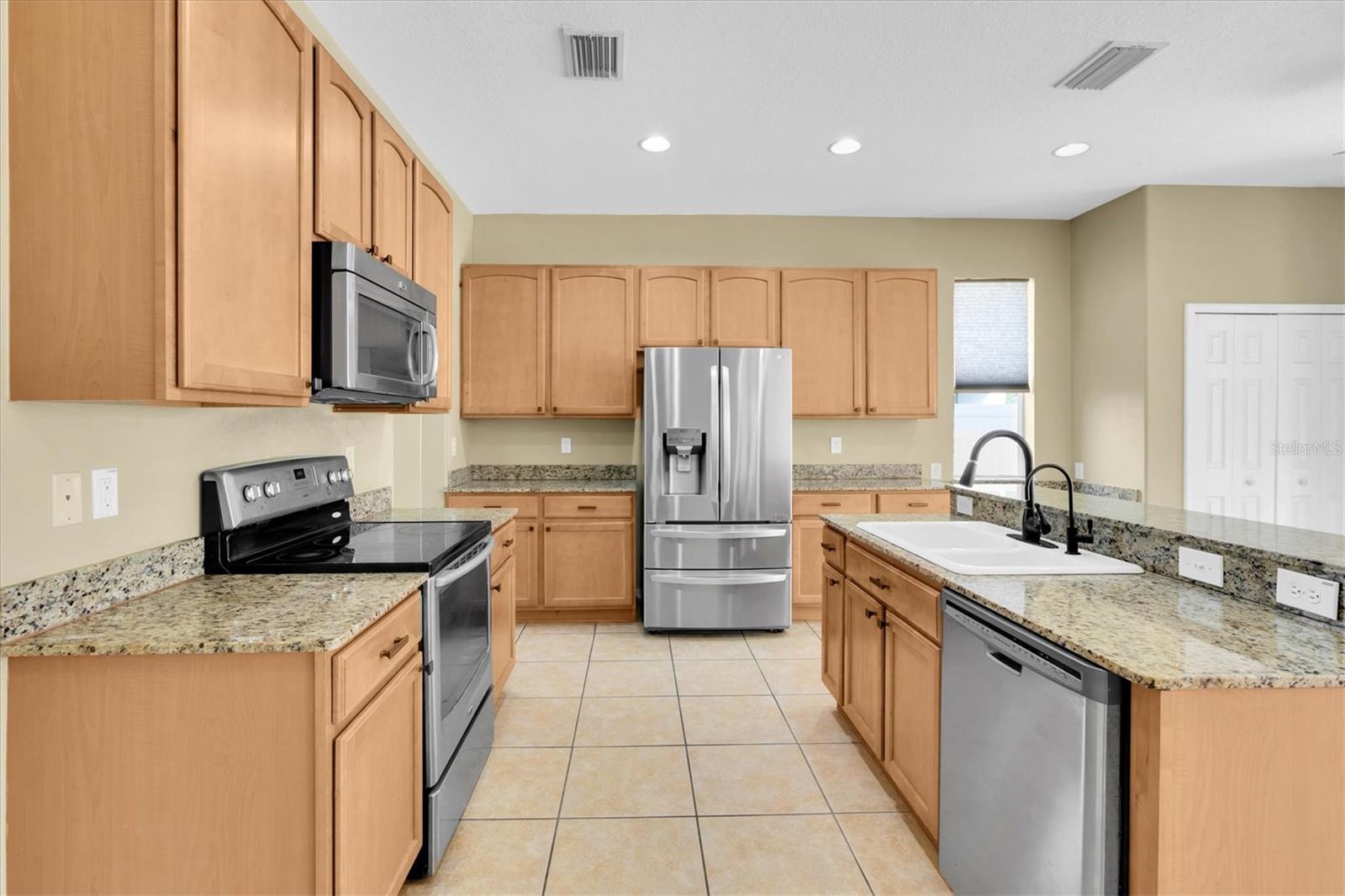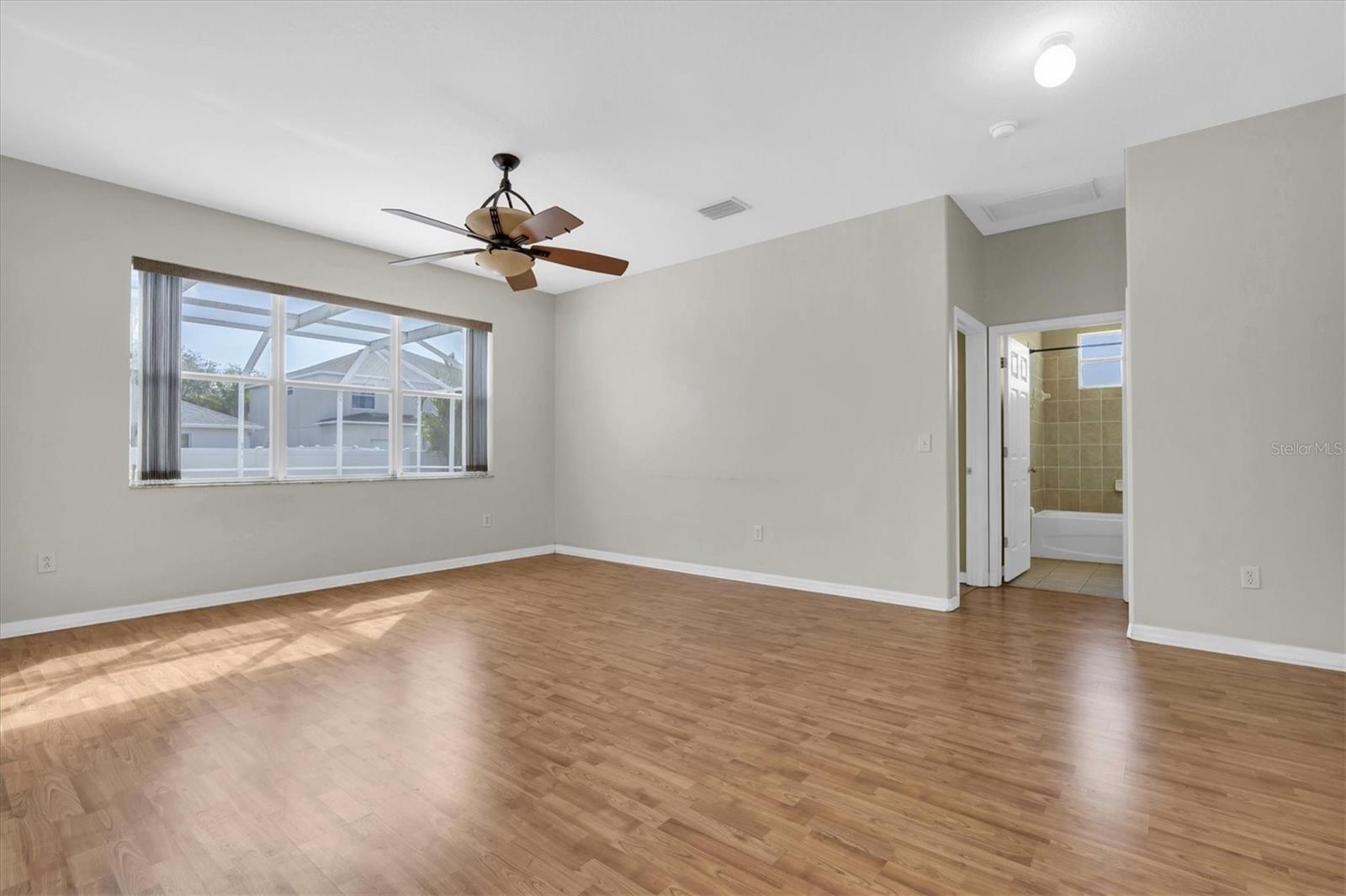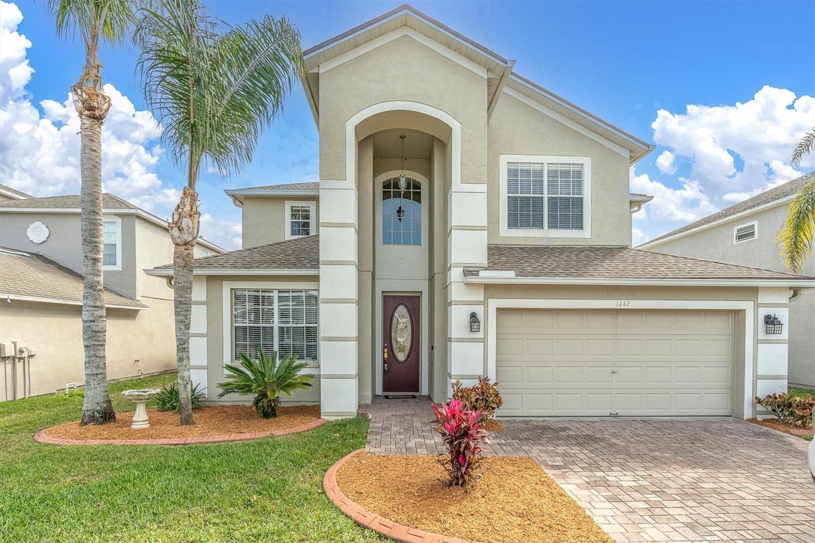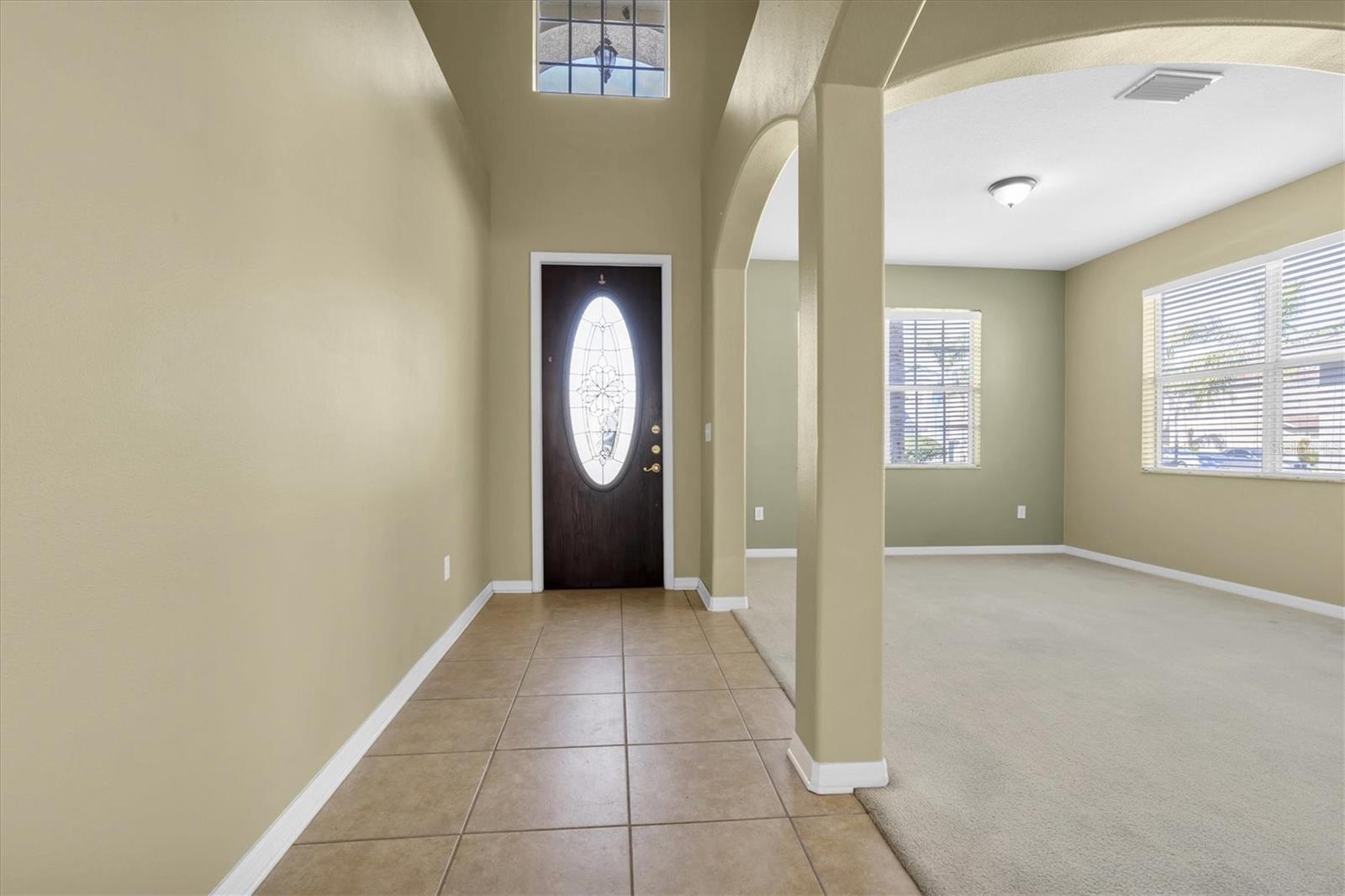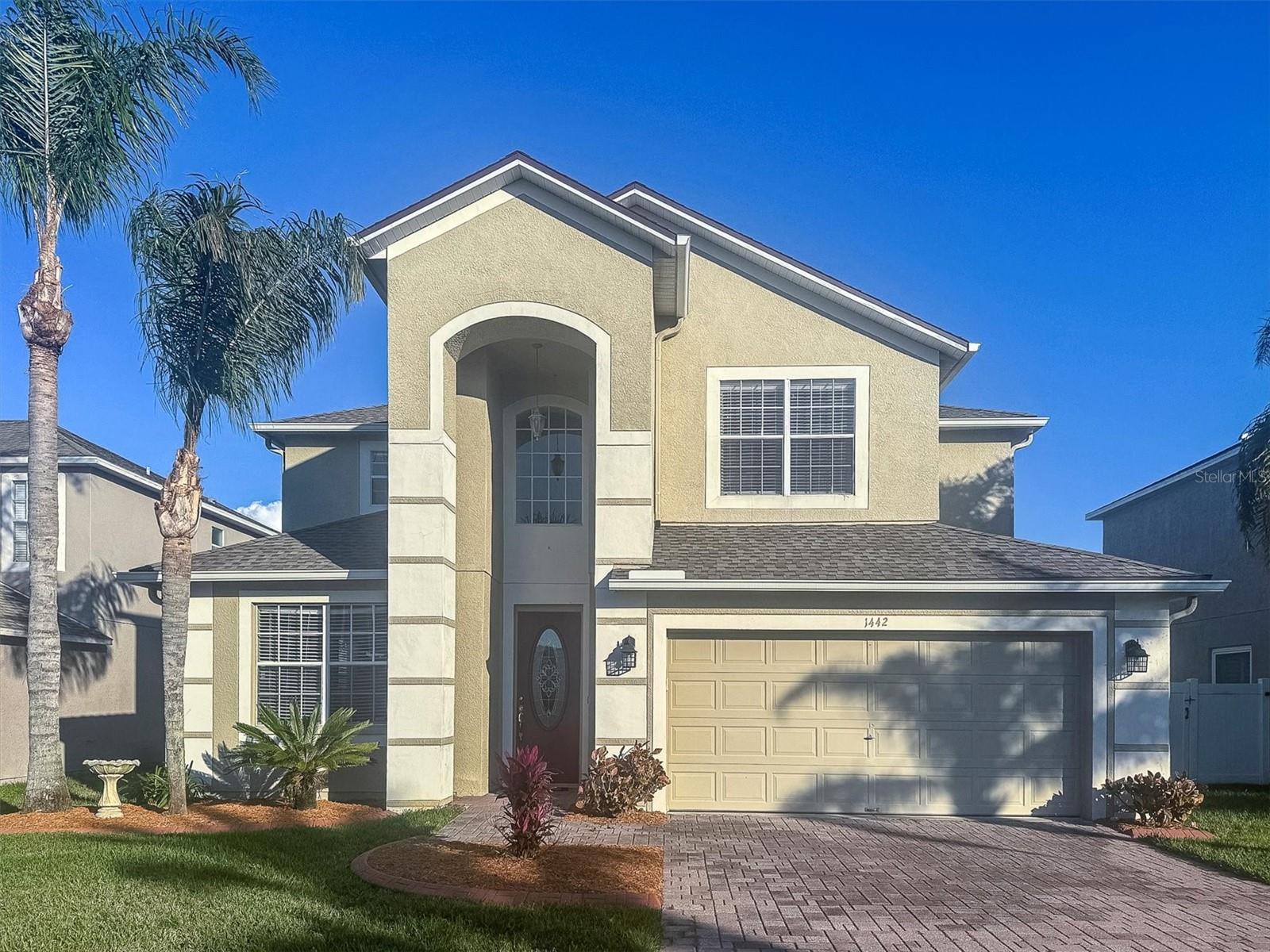 One or more photo(s) has been virtually staged. Don’t miss this spacious Trinity POOL home offering nearly 3,200 square feet of living space in the highly desirable Thousand Oaks East community. With 5 bedrooms, a bonus/media room, and 3 bathrooms, this home provides the perfect blend of space, comfort, and convenience. The main floor features a flexible 5th bedroom, ideal as a home office, guest suite, or in-law suite to suit your lifestyle. The heart of the home is the spacious kitchen, complete with granite countertops, a large island/breakfast bar, stainless steel appliances, and a closet pantry. Sliding glass doors open to a screened-in lanai with a sparkling pool and spa, creating an ideal space for relaxation and entertaining. The kitchen seamlessly flows into the family room, while the formal living and dining areas provide elegant spaces for hosting. Arched doorways throughout the home add a touch of architectural charm. Upstairs, the primary suite offers a luxurious ensuite bath with dual sinks, a soaking tub, a walk-in glass shower, and generous space for unwinding. Additional spacious guest rooms ensure comfort for family or visitors. The open staircase leads to a versatile loft area, perfect as a second living space or home office. Outside, the fenced yard is beautifully landscaped with concrete curbing, and the pavered driveway leads to an oversized 3 car garage with ample storage. A newer roof (2020) provides added peace of mind. Situated near top-rated schools, shopping, dining, medical facilities, and a golf course, this home offers prime location and lifestyle. Schedule your private tour today—this home is a must-see!