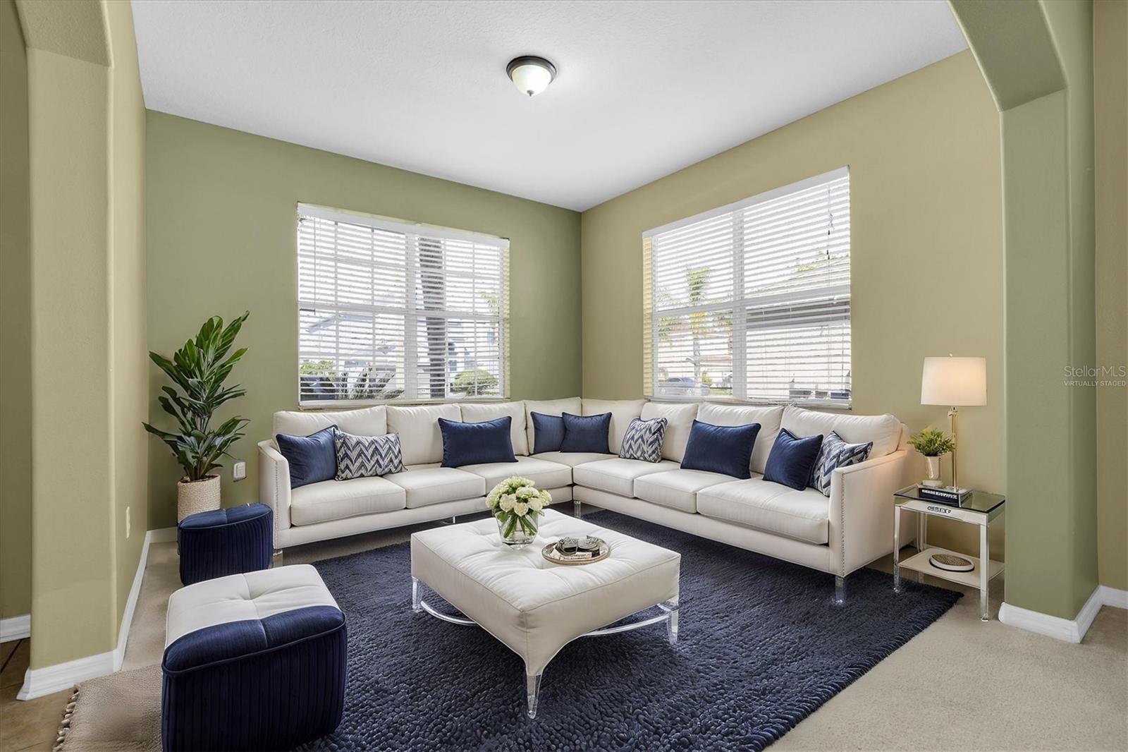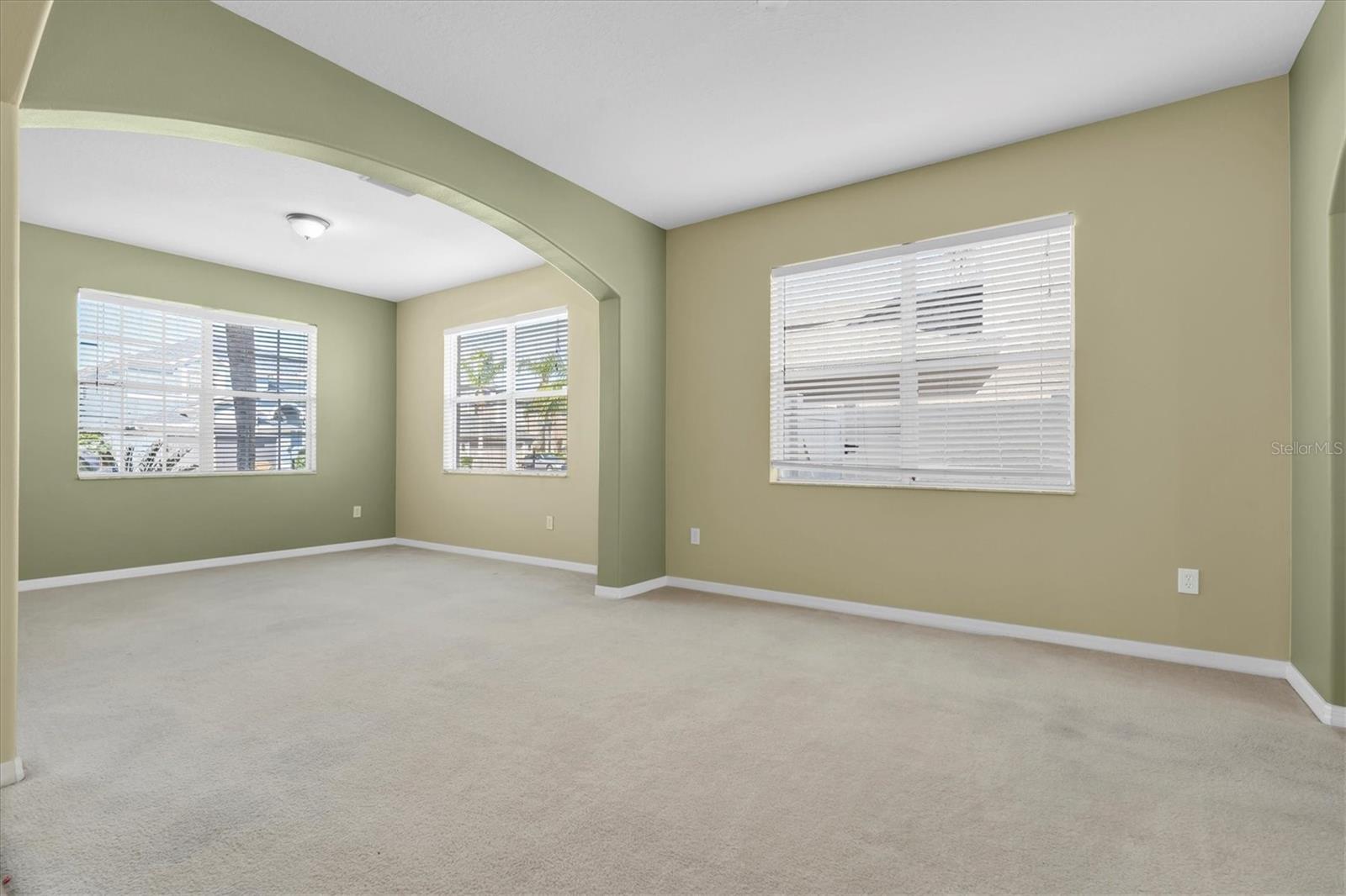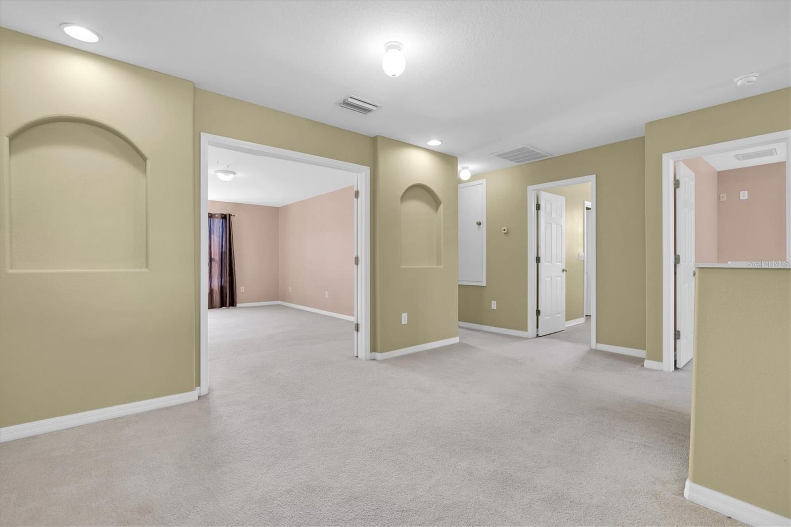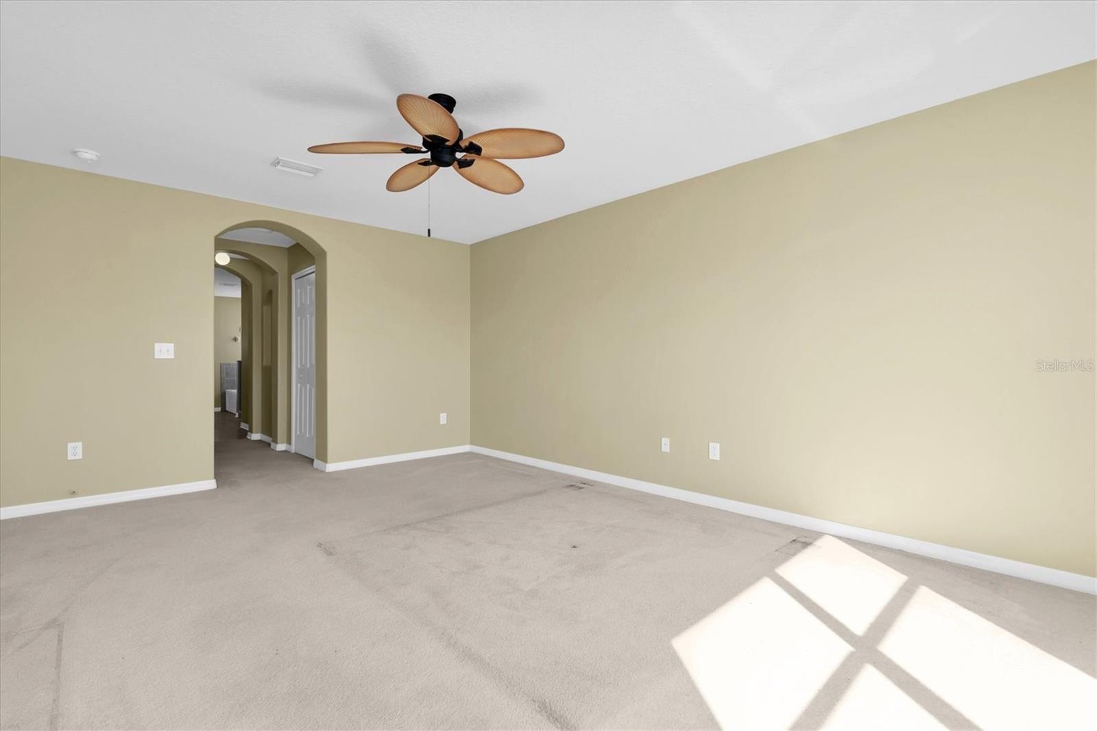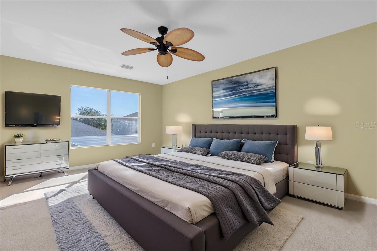 One or more photo(s) has been virtually staged. Don’t miss this spacious Trinity POOL home offering nearly 3,200 square feet of living space in the highly desirable Thousand Oaks East community. With 5 bedrooms, a bonus/media room, and 3 bathrooms, this home provides the perfect blend of space, comfort, and convenience. The main floor features a flexible 5th bedroom, ideal as a home office, guest suite, or in-law suite to suit your lifestyle. The heart of the home is the spacious kitchen, complete with granite countertops, a large island/breakfast bar, stainless steel appliances, and a closet pantry. Sliding glass doors open to a screened-in lanai with a sparkling pool and spa, creating an ideal space for relaxation and entertaining. The kitchen seamlessly flows into the family room, while the formal living and dining areas provide elegant spaces for hosting. Arched doorways throughout the home add a touch of architectural charm. Upstairs, the primary suite offers a luxurious ensuite bath with dual sinks, a soaking tub, a walk-in glass shower, and generous space for unwinding. Additional spacious guest rooms ensure comfort for family or visitors. The open staircase leads to a versatile loft area, perfect as a second living space or home office. Outside, the fenced yard is beautifully landscaped with concrete curbing, and the pavered driveway leads to an oversized 3 car garage with ample storage. A newer roof (2020) provides added peace of mind. Situated near top-rated schools, shopping, dining, medical facilities, and a golf course, this home offers prime location and lifestyle. Schedule your private tour today—this home is a must-see!