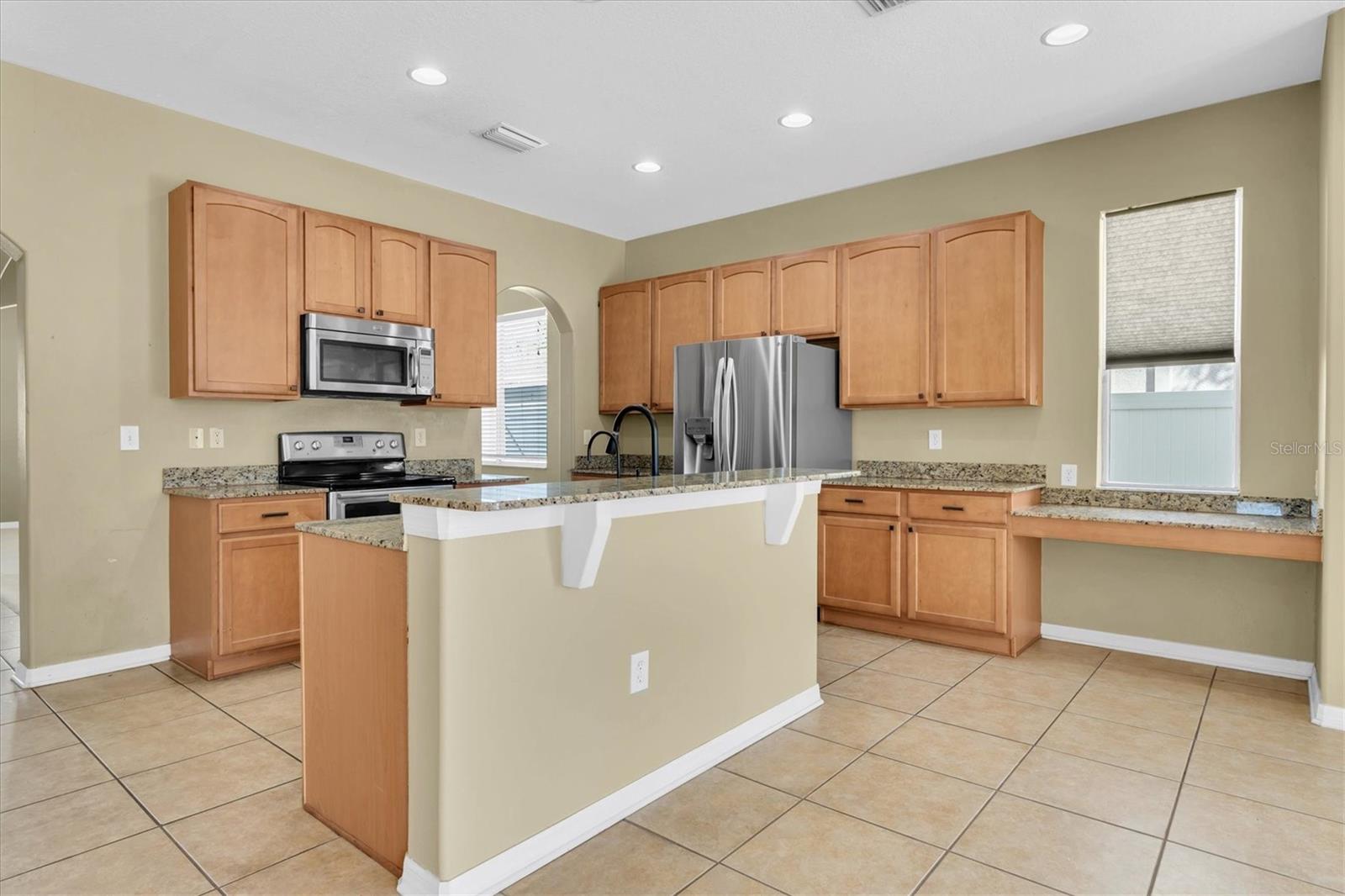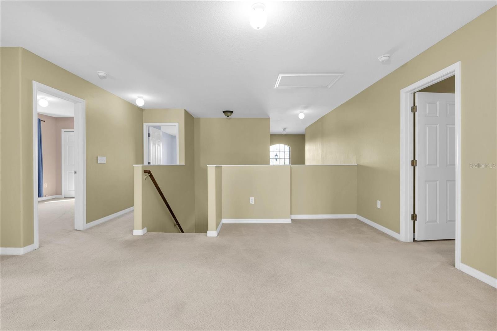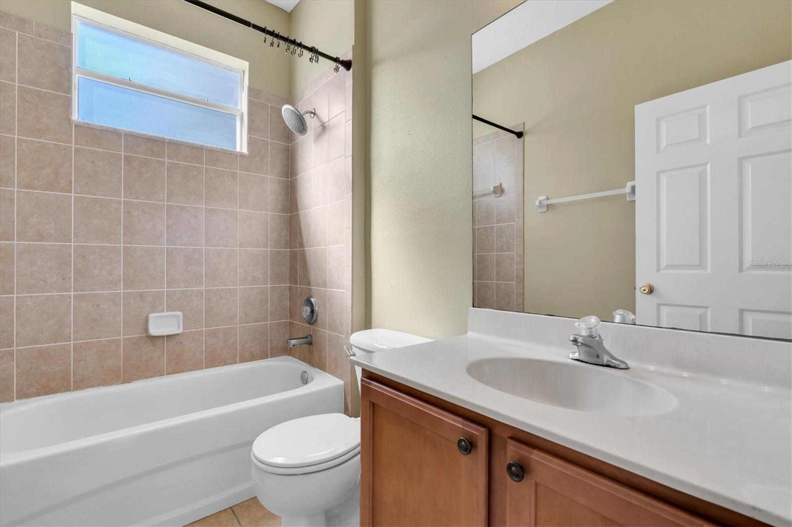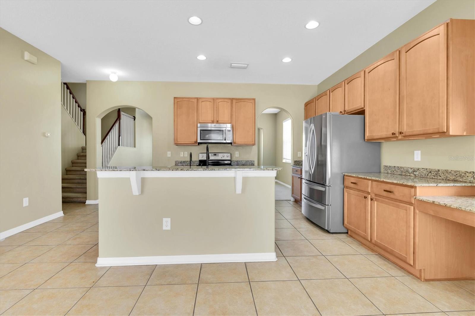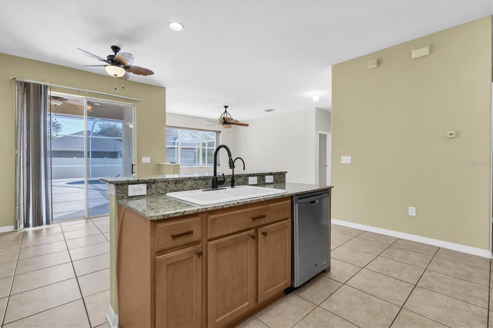 One or more photo(s) has been virtually staged. Don’t miss this spacious Trinity POOL home offering nearly 3,200 square feet of living space in the highly desirable Thousand Oaks East community. With 5 bedrooms, a bonus/media room, and 3 bathrooms, this home provides the perfect blend of space, comfort, and convenience. The main floor features a flexible 5th bedroom, ideal as a home office, guest suite, or in-law suite to suit your lifestyle. The heart of the home is the spacious kitchen, complete with granite countertops, a large island/breakfast bar, stainless steel appliances, and a closet pantry. Sliding glass doors open to a screened-in lanai with a sparkling pool and spa, creating an ideal space for relaxation and entertaining. The kitchen seamlessly flows into the family room, while the formal living and dining areas provide elegant spaces for hosting. Arched doorways throughout the home add a touch of architectural charm. Upstairs, the primary suite offers a luxurious ensuite bath with dual sinks, a soaking tub, a walk-in glass shower, and generous space for unwinding. Additional spacious guest rooms ensure comfort for family or visitors. The open staircase leads to a versatile loft area, perfect as a second living space or home office. Outside, the fenced yard is beautifully landscaped with concrete curbing, and the pavered driveway leads to an oversized 3 car garage with ample storage. A newer roof (2020) provides added peace of mind. Situated near top-rated schools, shopping, dining, medical facilities, and a golf course, this home offers prime location and lifestyle. Schedule your private tour today—this home is a must-see!