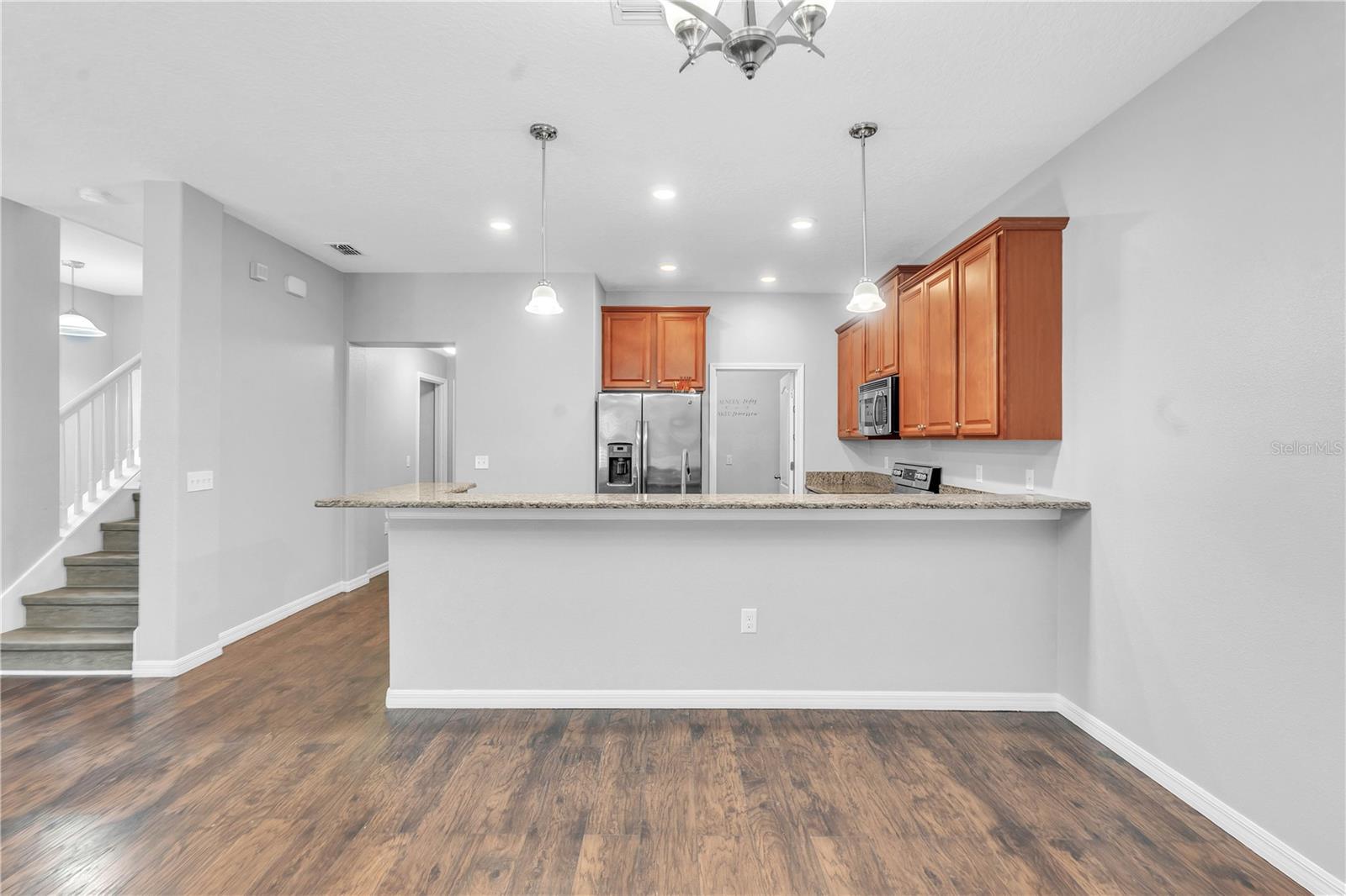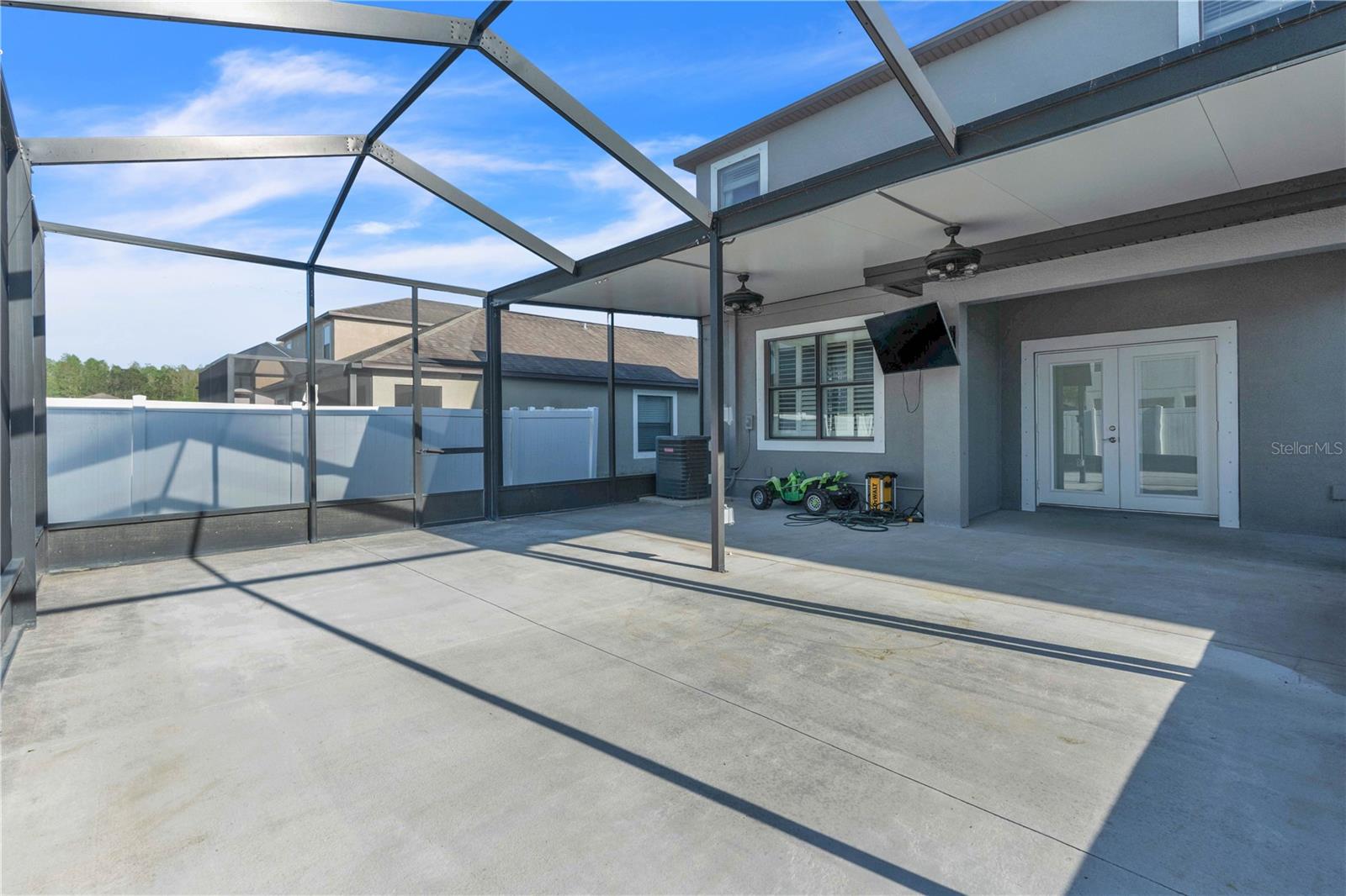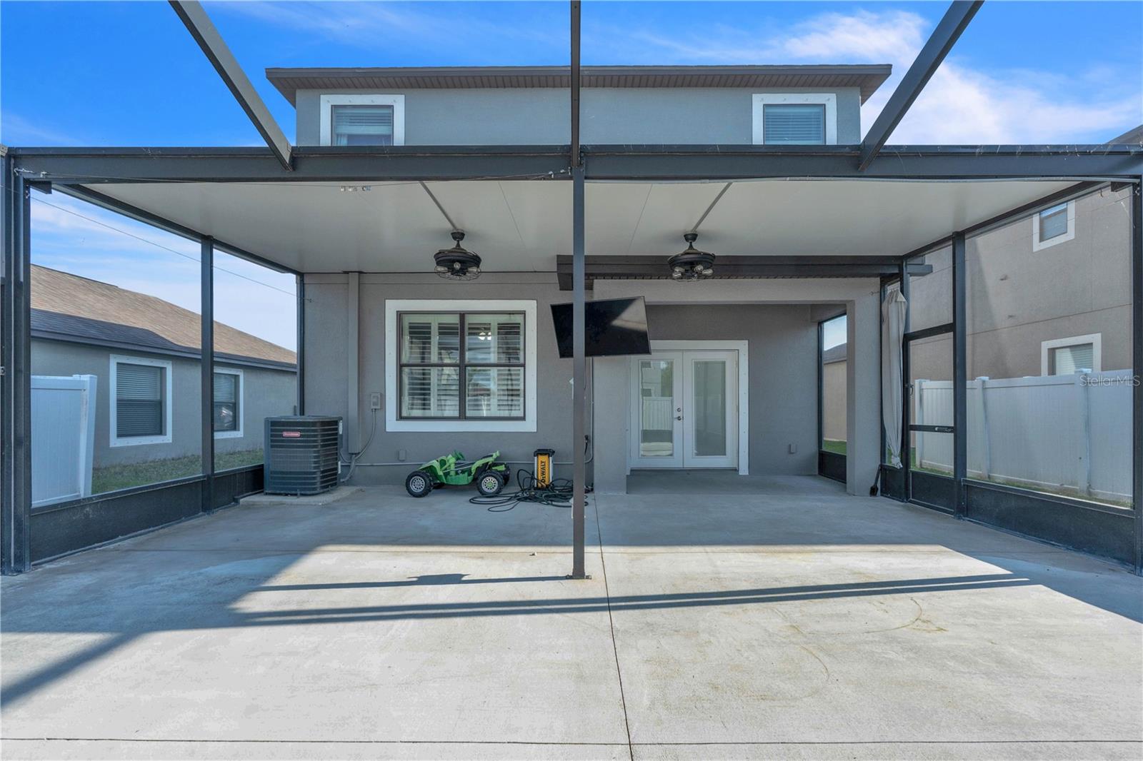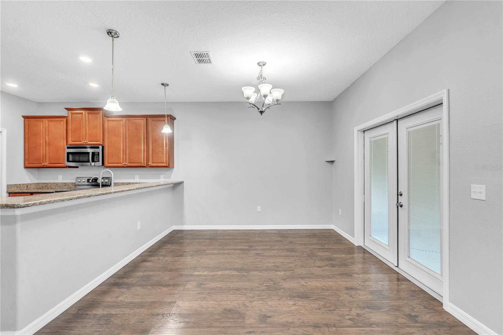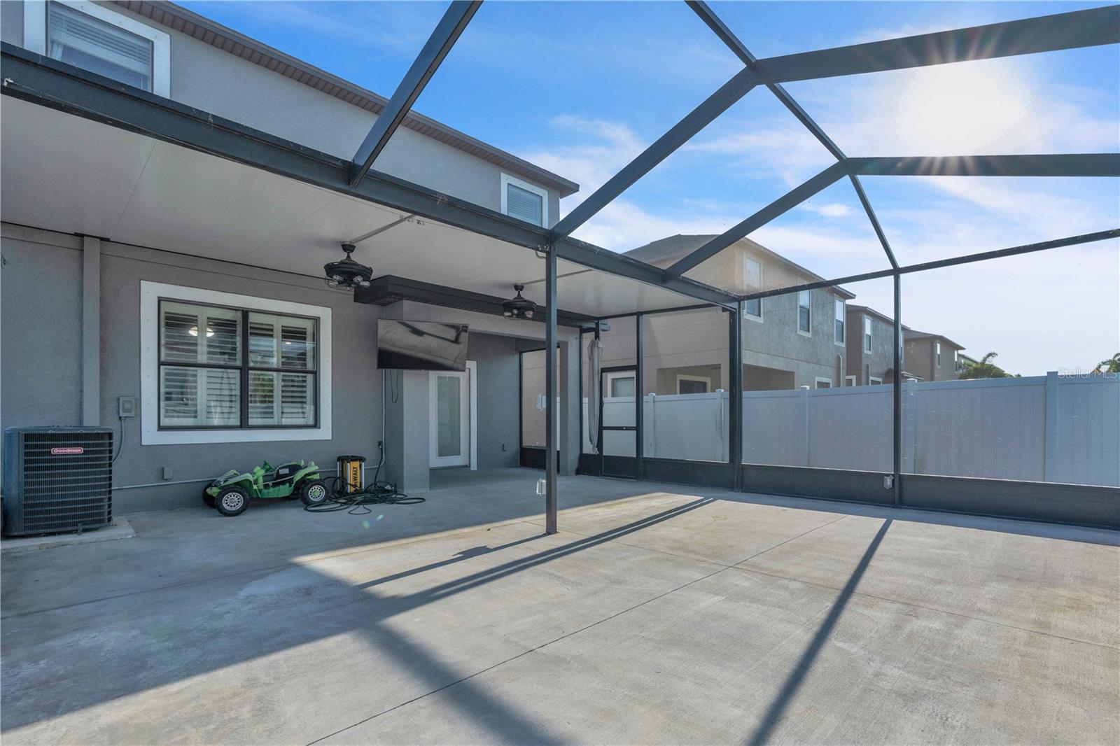 Priced to sell and ready for you! This delightful home is perfectly situated close to everything: A-rated schools, airports, parks, and shopping! The sellers are relocating, so here’s your chance to grab this gem. Step into the open and inviting living room that flows seamlessly into a spacious kitchen, complete with a breakfast bar, sleek granite countertops, and stainless steel appliances. Enjoy the practicality of a main-level laundry room and a generous pantry for all your storage needs. Host memorable gatherings in the elegant dining room, where French doors lead you to an entertainer's paradise—a backyard with a 25x26 screened lanai, a fenced yard, and a charming above-ground pool to cool off on those warm summer days. Upstairs, you’ll find three roomy bedrooms. The freshly painted exterior adds to the home's charm, complemented by luxury laminate floors throughout the first level and a new A/C unit installed in 2019. Plus, the entire home benefits from a whole-house water filtration system! This is the home you’ve been searching for—don’t let it slip away!