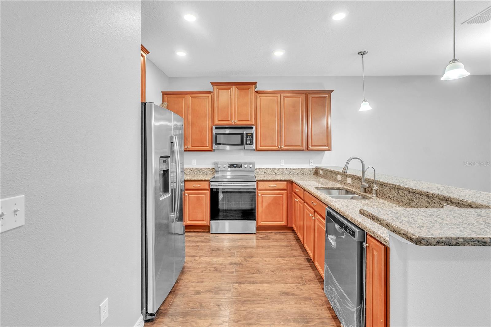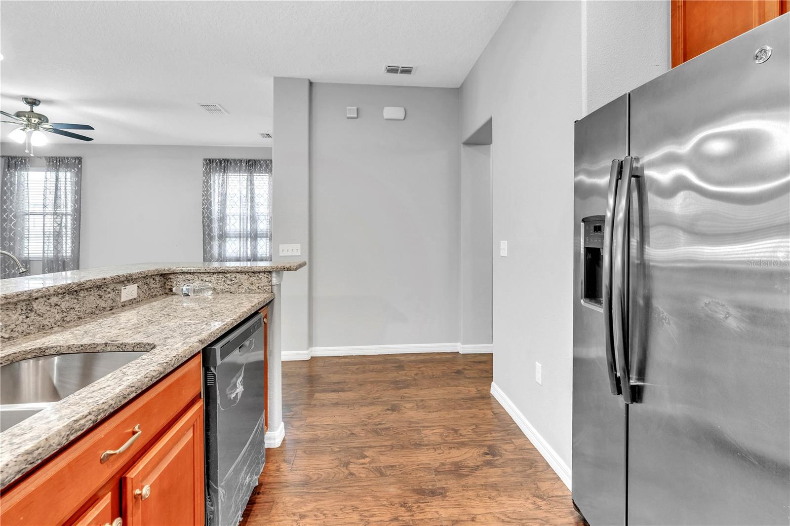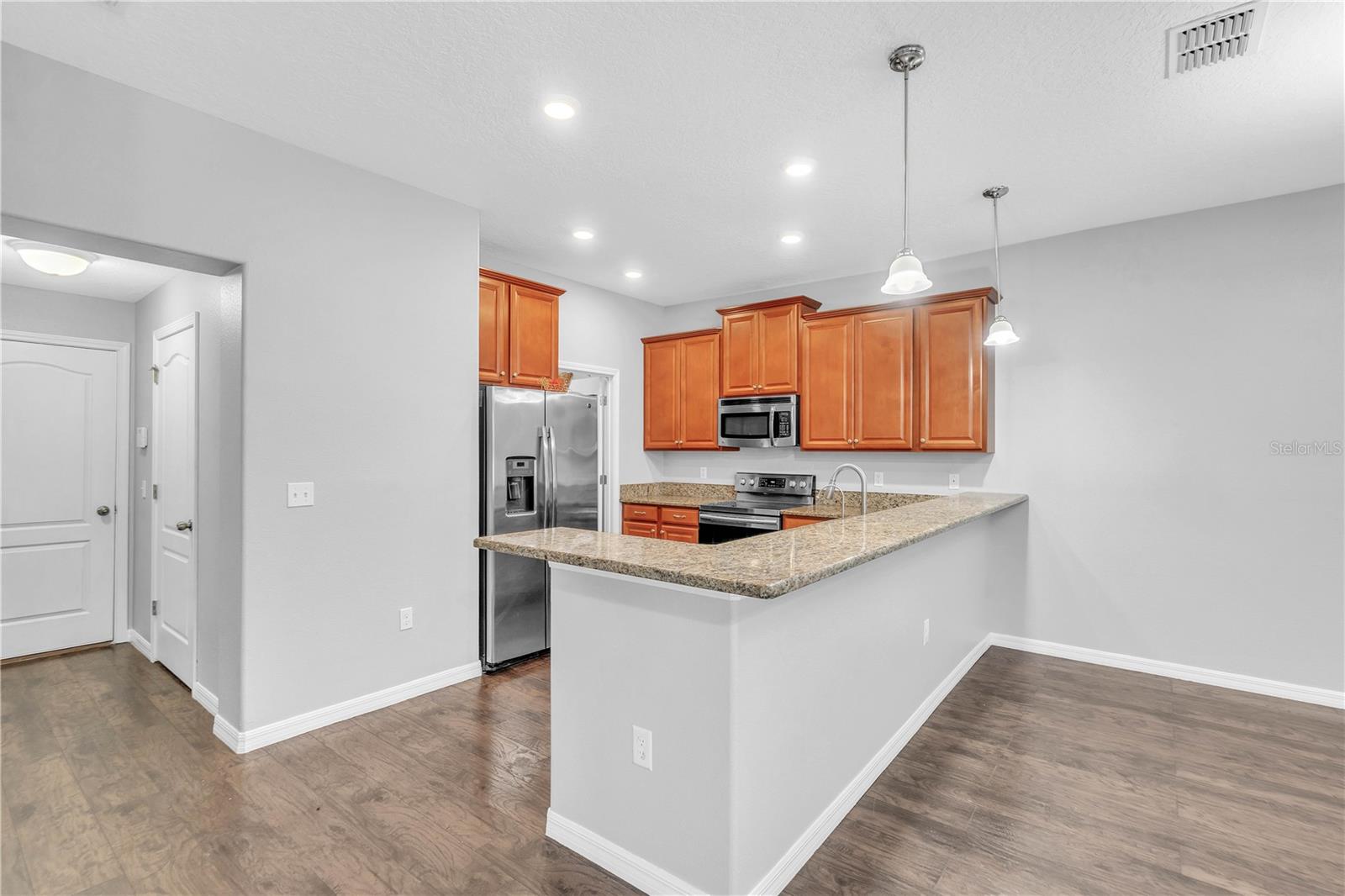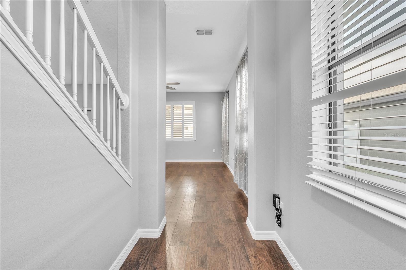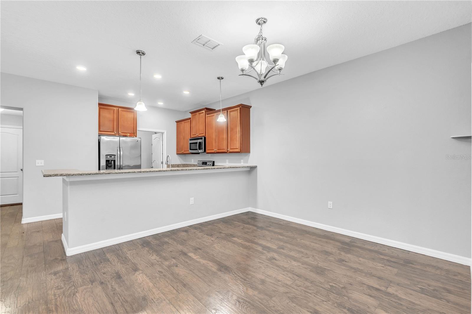 Priced to sell and ready for you! This delightful home is perfectly situated close to everything: A-rated schools, airports, parks, and shopping! The sellers are relocating, so here’s your chance to grab this gem. Step into the open and inviting living room that flows seamlessly into a spacious kitchen, complete with a breakfast bar, sleek granite countertops, and stainless steel appliances. Enjoy the practicality of a main-level laundry room and a generous pantry for all your storage needs. Host memorable gatherings in the elegant dining room, where French doors lead you to an entertainer's paradise—a backyard with a 25x26 screened lanai, a fenced yard, and a charming above-ground pool to cool off on those warm summer days. Upstairs, you’ll find three roomy bedrooms. The freshly painted exterior adds to the home's charm, complemented by luxury laminate floors throughout the first level and a new A/C unit installed in 2019. Plus, the entire home benefits from a whole-house water filtration system! This is the home you’ve been searching for—don’t let it slip away!