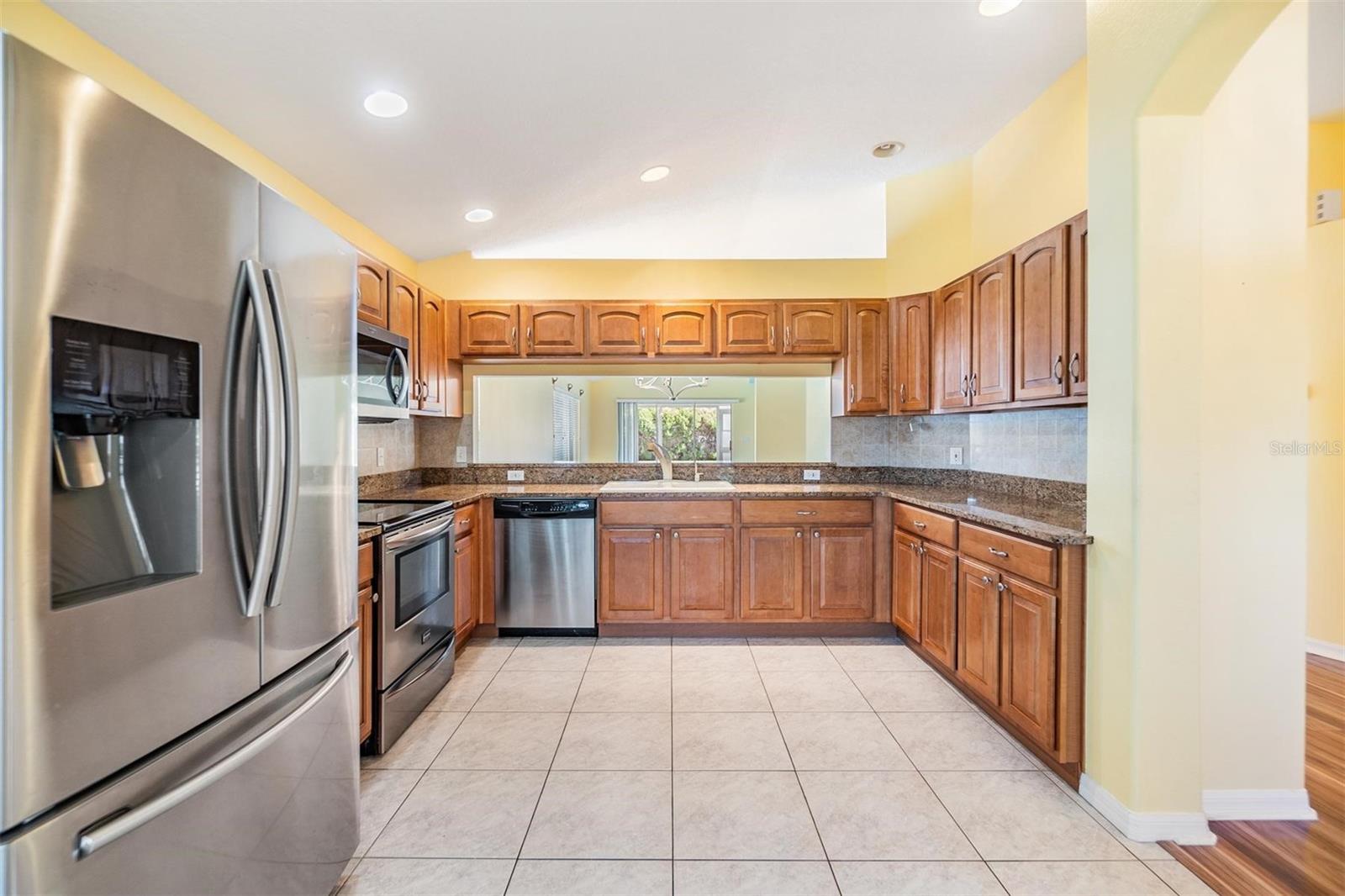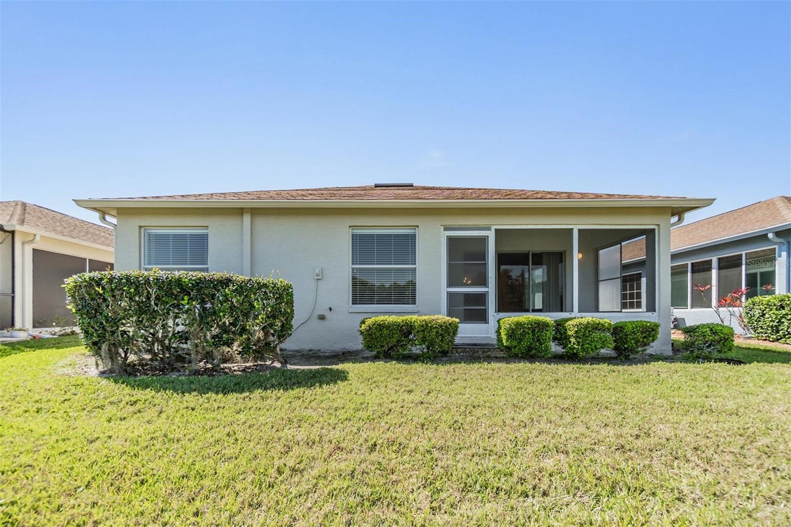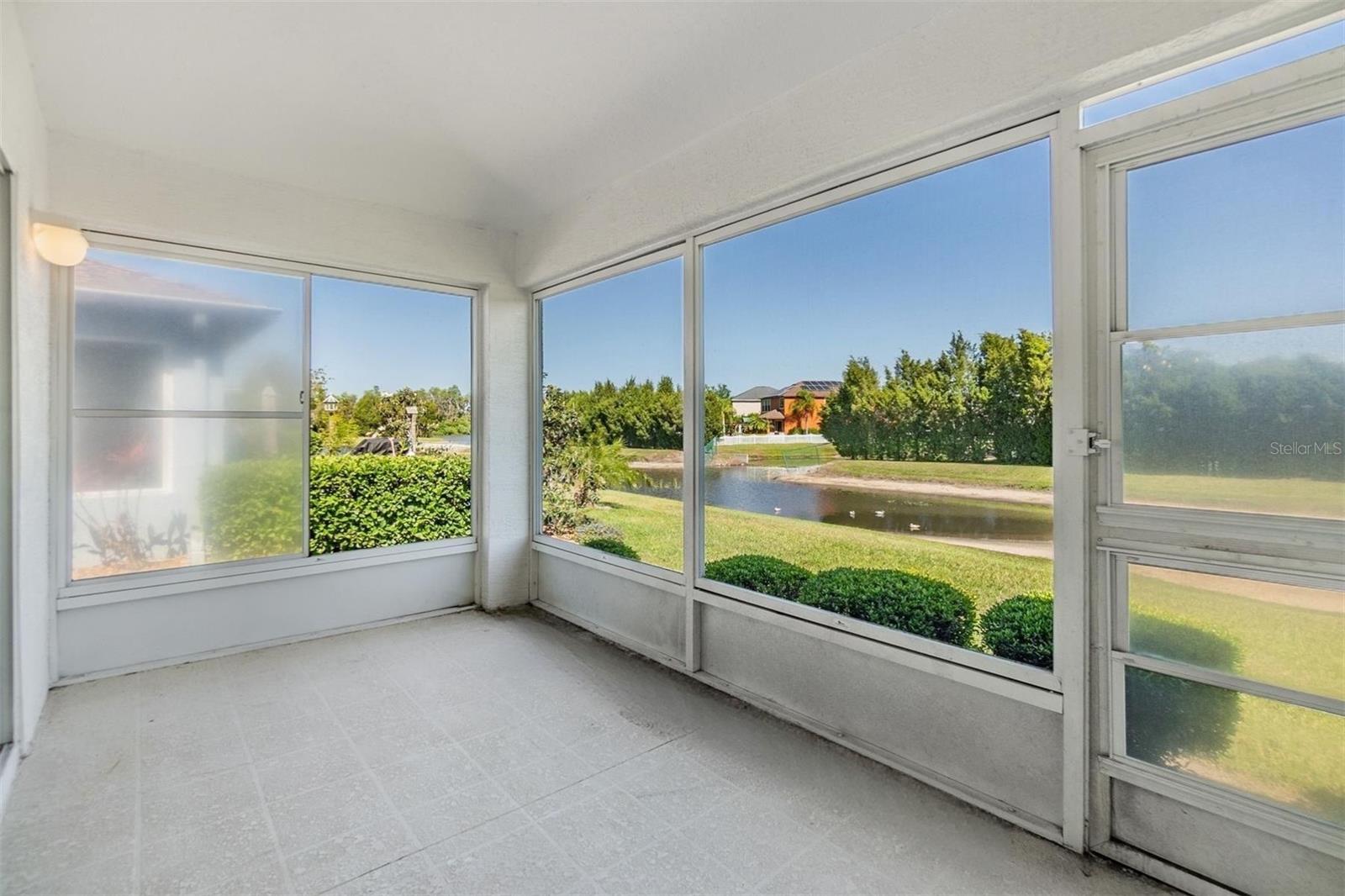 Beautiful water views from one of the largest plans, boasting 1952 square feet of living space also include views from the serene screened-in lanai as well as the rear-facing rooms and expansive living room. This thoughtful floorplan offers an open and airy feeling, featuring arched door and window accents and high ceilings. All stainless appliances in the kitchen with granite countertops and more than ample cabinet space for storage options. The sunny breakfast nook is a great place to start your day. The primary suite has a water view, and more than ample space for a sitting area; oversized, step-in shower is a plus, along with the walk-in closet with some built-in shelving. The secondary bedrooms both have vaulted ceilings and a neutral color palette. The screened in lanai is a true delight with water and a tree-line views. 5 WINDOWS REPLACED IN 2020; NEW ROOF 2018; NEW WATER HEATER 2025. 55 & FUN - LIVE THE HERITAGE SPRINGS LIFESTYLE - Resort style living at its absolute finest! Clubhouse with restaurant and bar, fitness, tennis, golf, cards, billiards, dancing and more! SUPERB TRINITY LOCATION, CLOSE TO BEACHES, DINING, SHOPPING, MEDICAL AND AIRPORT! Caution - Adults at Play!
