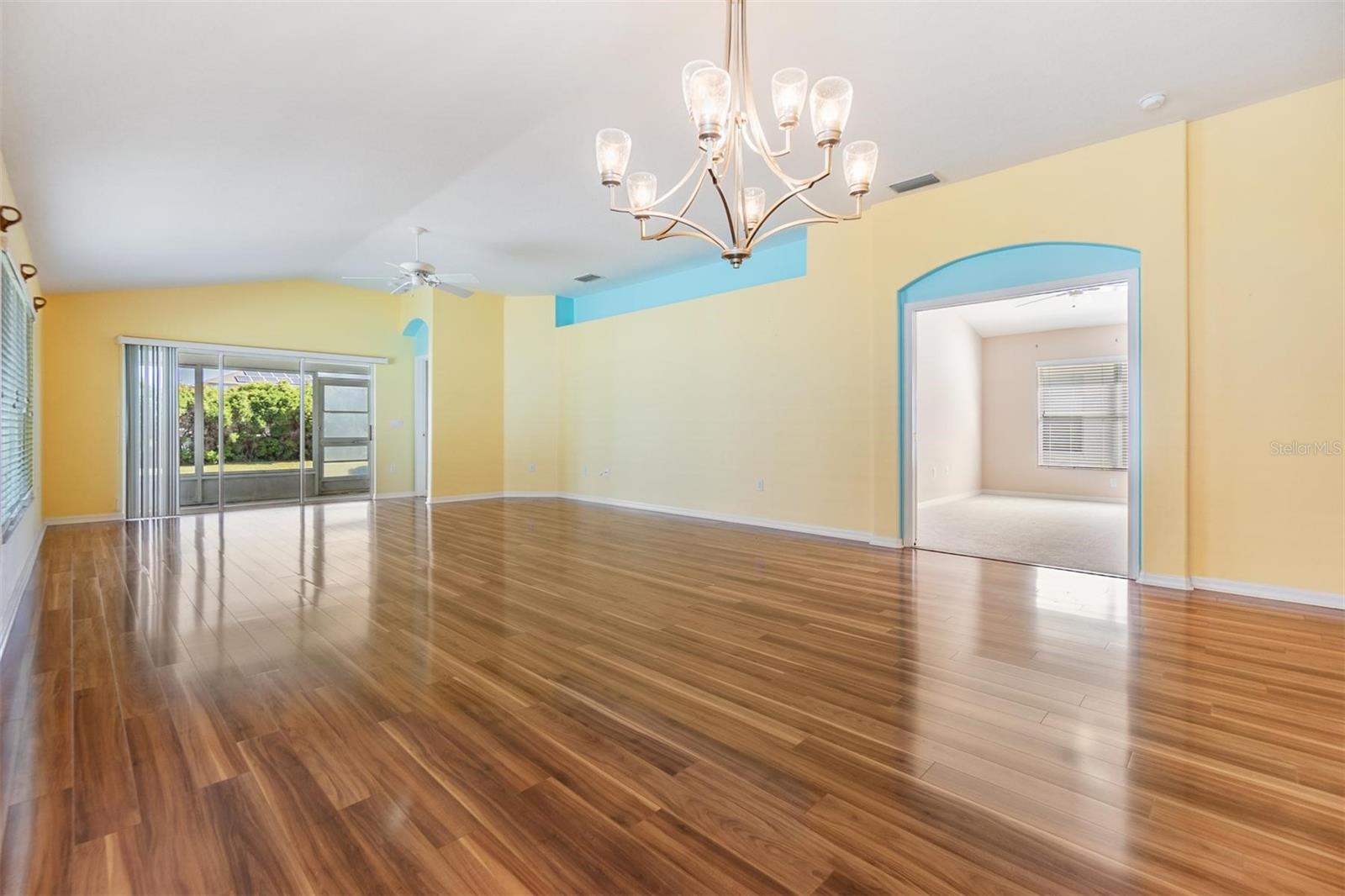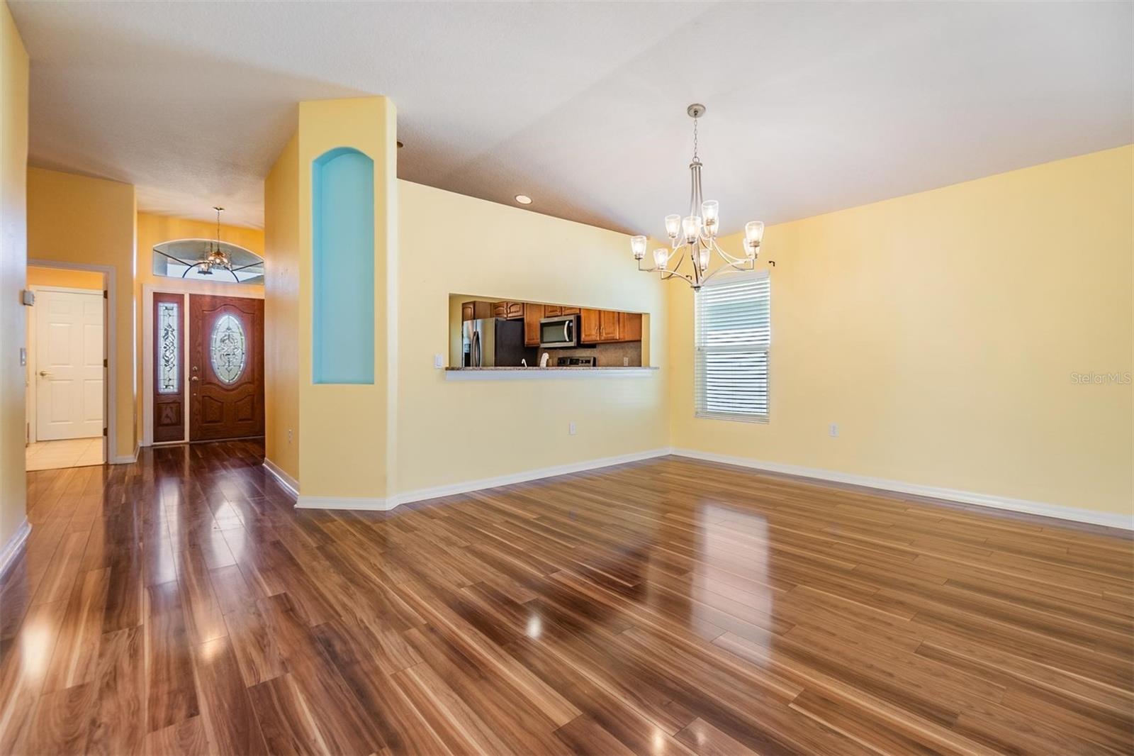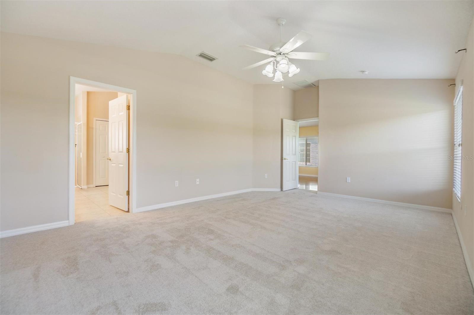 Beautiful water views from one of the largest plans, boasting 1952 square feet of living space also include views from the serene screened-in lanai as well as the rear-facing rooms and expansive living room. This thoughtful floorplan offers an open and airy feeling, featuring arched door and window accents and high ceilings. All stainless appliances in the kitchen with granite countertops and more than ample cabinet space for storage options. The sunny breakfast nook is a great place to start your day. The primary suite has a water view, and more than ample space for a sitting area; oversized, step-in shower is a plus, along with the walk-in closet with some built-in shelving. The secondary bedrooms both have vaulted ceilings and a neutral color palette. The screened in lanai is a true delight with water and a tree-line views. 5 WINDOWS REPLACED IN 2020; NEW ROOF 2018; NEW WATER HEATER 2025. 55 & FUN - LIVE THE HERITAGE SPRINGS LIFESTYLE - Resort style living at its absolute finest! Clubhouse with restaurant and bar, fitness, tennis, golf, cards, billiards, dancing and more! SUPERB TRINITY LOCATION, CLOSE TO BEACHES, DINING, SHOPPING, MEDICAL AND AIRPORT! Caution - Adults at Play!